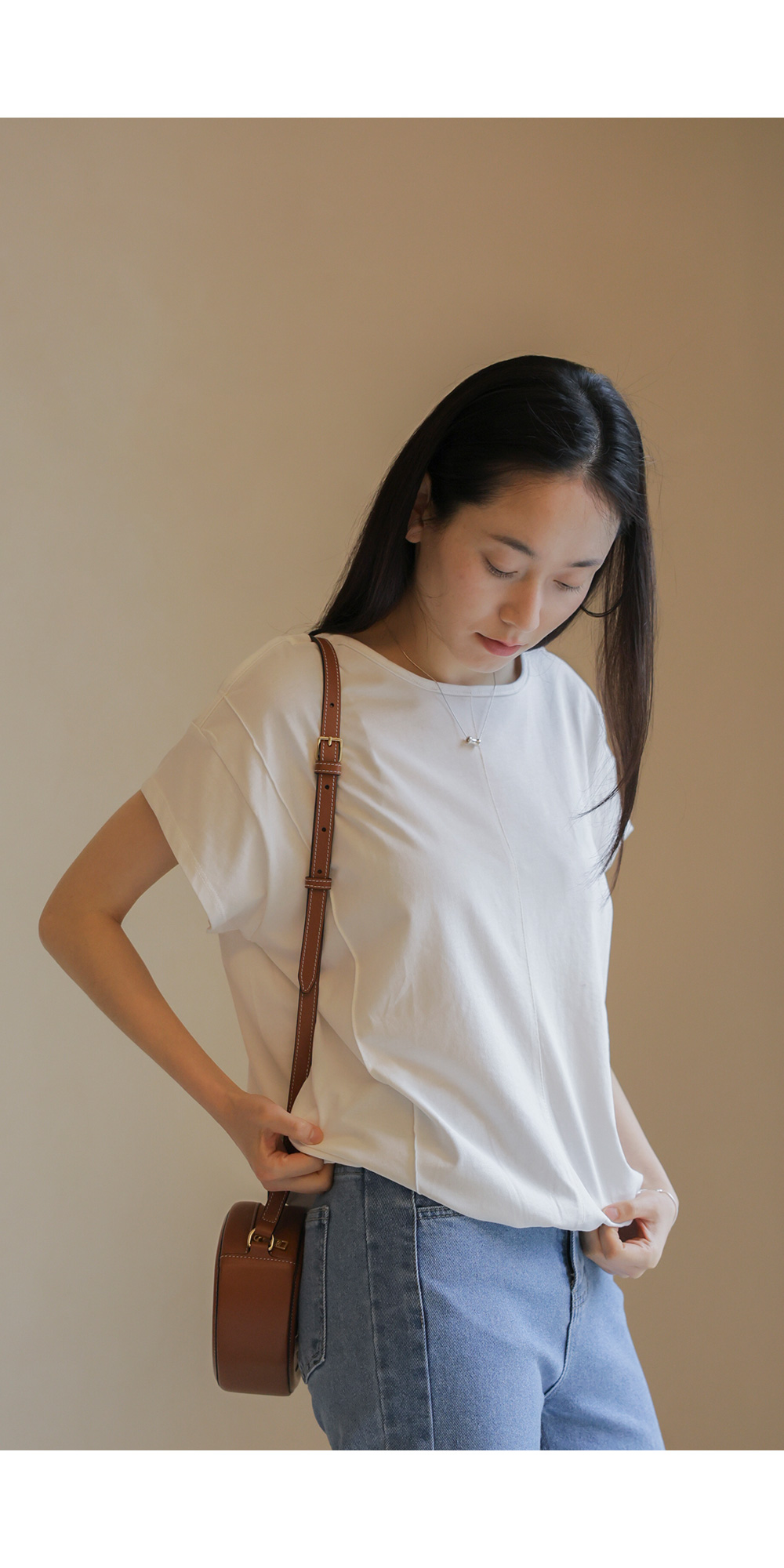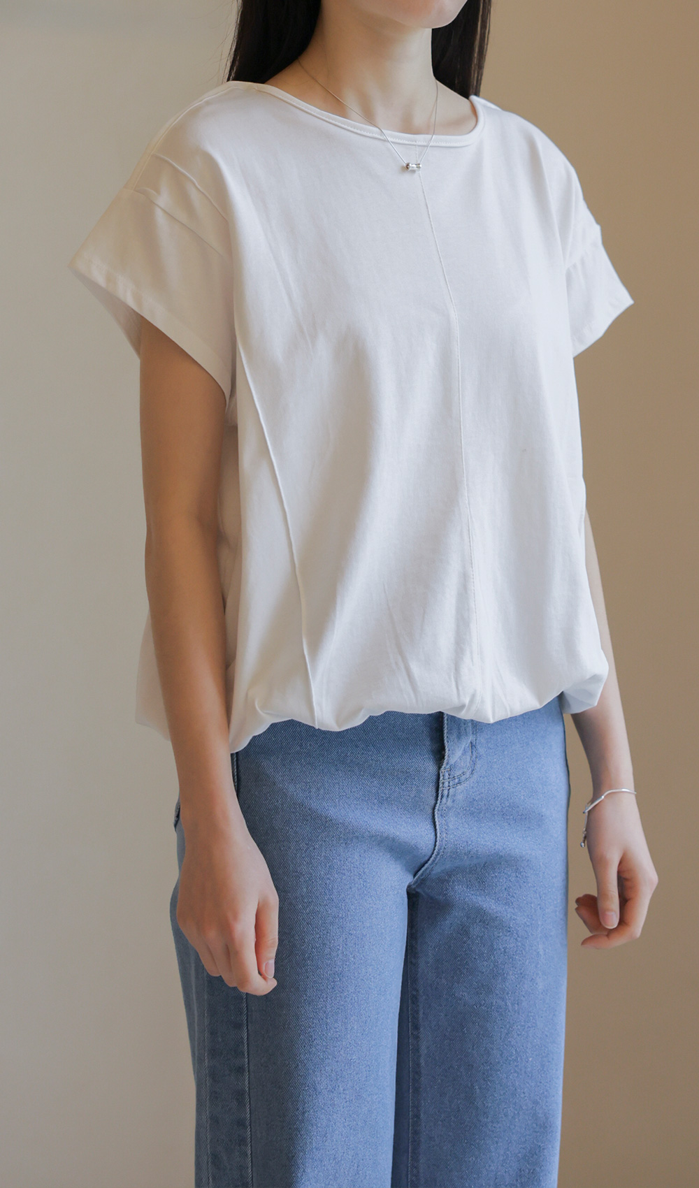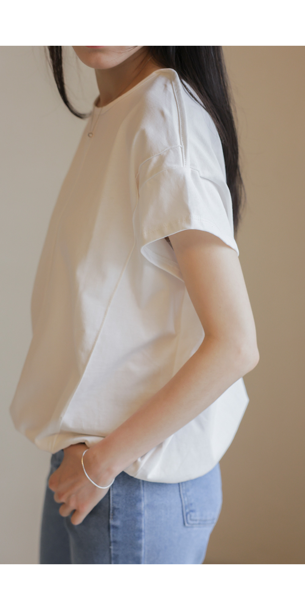 코튼 소재의 편안함과 세련된 디자인을 동시에 갖춘 티셔츠를 소개해 드려요. 가볍고 탄탄한 코튼 100% 원단으로 제작되어 착용감이 우수하며, 블랙과 아이보리 두 가지 기본 컬러로 구성되어 다양한 하의와 매치하기 좋아요.