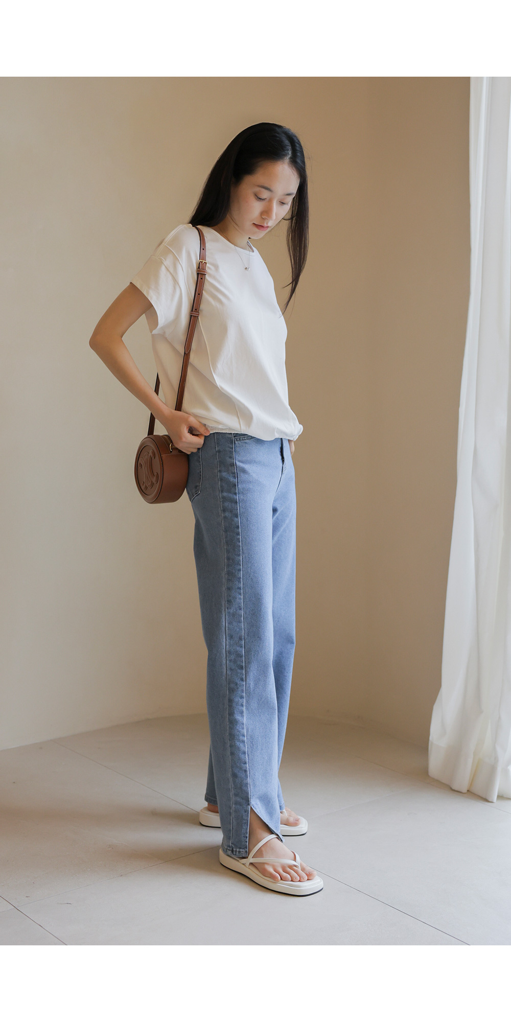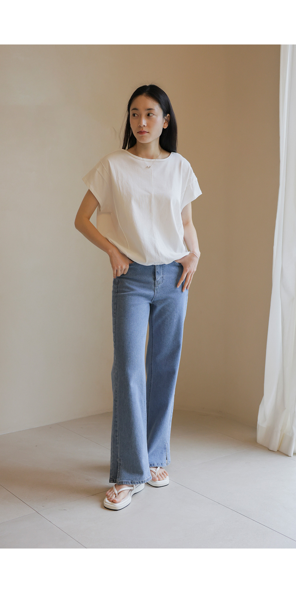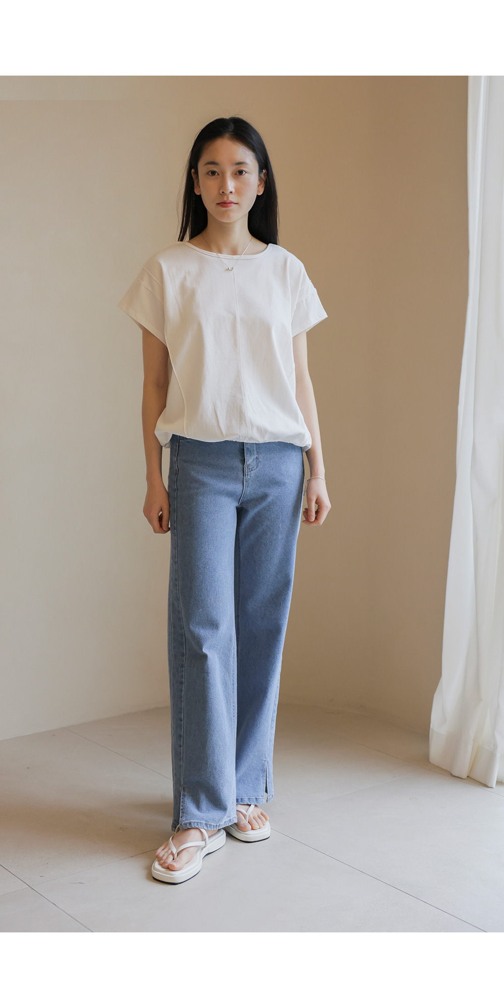 코튼 소재의 편안함과 세련된 디자인을 동시에 갖춘 티셔츠를 소개해 드려요. 가볍고 탄탄한 코튼 100% 원단으로 제작되어 착용감이 우수하며, 블랙과 아이보리 두 가지 기본 컬러로 구성되어 다양한 하의와 매치하기 좋아요.