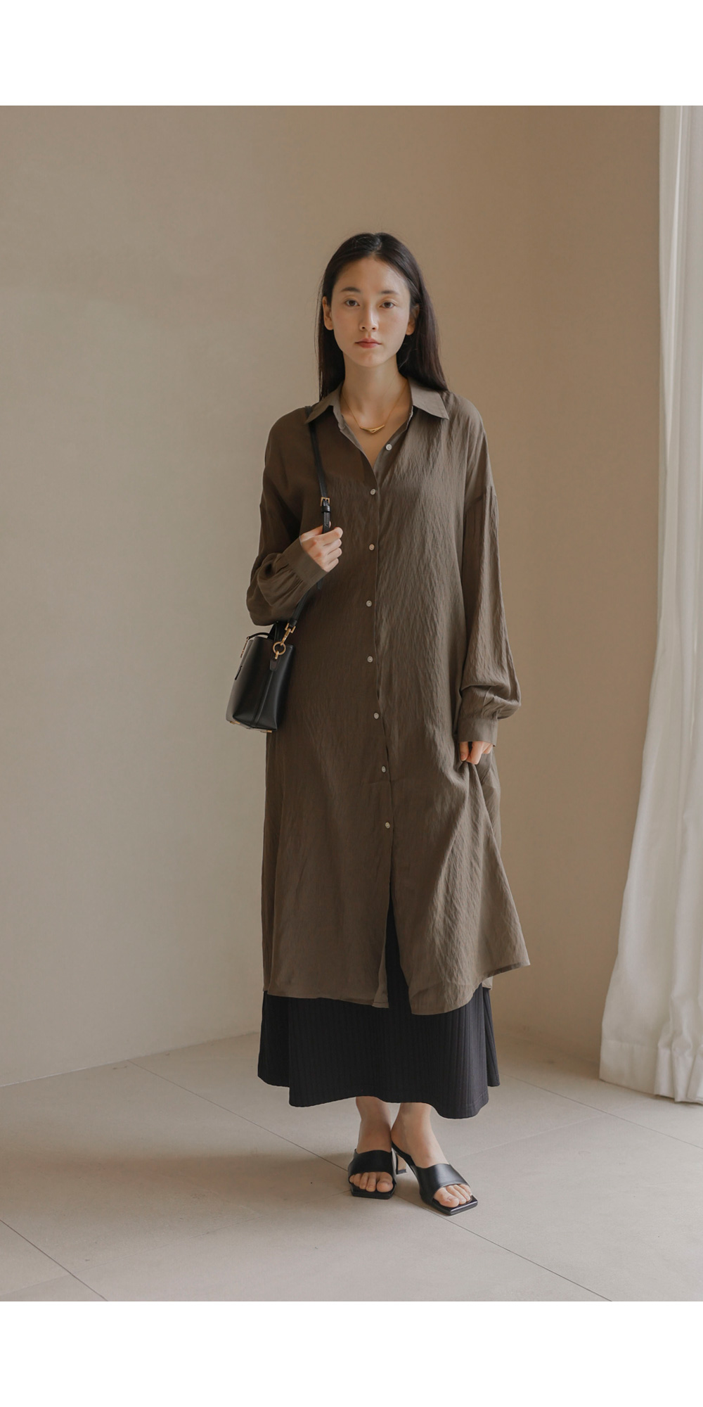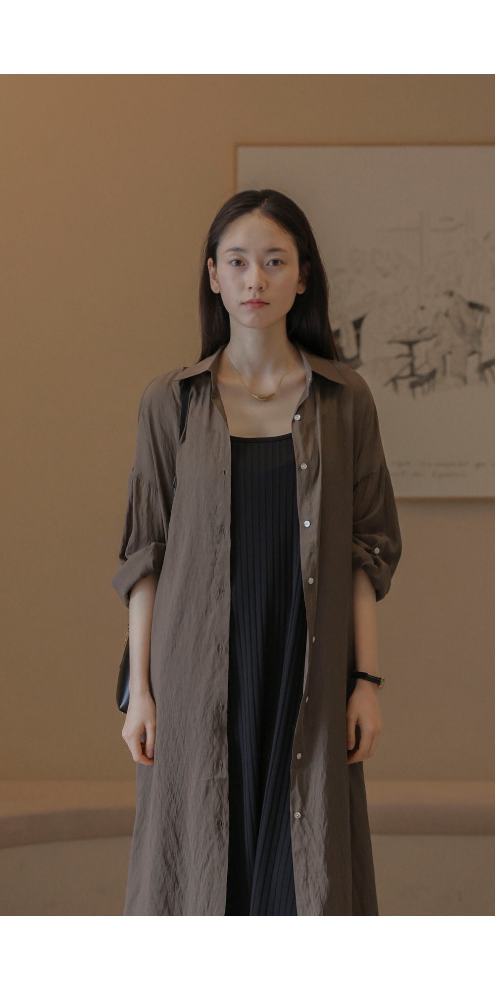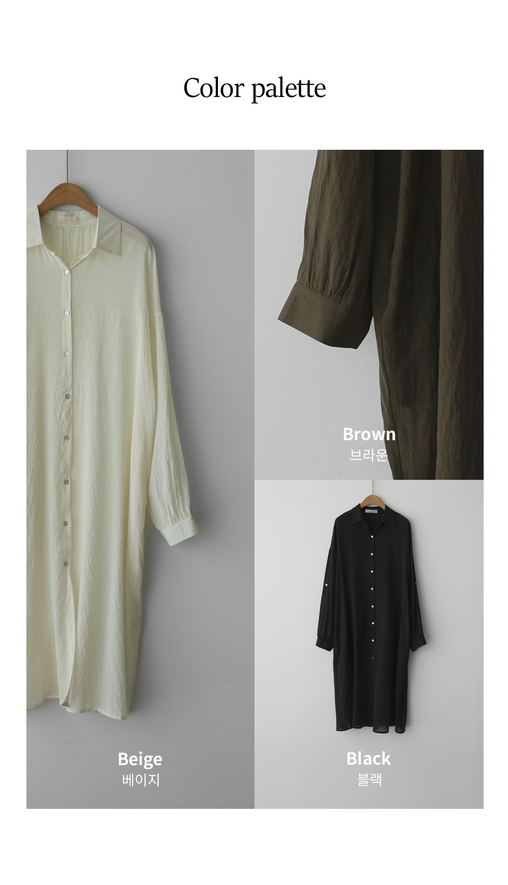 단독으로도, 가벼운 아우터로도 활용도가 무궁무진한 셔츠 아이템이에요. 베이지, 브라운, 블랙 세 가지 컬러로 구성되어 분위기에 맞춰 선택하기 좋구요.