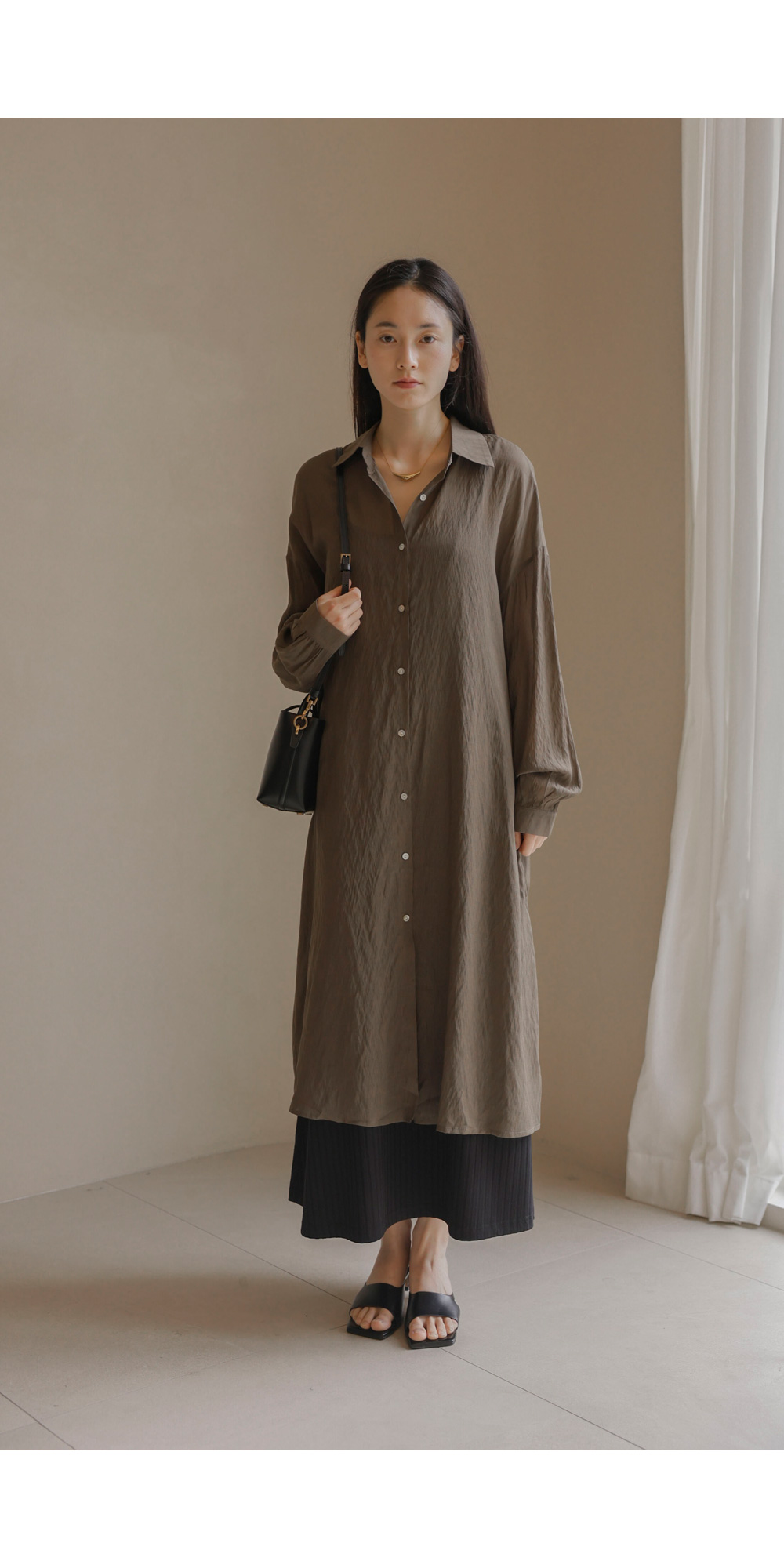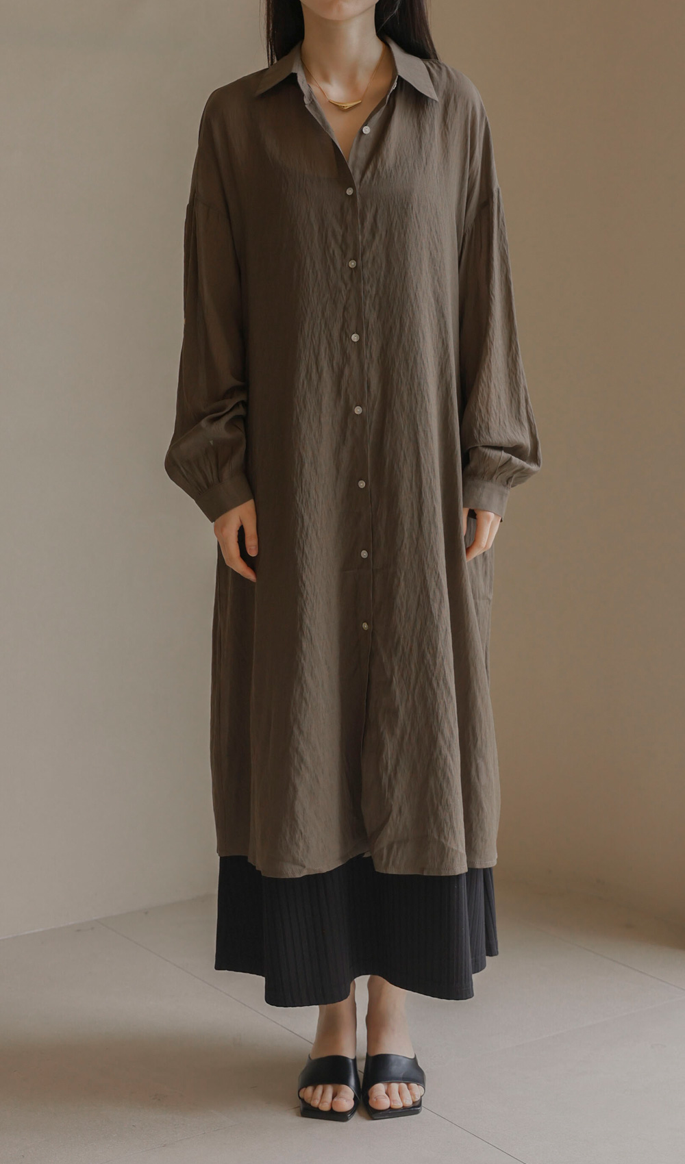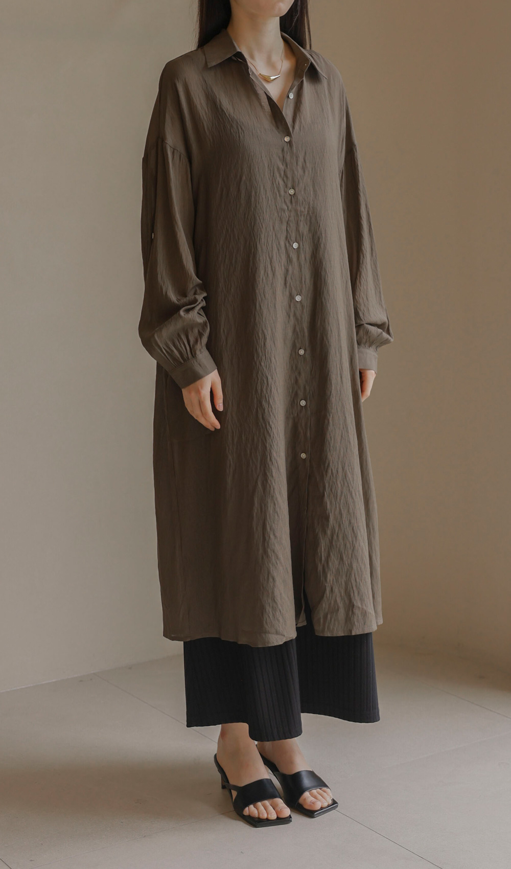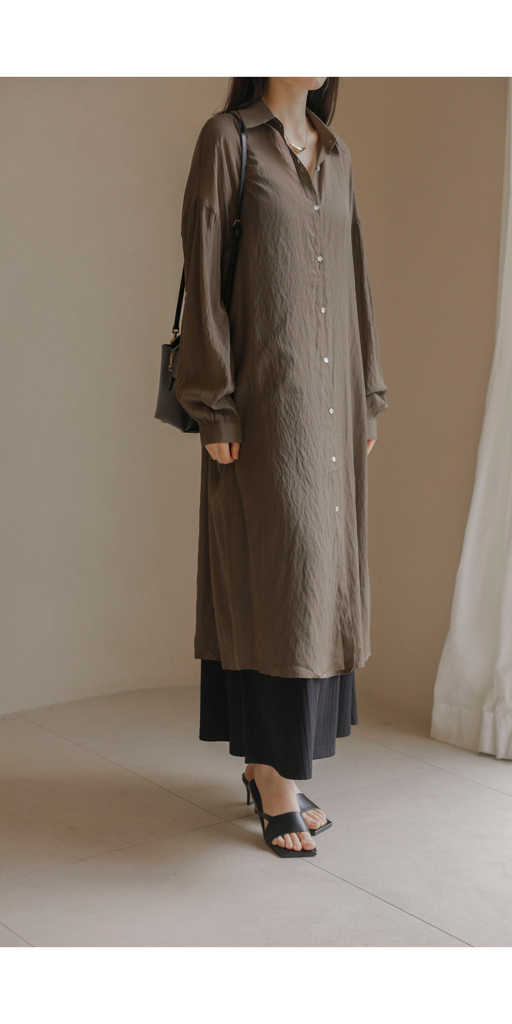 단독으로도, 가벼운 아우터로도 활용도가 무궁무진한 셔츠 아이템이에요. 베이지, 브라운, 블랙 세 가지 컬러로 구성되어 분위기에 맞춰 선택하기 좋구요.