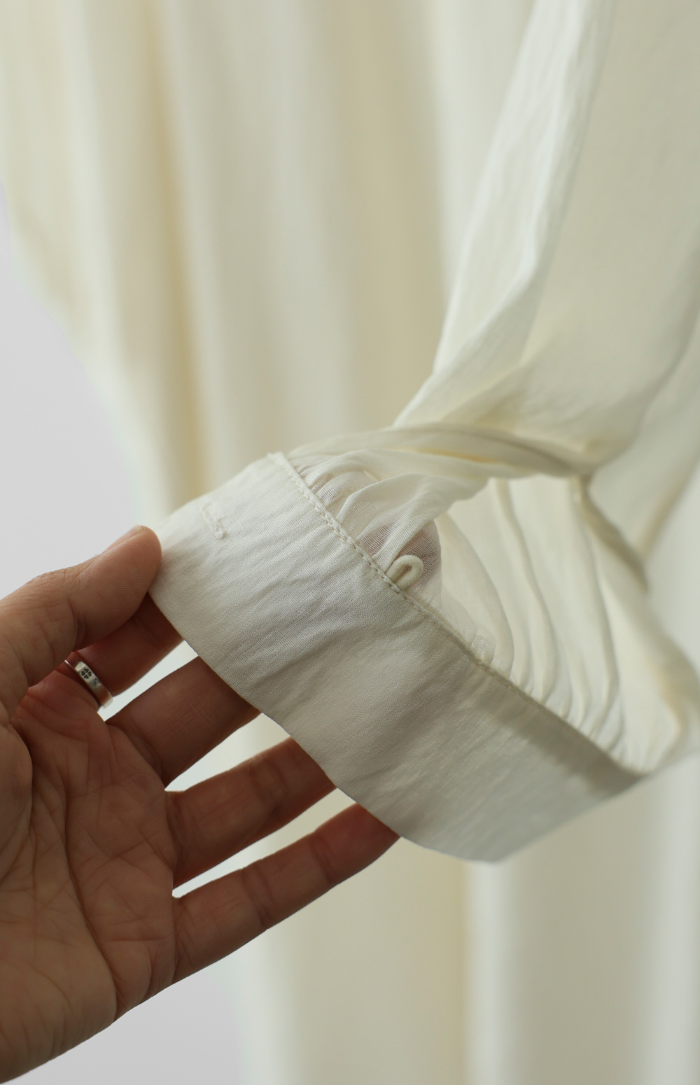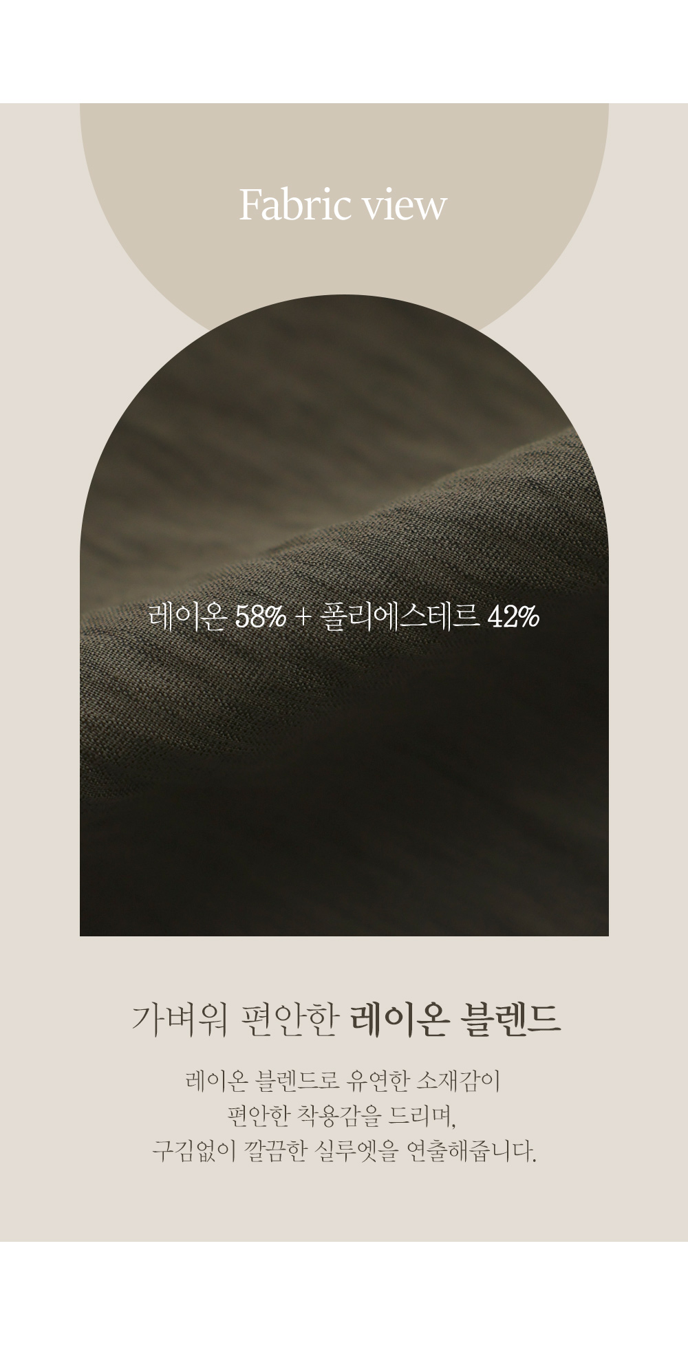 레이온의 매끄러운 촉감과 폴리의 탄탄함이 조화롭게 어우러진 원단이에요. 피부를 타고 흐르는 듯한 드레이프성이 뛰어나 실루엣이 부해 보이지 않고 슬림하게 떨어지구요. 원단 표면에서 느껴지는 은은한 광택감이 옷의 품격을 높여주며, 얇고 가벼운 무게감 덕분에 장시간 착용해도 피로감이 전혀 느껴지지 않는답니다. ![]() ![]() MD가 답하는 안심 Q&A