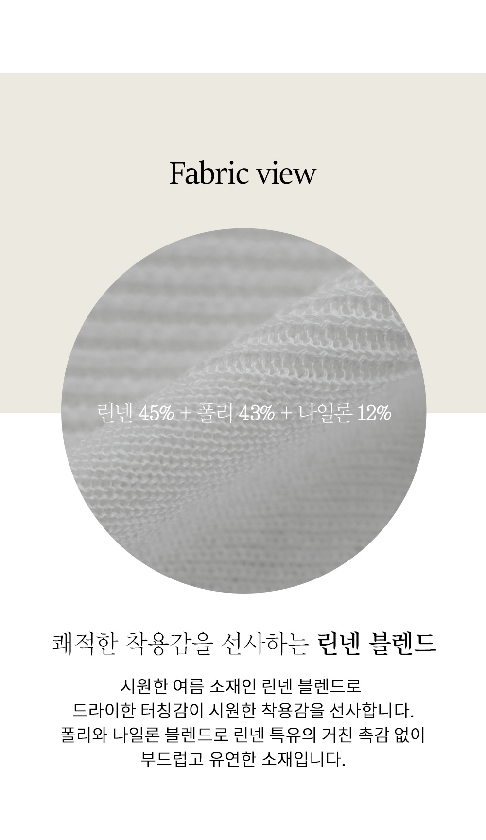 린넨 특유의 쾌적한 통기성에 폴리와 나일론의 유연함이 더해진 고급 혼방 원단이에요. 땀이 나도 살결에 끈적하게 달라붙지 않고 바람이 잘 통하는 구조라 한여름까지도 아주 시원하게 입으실 수 있구요. 얇고 가벼운 짜임이지만 형태 유지력이 좋아 여러 번 착용해도 축 처지지 않고 여리여리한 실루엣을 예쁘게 유지해 줍니다. 매끄러운 텍스처 덕분에 피부에 닿는 촉감이 고슬하면서도 부드러워 기분 좋은 착용감을 선사해요. ![]() MD가 답하는 안심 Q&A