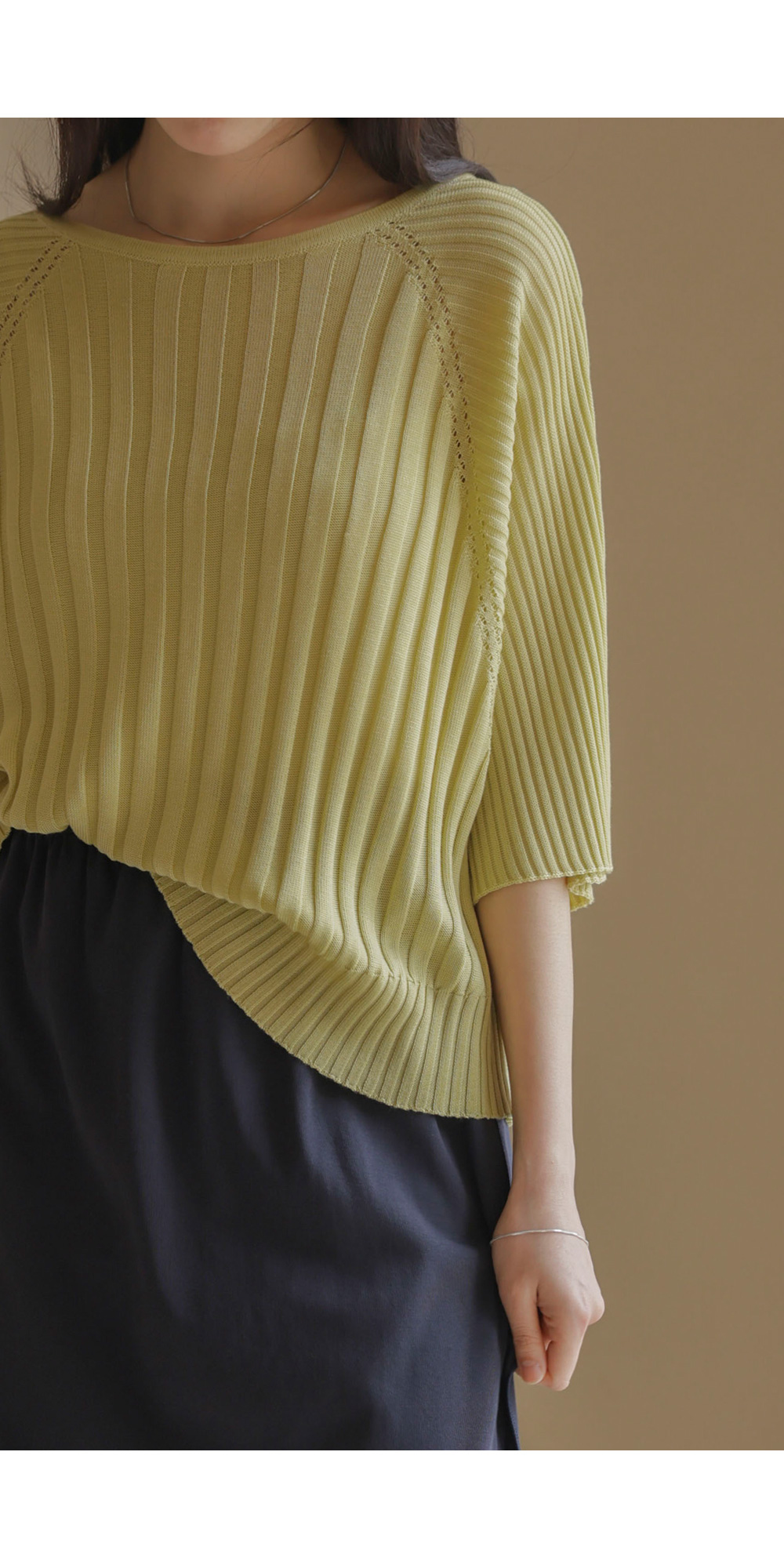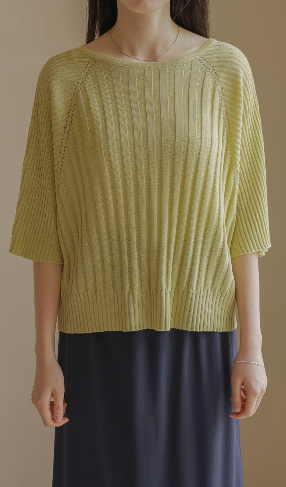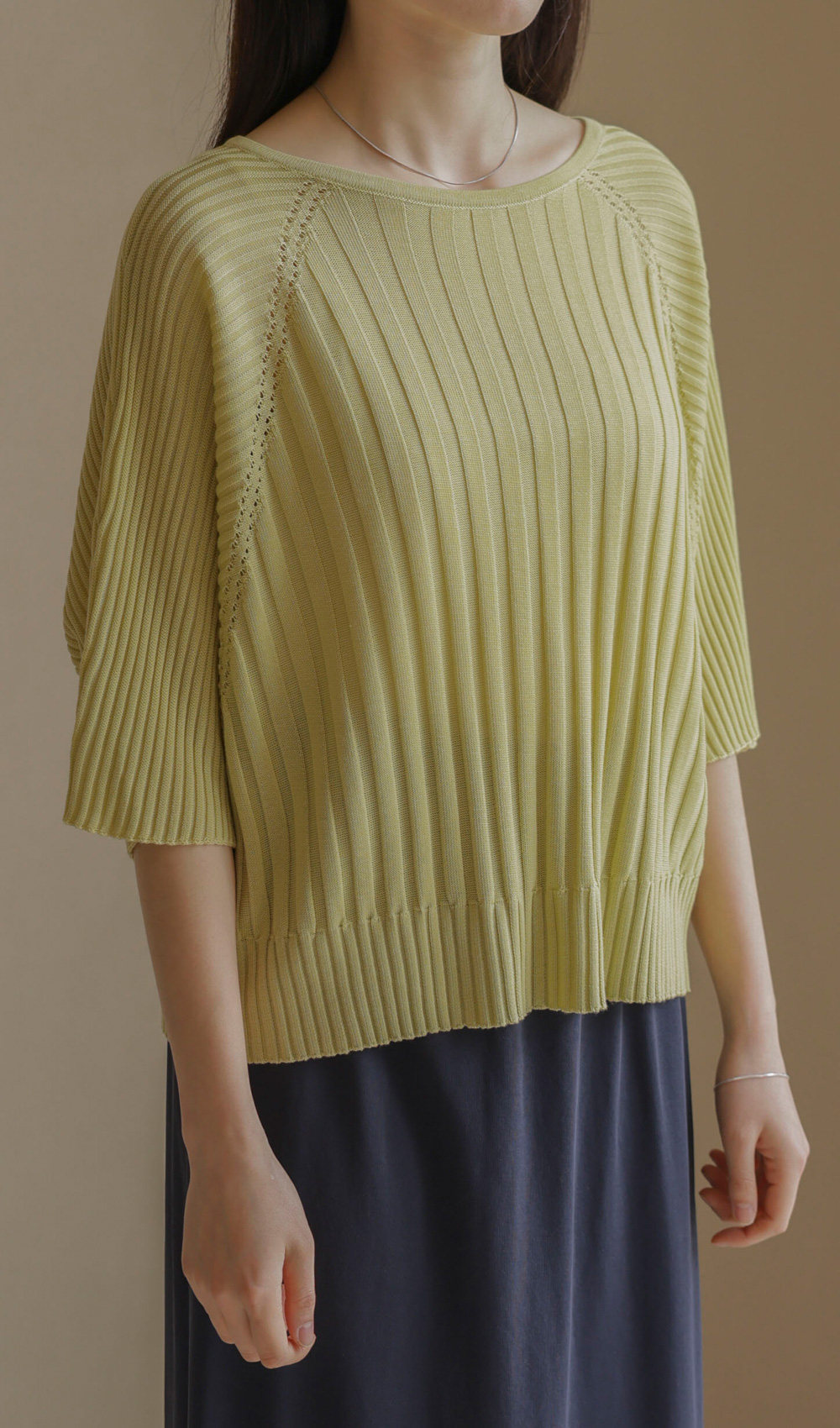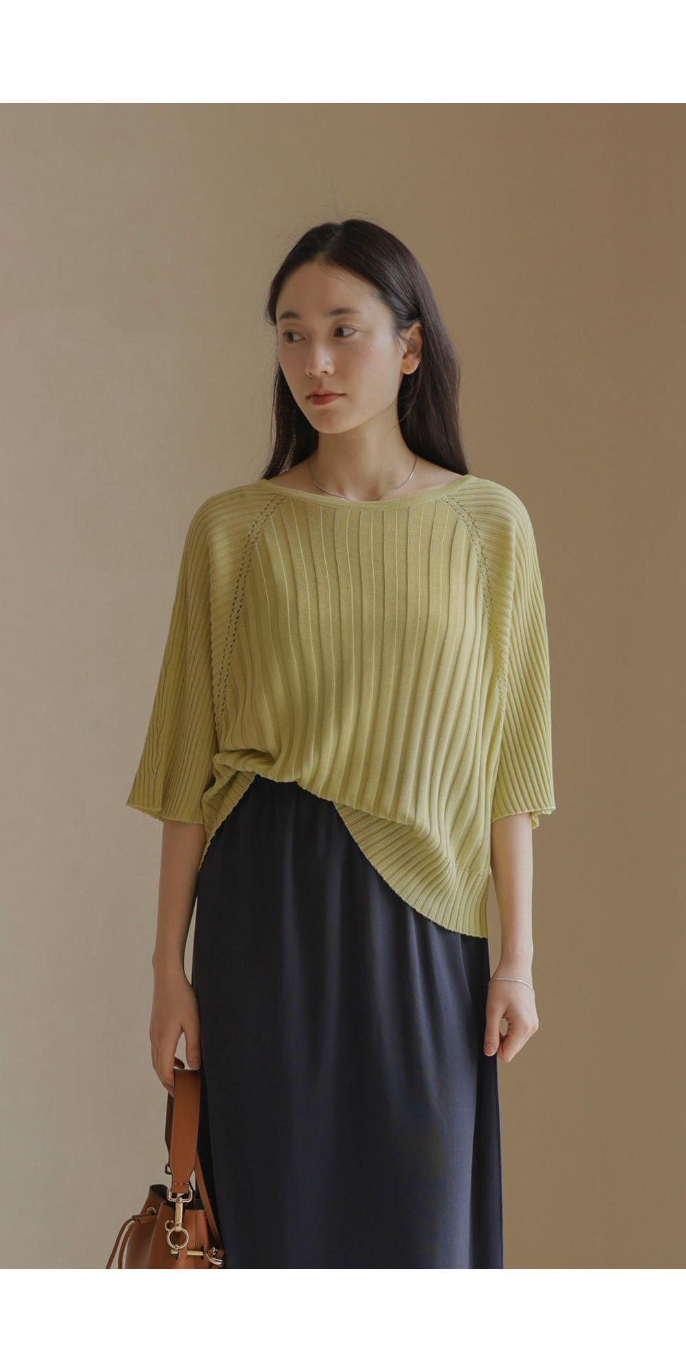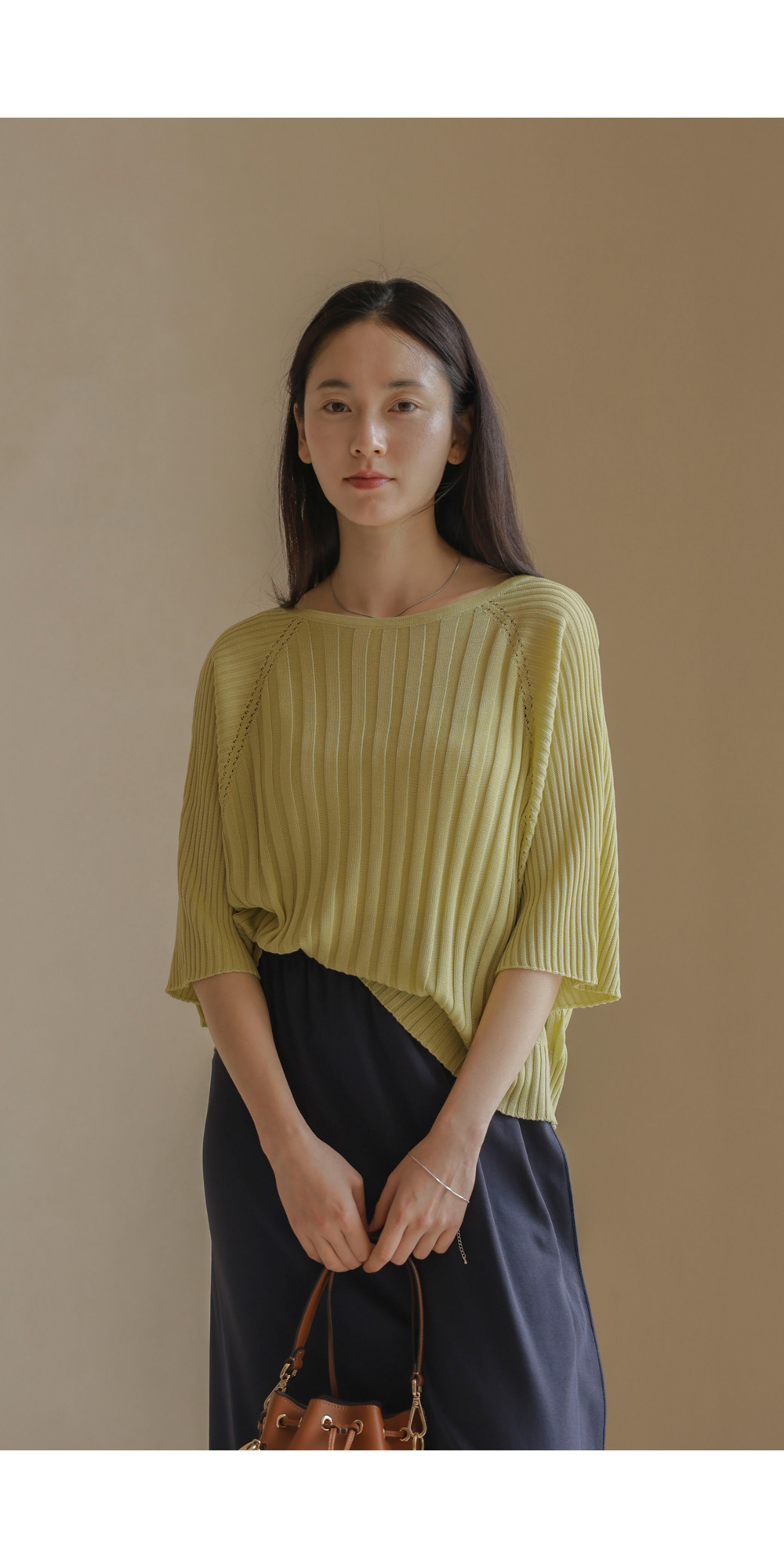 가벼운 외출부터 실내 활동까지 쾌적하게 즐기기 좋은 니트예요. 여유 있는 품과 신축성 좋은 소재 덕분에 몸에 붙지 않고 차르르 떨어지는 실루엣이 정말 예쁘구요.