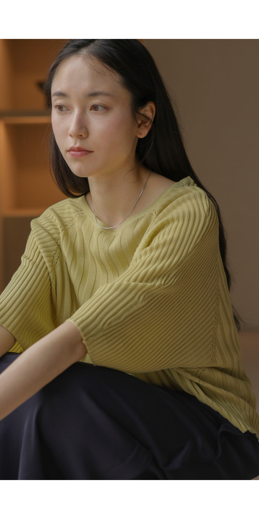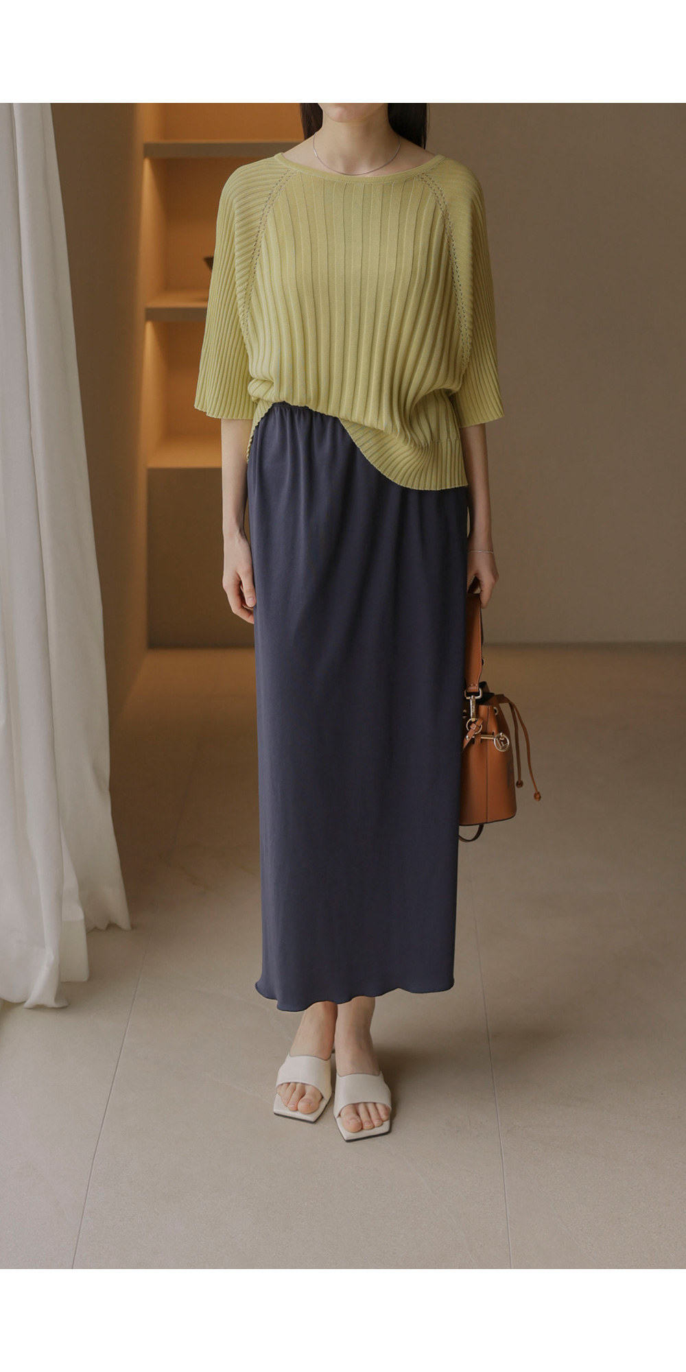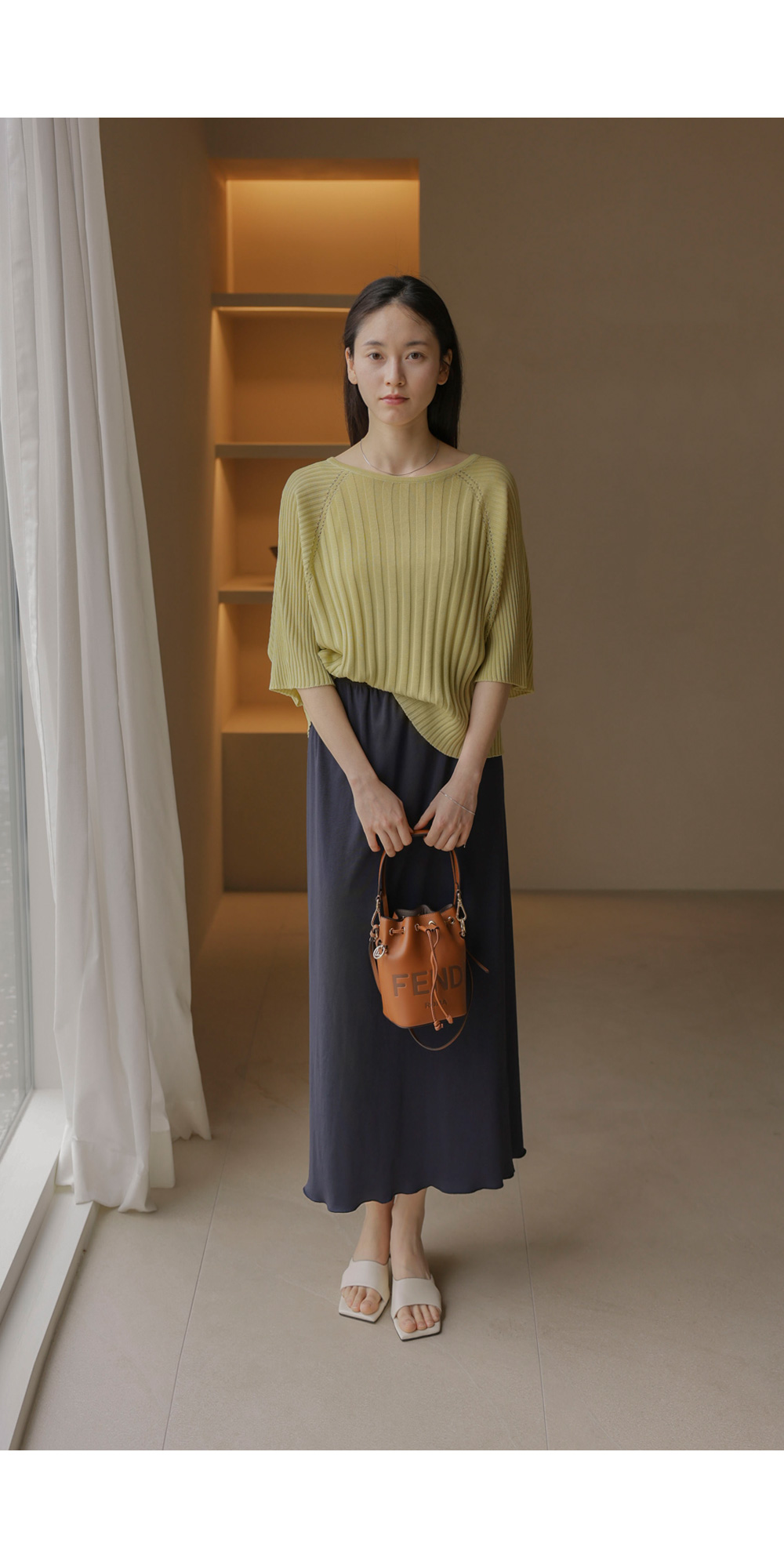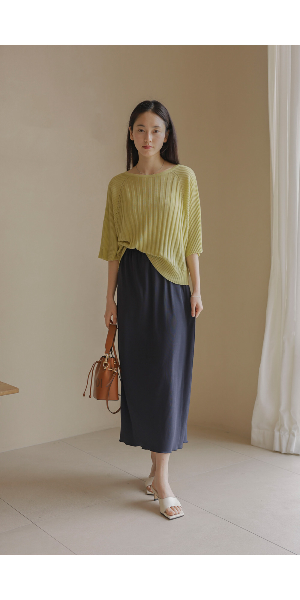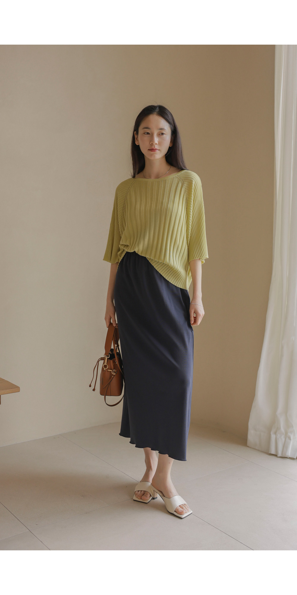 가벼운 외출부터 실내 활동까지 쾌적하게 즐기기 좋은 니트예요. 여유 있는 품과 신축성 좋은 소재 덕분에 몸에 붙지 않고 차르르 떨어지는 실루엣이 정말 예쁘구요.