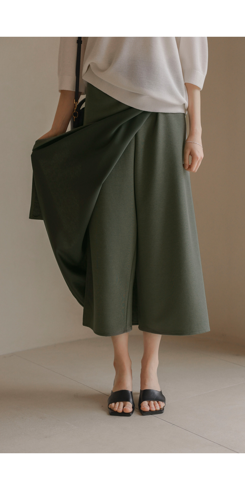 입었을 때 느껴지는 편안함과 겉으로 보이는 세련된 무드, 두 가지 모두 놓칠 수 없는 분들을 위해 준비했어요. 이번에 선보이는 아이템은 언뜻 보기에는 우아하게 흐르는 스커트의 실루엣을 자랑하지만, 바지 형태로 제작되어 반전 있는 활동성을 선사하는 아이템이랍니다.