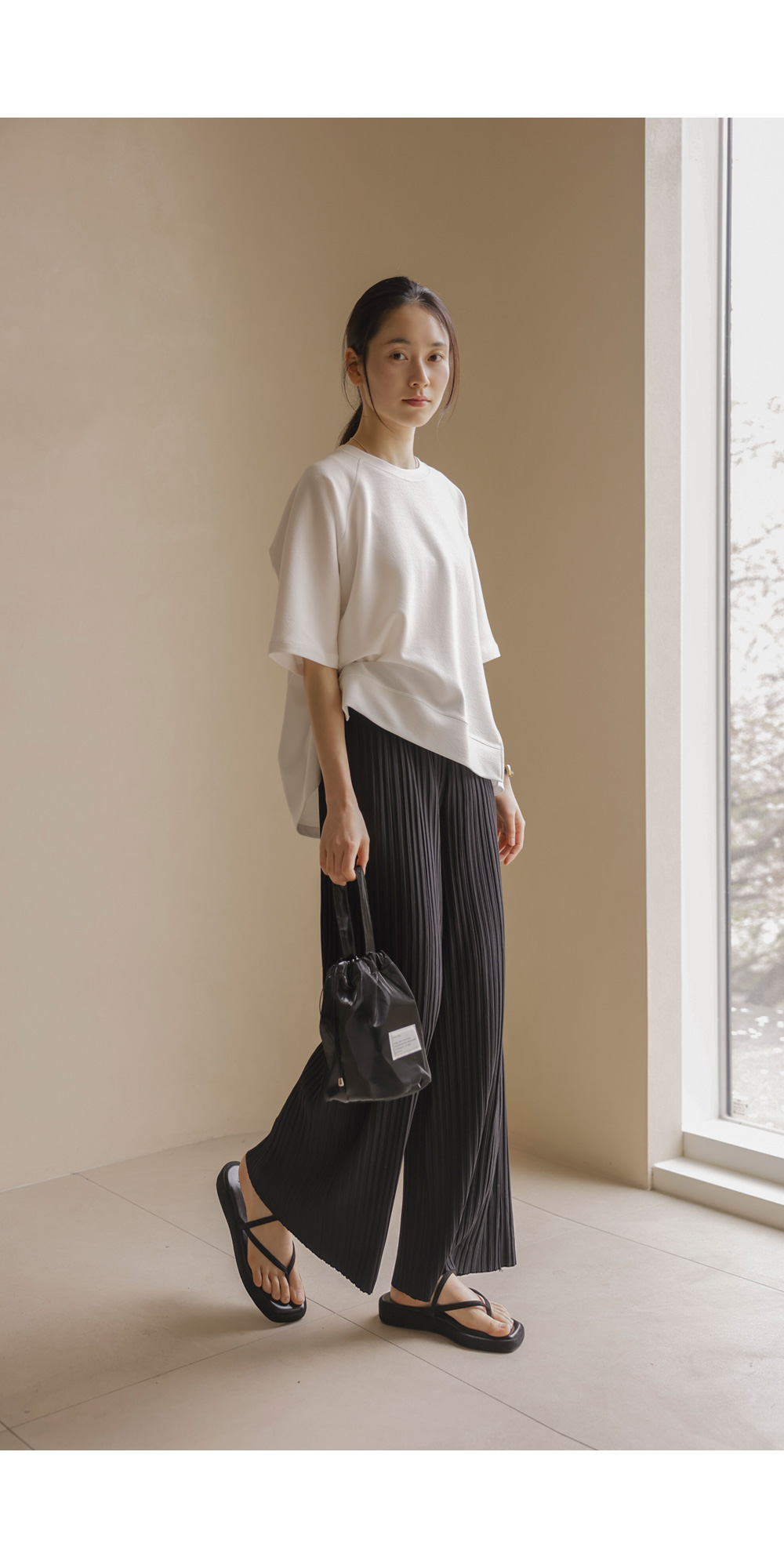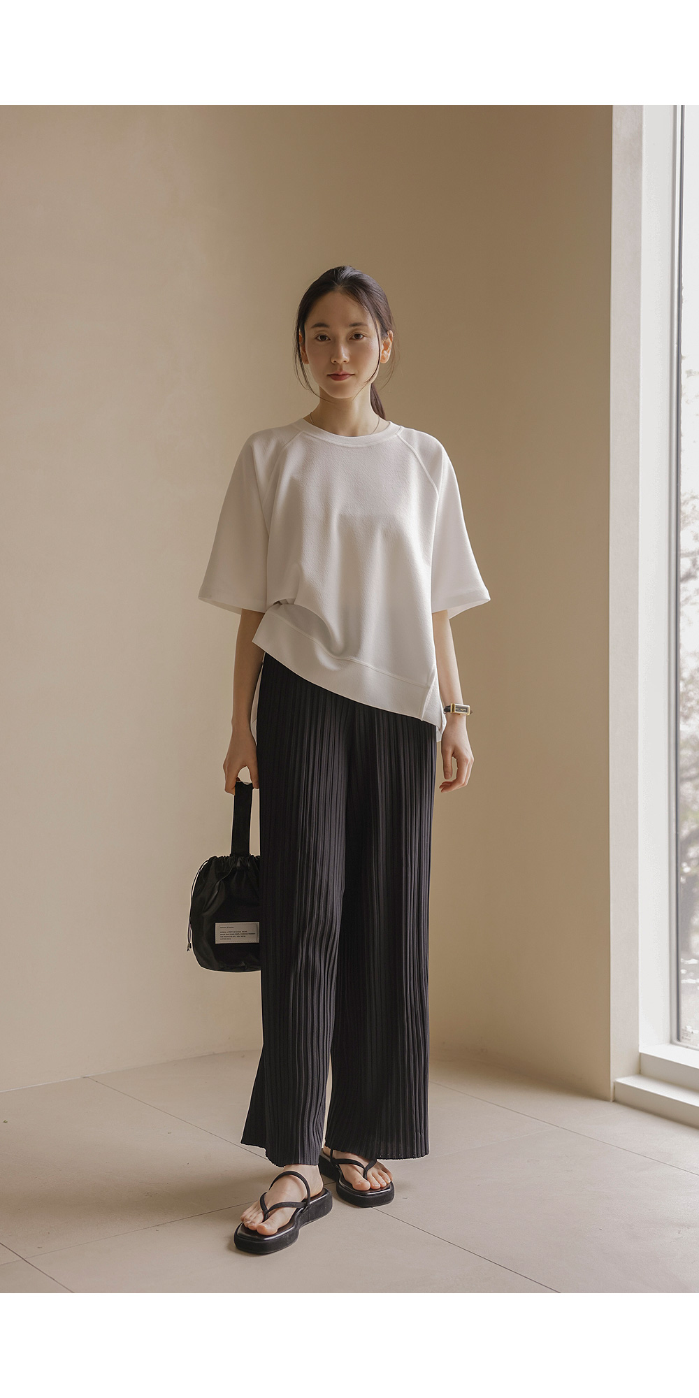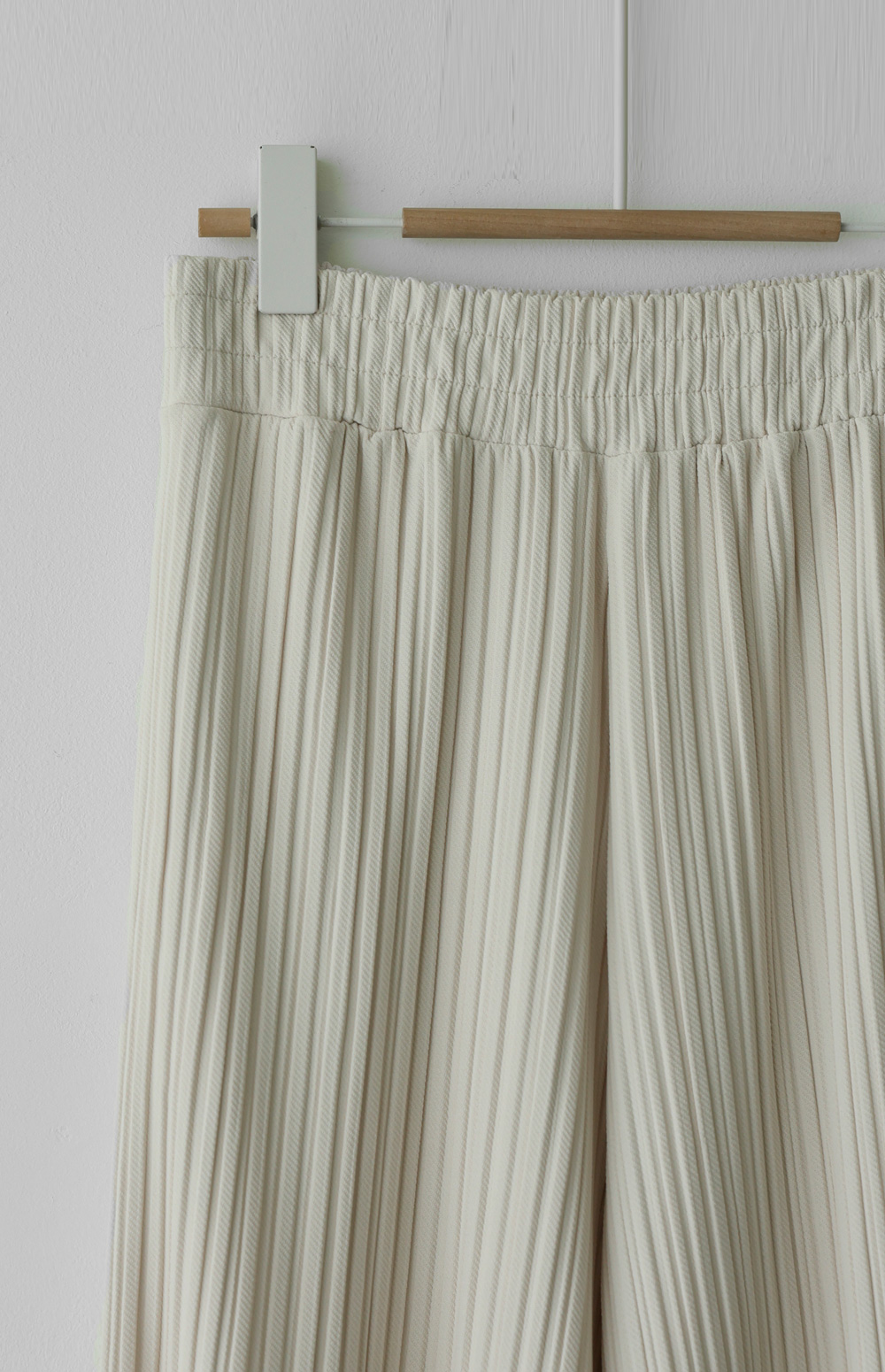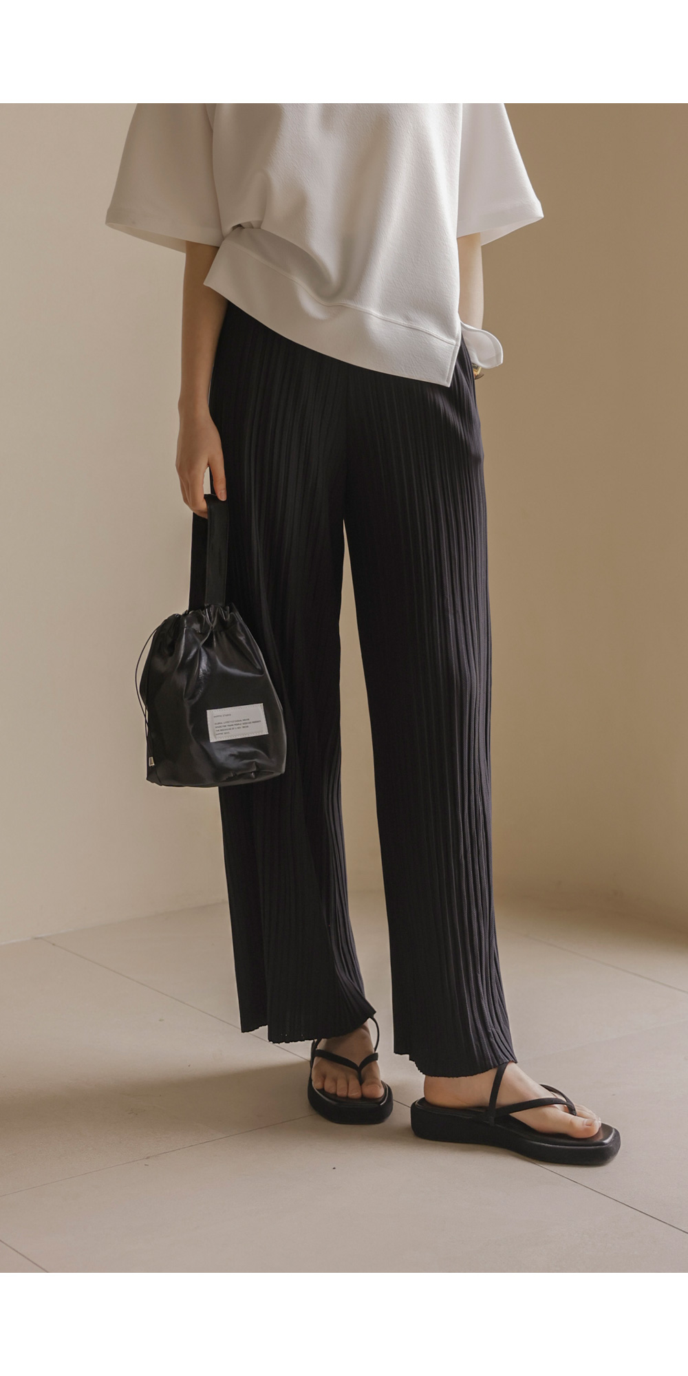 매끈한 촉감에 텐션감이 훌륭한 고퀄리티의 폴리와 스판 혼방 소재를 사용했어요. 두께가 얇고 가벼워 피부에 닿을 때의 청량함이 남다르며, 찰랑찰랑하게 흐르는 소재감이 걸을 때마다 기분 좋은 리듬감을 만들어줍니다. 몸의 굴곡을 도드라지게 하지 않고 매끄럽게 보정해 주는 탄탄한 주름 결이 특징이에요. ![]() 밴딩 가이드 보러가기→ ![]() MD가 답하는 안심 Q&A