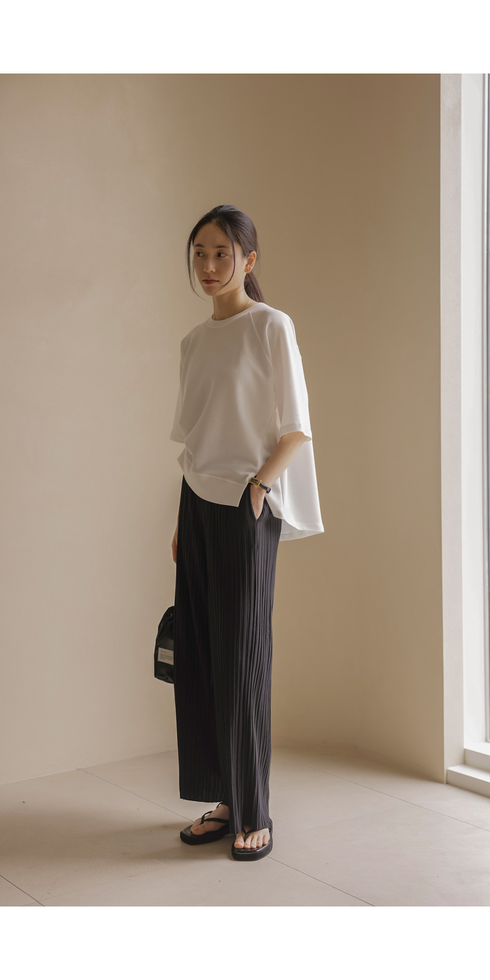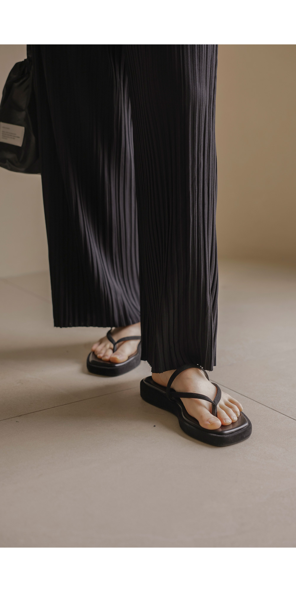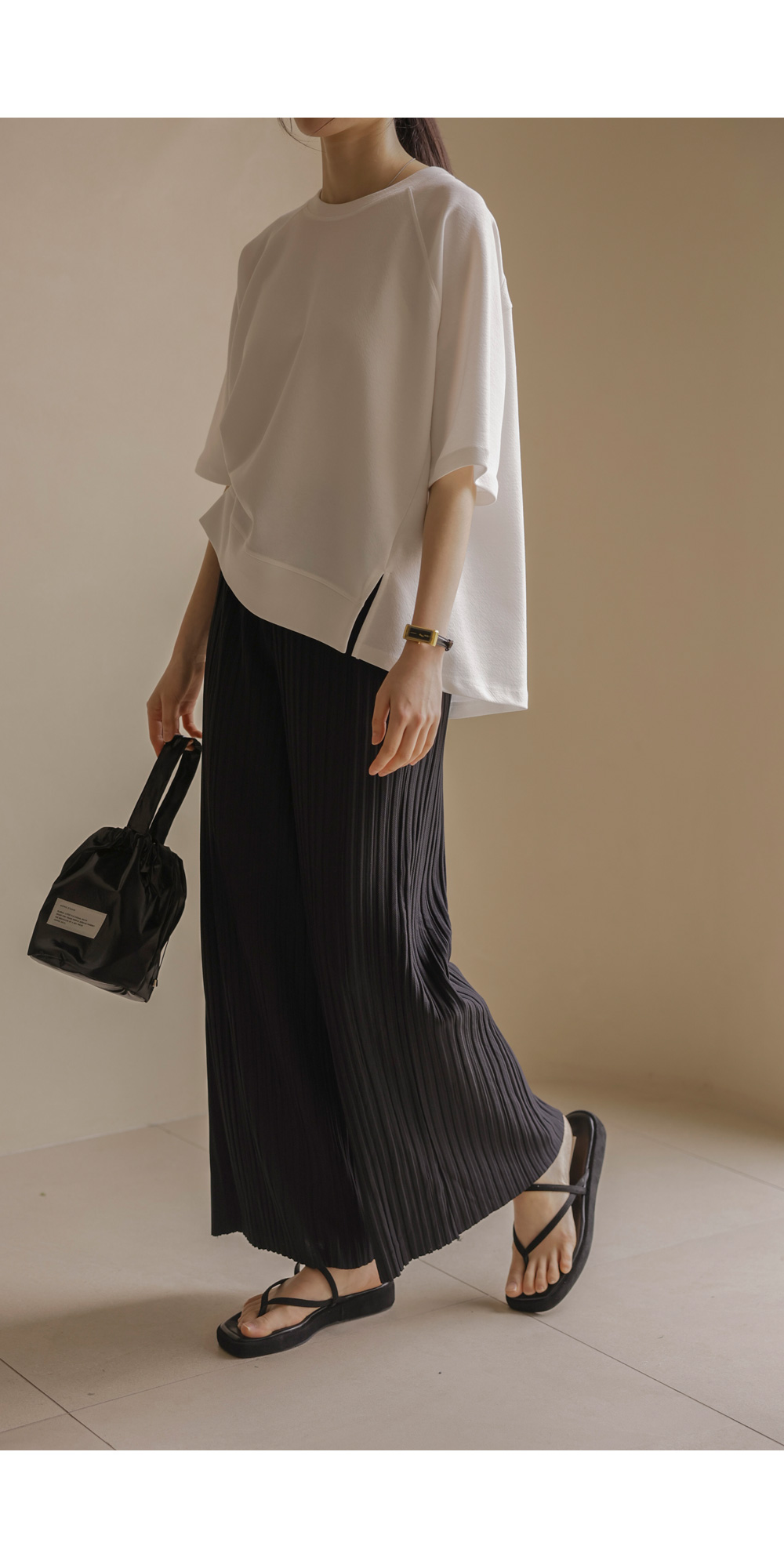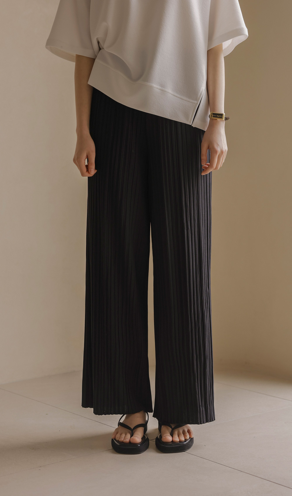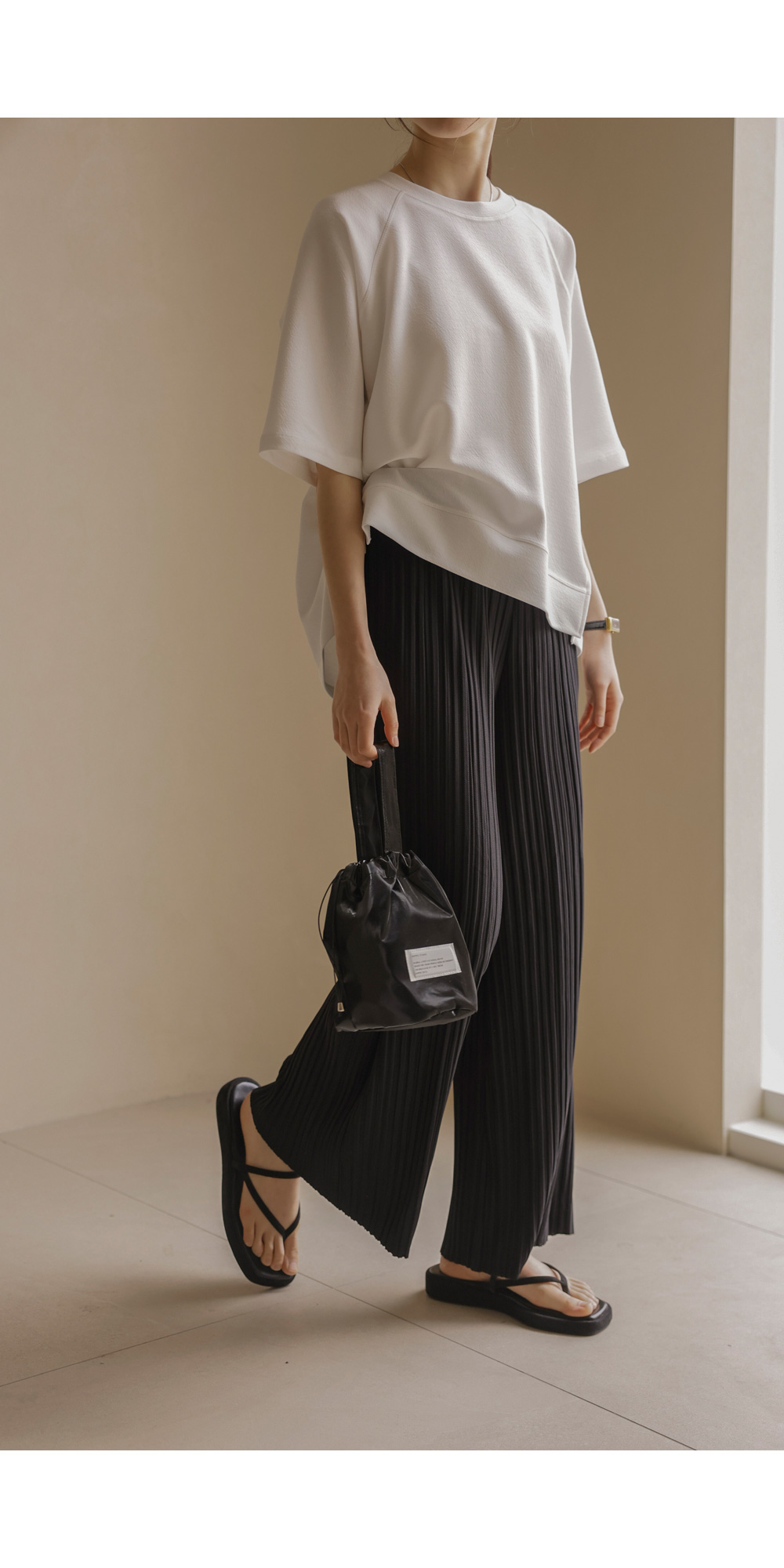 매끈한 촉감에 텐션감이 훌륭한 고퀄리티의 폴리와 스판 혼방 소재를 사용했어요. 두께가 얇고 가벼워 피부에 닿을 때의 청량함이 남다르며, 찰랑찰랑하게 흐르는 소재감이 걸을 때마다 기분 좋은 리듬감을 만들어줍니다. 몸의 굴곡을 도드라지게 하지 않고 매끄럽게 보정해 주는 탄탄한 주름 결이 특징이에요. ![]() 밴딩 가이드 보러가기→ ![]() MD가 답하는 안심 Q&A