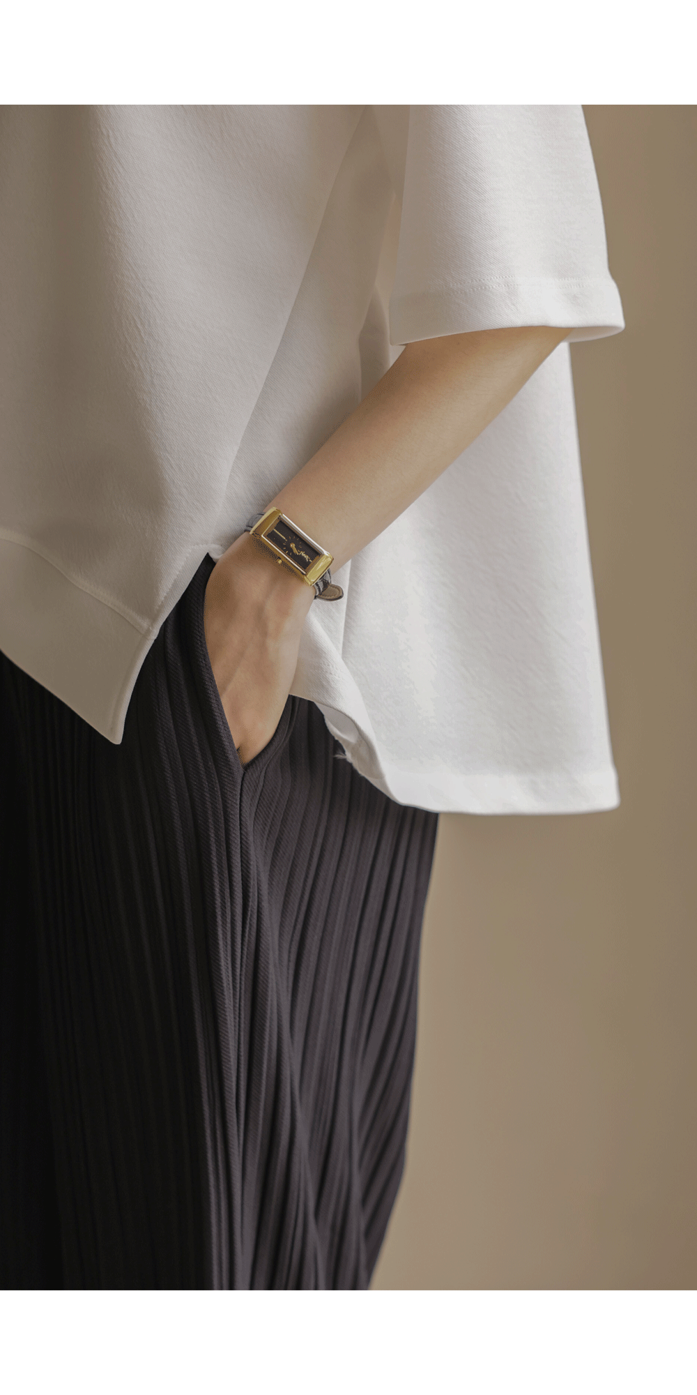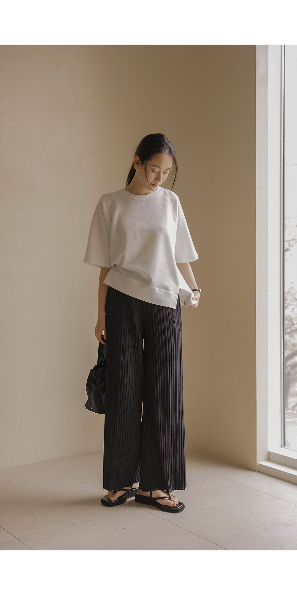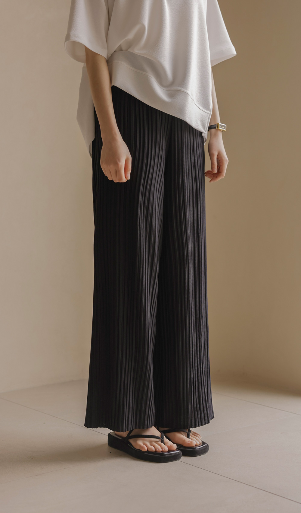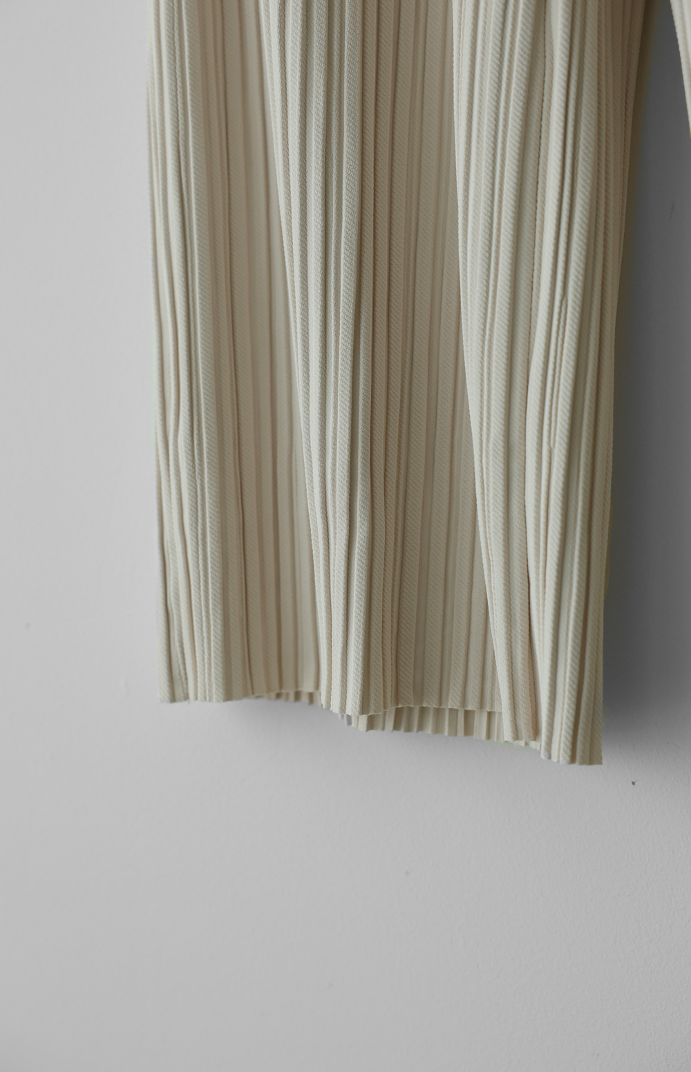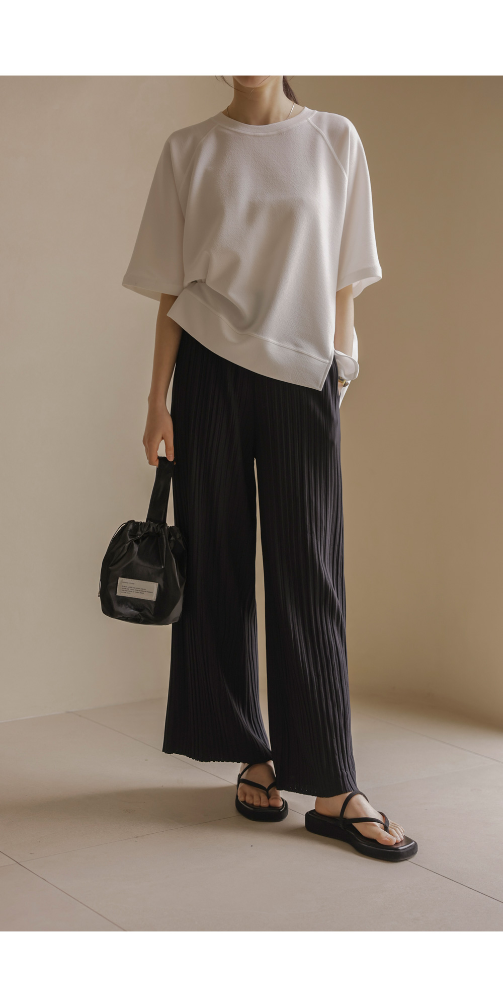 매끈한 촉감에 텐션감이 훌륭한 고퀄리티의 폴리와 스판 혼방 소재를 사용했어요. 두께가 얇고 가벼워 피부에 닿을 때의 청량함이 남다르며, 찰랑찰랑하게 흐르는 소재감이 걸을 때마다 기분 좋은 리듬감을 만들어줍니다. 몸의 굴곡을 도드라지게 하지 않고 매끄럽게 보정해 주는 탄탄한 주름 결이 특징이에요. ![]() 밴딩 가이드 보러가기→ ![]() MD가 답하는 안심 Q&A