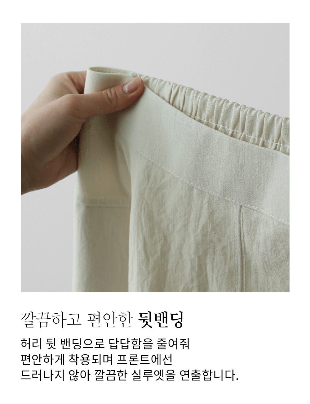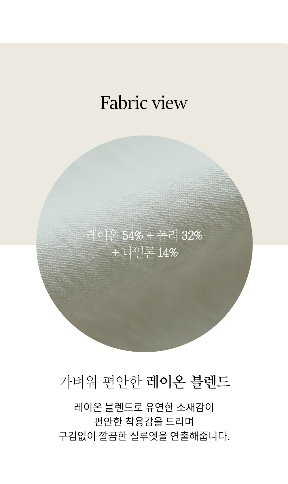 레이온과 나일론, 폴리가 조화롭게 혼방되어 탄탄하면서도 부드러운 터칭감을 자랑해요. 원단 자체에 적당한 힘이 있어 플레어 라인이 죽지 않고 예쁘게 살아나며, 매끈한 표면 덕분에 먼지 붙음 걱정 없이 깔끔하게 착용하실 수 있답니다. 가벼운 무게감이지만 조직감이 조밀해 비침 걱정 없이 안정적인 실루엣을 연출해 주는 고퀄리티 소재예요. ![]() 밴딩 가이드 보러가기→ ![]() MD가 답하는 안심 Q&A