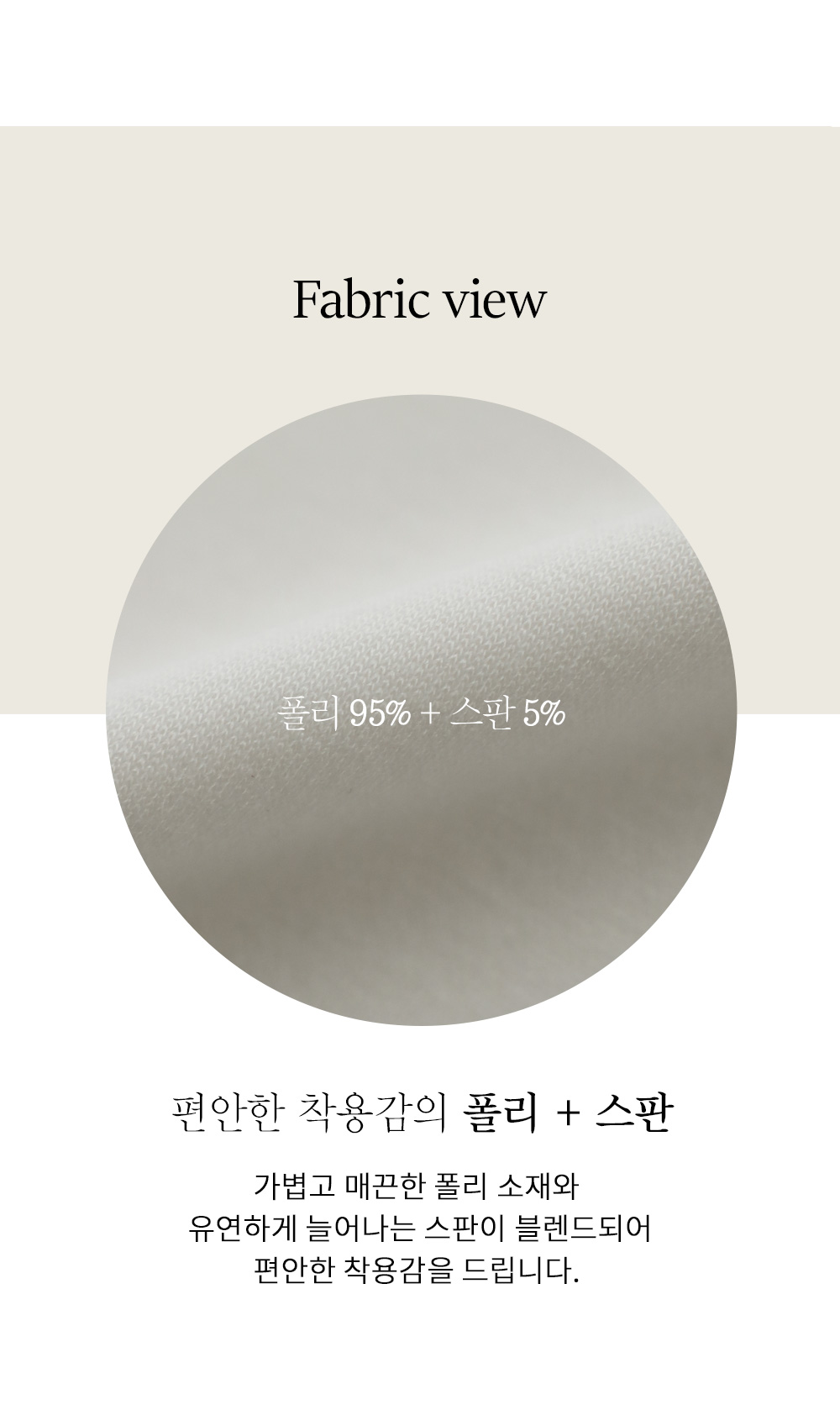 폴리에스터와 스판이 적절히 혼방된 소재를 사용하여 구김 걱정을 덜어드렸구요. 실켓 가공 처리를 거쳐 면 소재보다 훨씬 매끄럽고 은은한 윤기가 도는 것이 특징이에요. 스판 소재가 함유되어 사방으로 유연하게 늘어나기 때문에 장시간 착용하셔도 압박감 없이 편안하며, 오랫동안 예쁜 핏을 유지하며 입으실 수 있는 퀄리티 높은 소재입니다. ![]() MD가 답하는 안심 Q&A