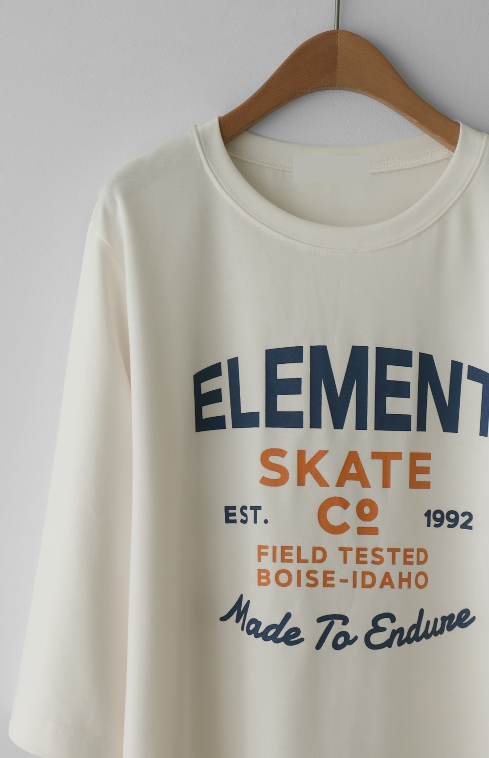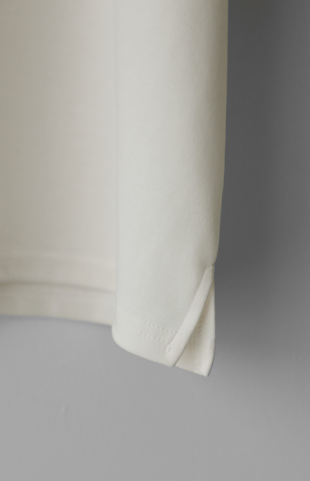 이번에 소개해 드리는 제품은 은은한 광택감이 감도는 실켓 가공 소재를 사용하여 일반 면 티셔츠보다 훨씬 고급스러운 분위기를 자아내구요. 프론트 라인에는 과하지 않은 감각적인 레터링을 더해 단독으로 입어도 밋밋함이 전혀 느껴지지 않는답니다.