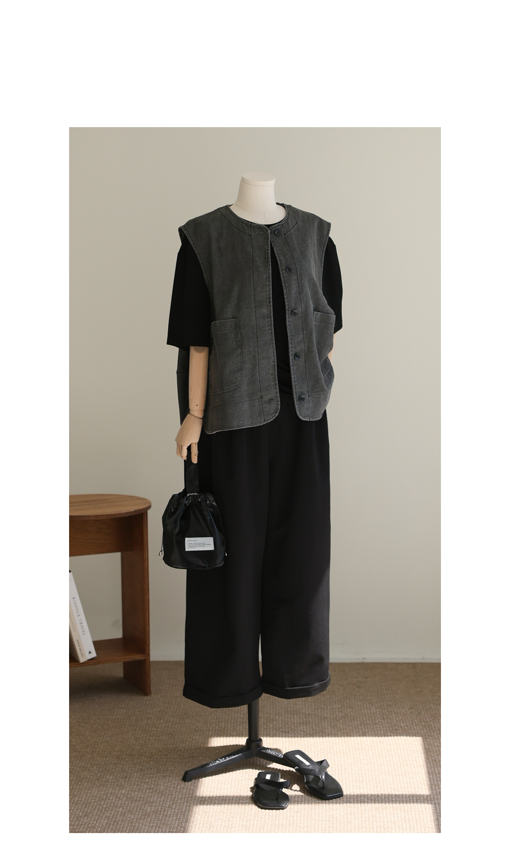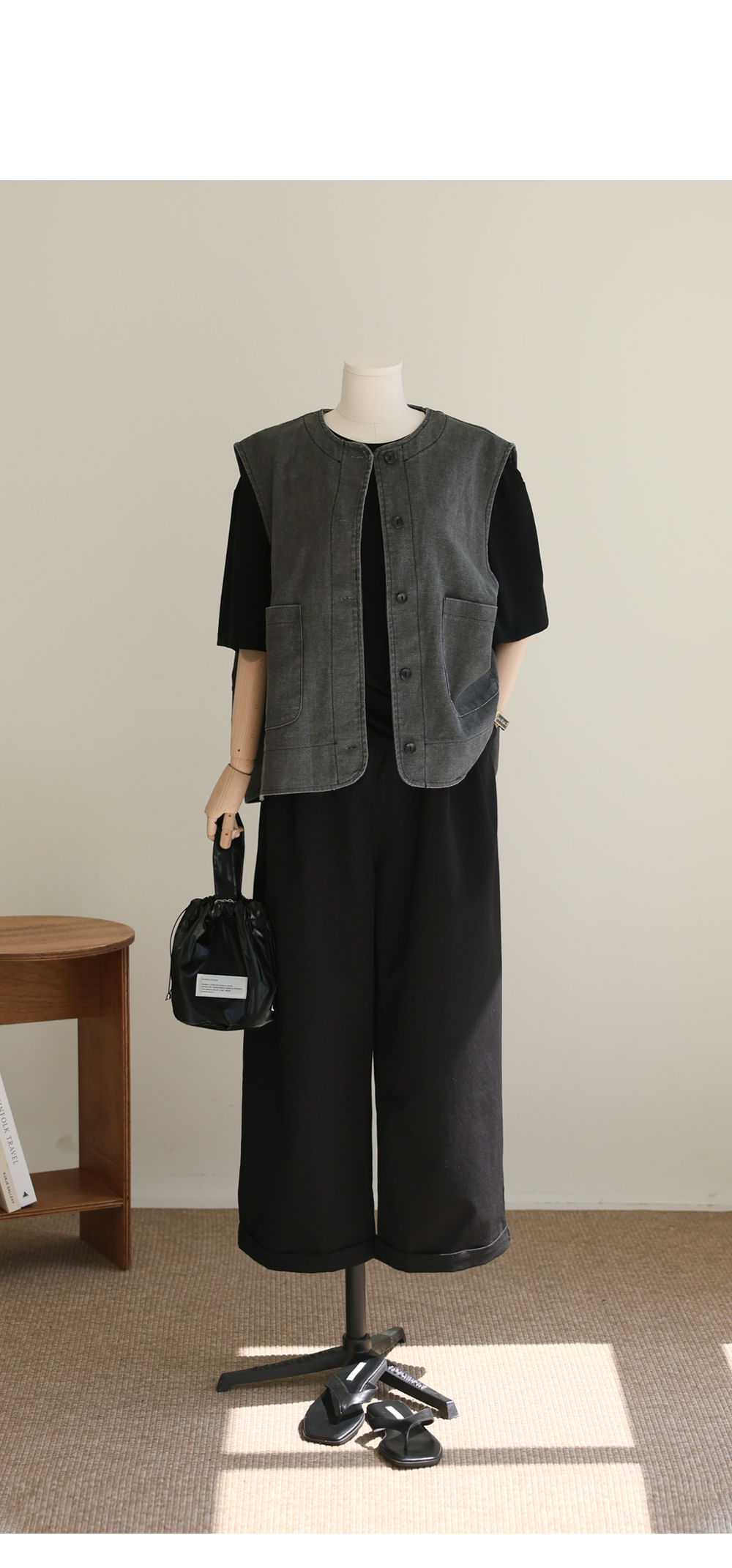 밋밋한 티셔츠 위에 툭, 코디의 완성도를 높여줄 마법의 조끼예요.