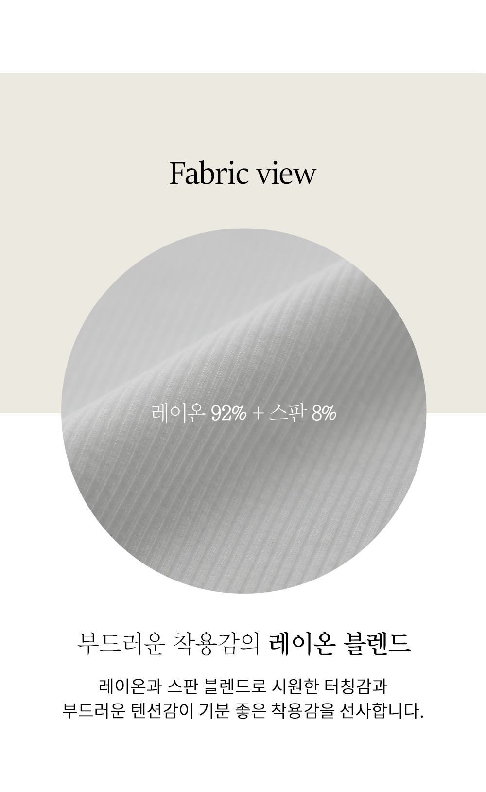 피부에 닿는 감촉이 실크처럼 매끄러운 레이온 소재를 베이스로 하여 땀 흡수와 통기성이 매우 뛰어나요. 여기에 스판이 혼용되어 쫀득한 신축성을 자랑하는데요, 몸에 무작정 달라붙는 게 아니라 체형에 맞춰 유연하게 늘어나기 때문에 장시간 착용해도 압박감 없이 편안한 착용감을 선사해요. ![]() MD가 답하는 안심 Q&A