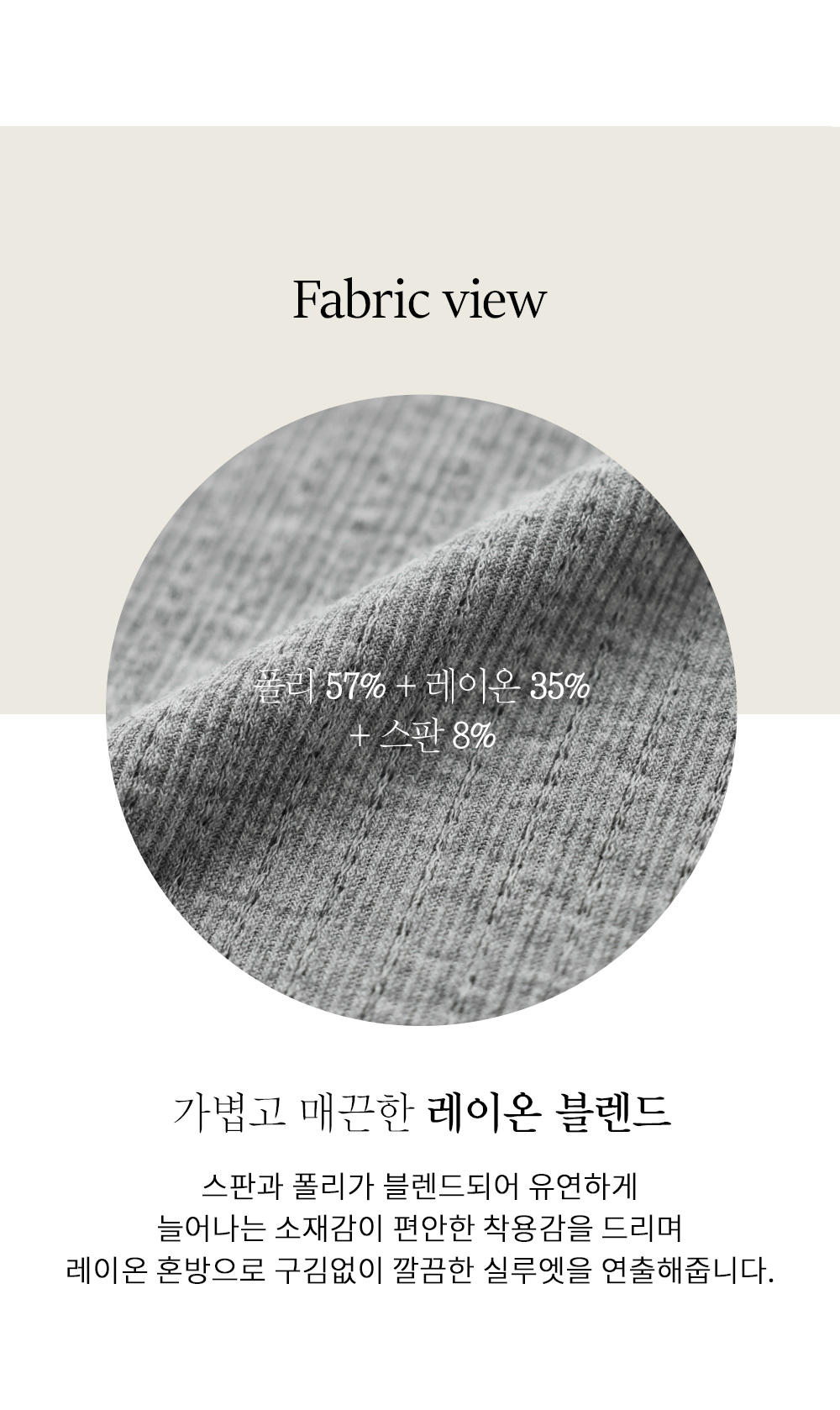 폴리에스터와 레이온이 조화롭게 혼방되어 매끄러우면서도 부드러운 촉감을 자랑해요. 레이온 특유의 찰랑거리는 실루엣이 바디 라인을 따라 예쁘게 떨어지며, 여기에 스판이 함유되어 있어 신축성이 정말 대단하답니다. 몸을 조이지 않고 유연하게 늘어나 활동량이 많은 날에도 스트레스 없이 편안하게 착용하실 수 있어요. ![]() MD가 답하는 안심 Q&A