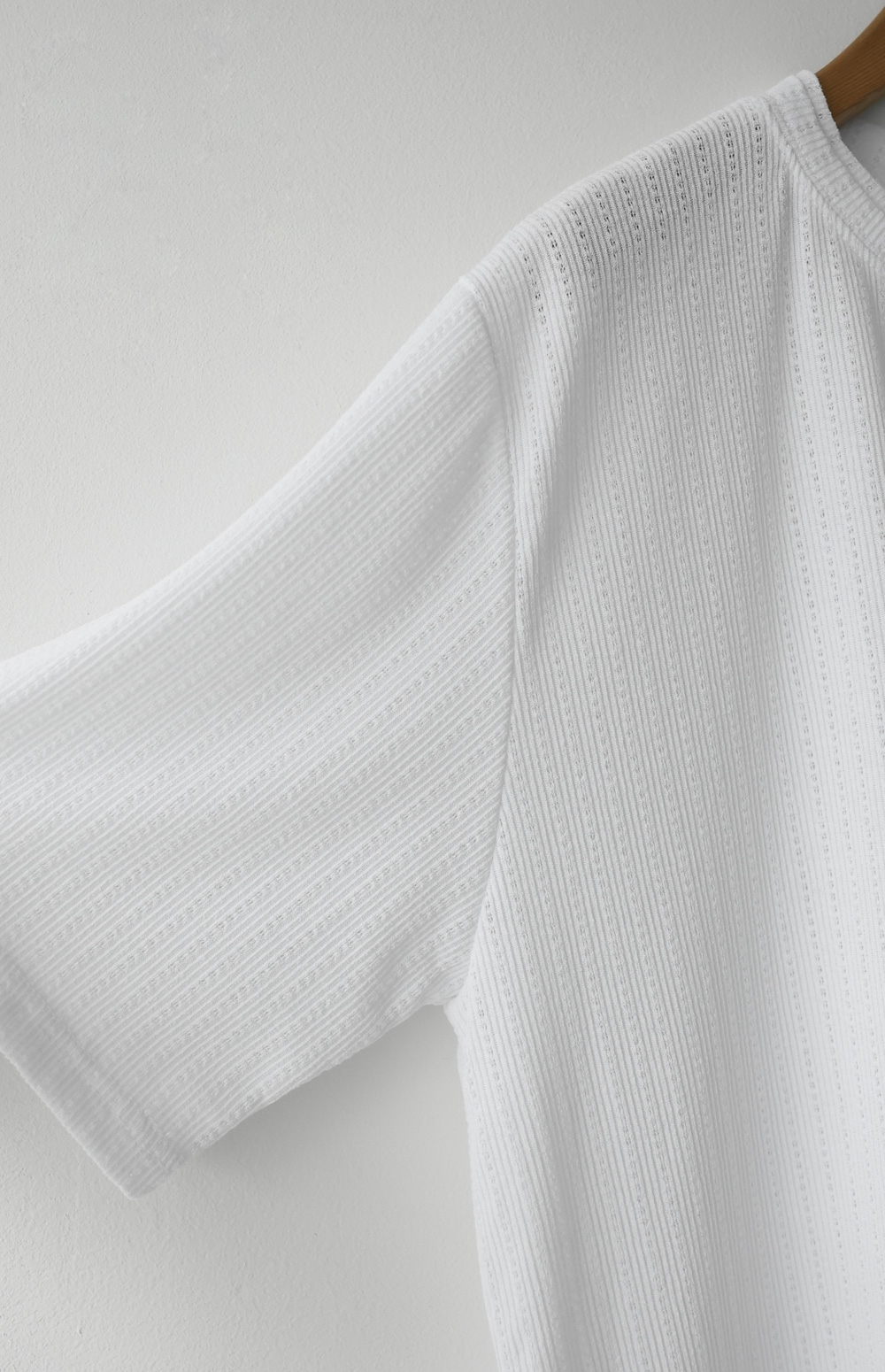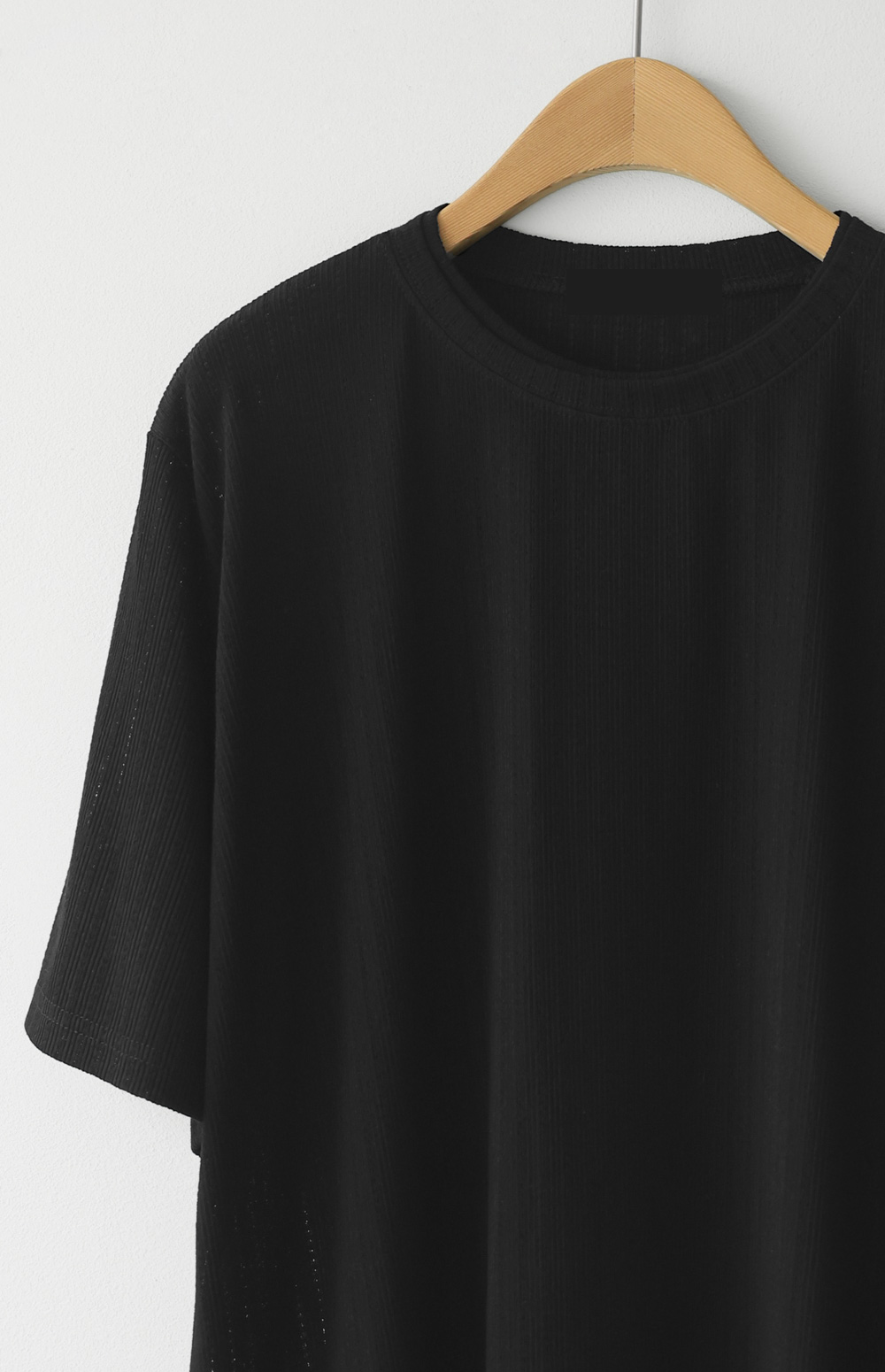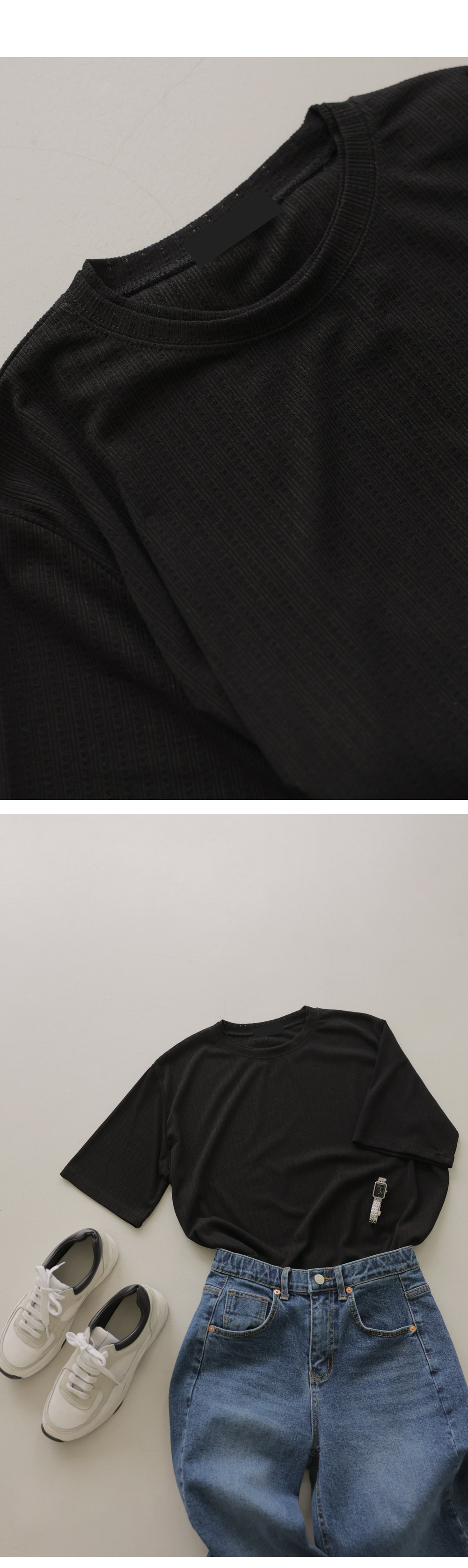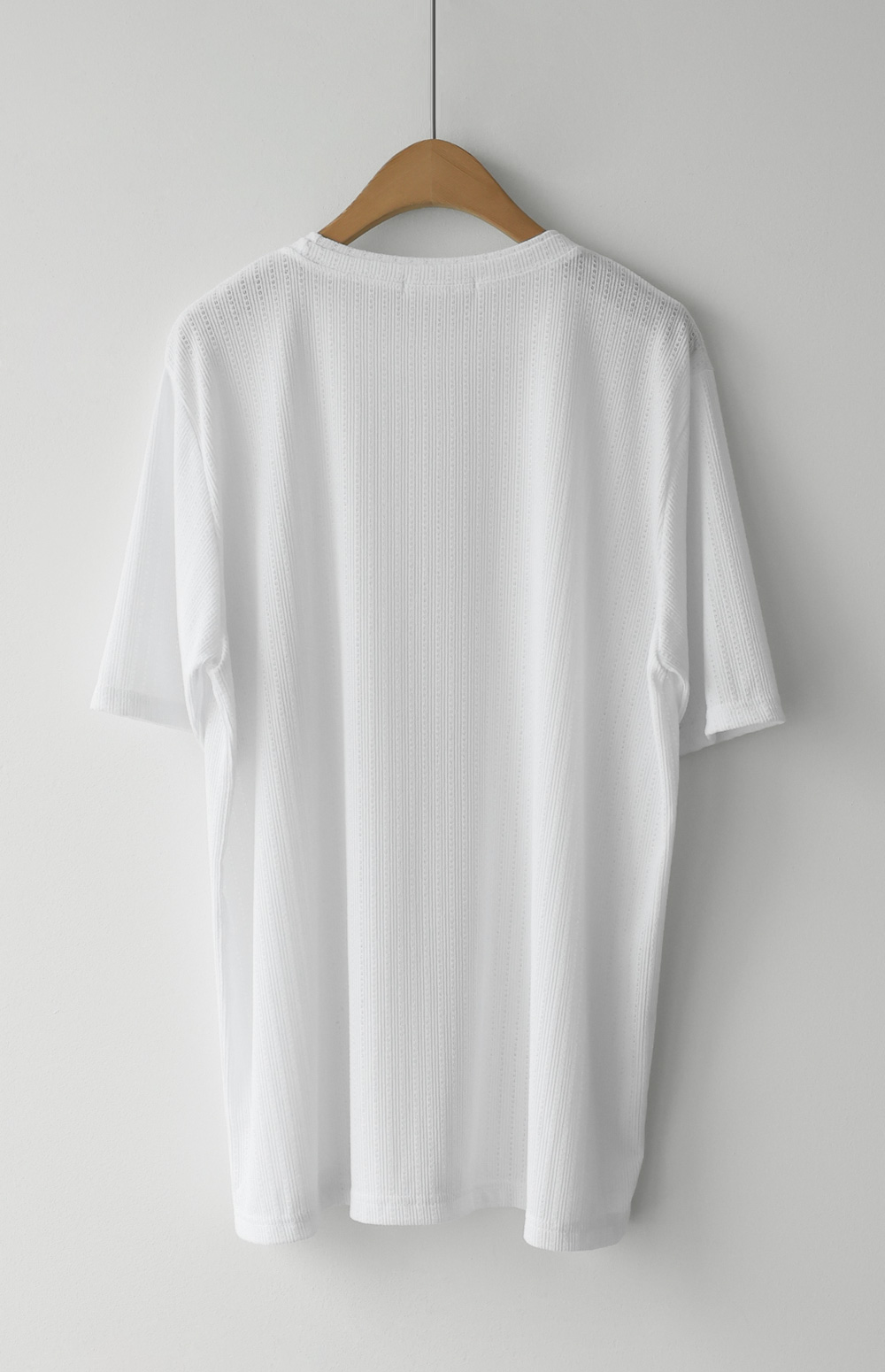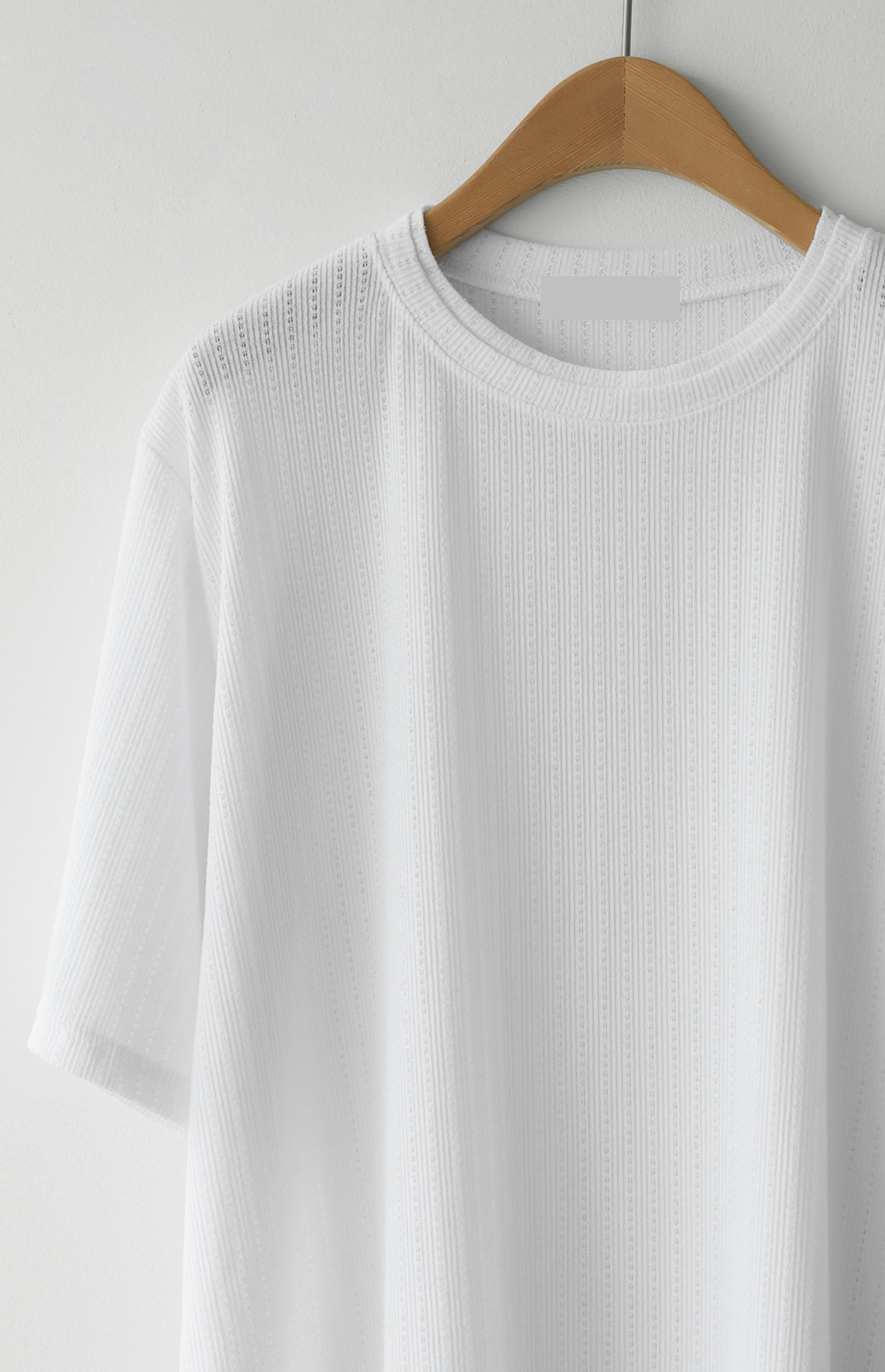쾌적함을 잃지 않게 도와줄 반팔 티셔츠 아이템을 준비했어요. 이번 상품은 전체적으로 들어간 섬세한 펀칭 디테일 덕분에 통기성이 정말 우수해서, 땀이 나도 피부에 달라붙지 않고 보송보송한 착용감을 유지해 주는데요. 기본적인 라운드넥 디자인이라 어떤 하의와도 이질감 없이 잘 어우러진답니다.