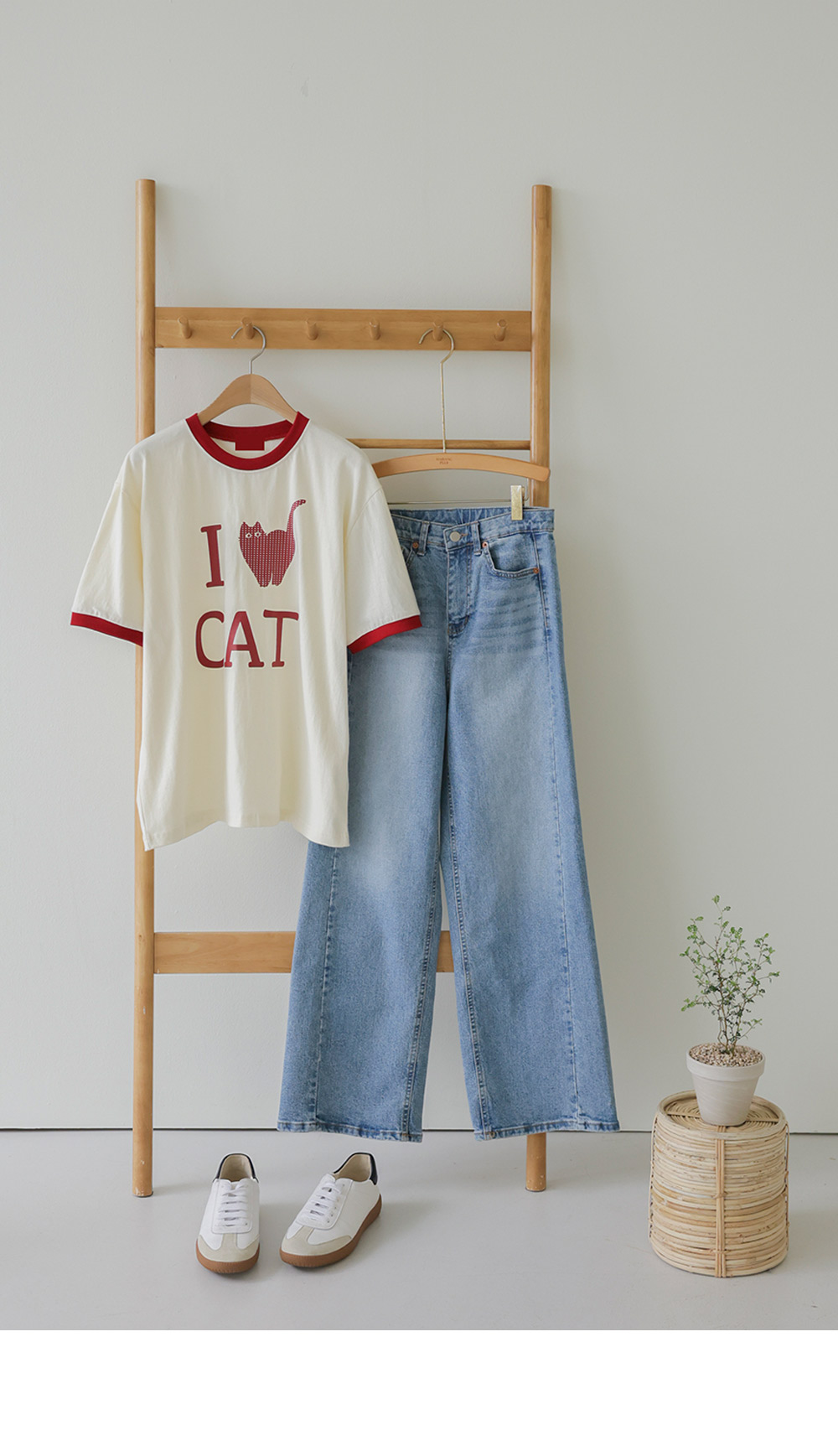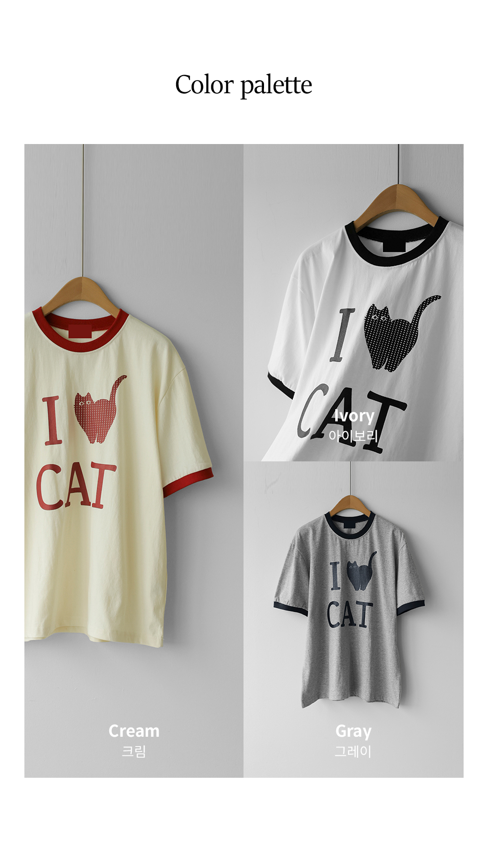 캐주얼하면서도 유니크한 무드를 연출하기에 제격인 반팔 티셔츠 아이템을 준비했어요. 이번 상품은 전면에 들어간 감각적인 고양이 프린팅이 시선을 사로잡아 단독으로만 입어도 룩에 확실한 포인트를 주는데요. 넥라인과 소매 끝단에 더해진 배색 시보리 디테일이 스포티하면서도 단정한 느낌을 동시에 주어 슬랙스나 데님 어디에나 매치하기 좋답니다.