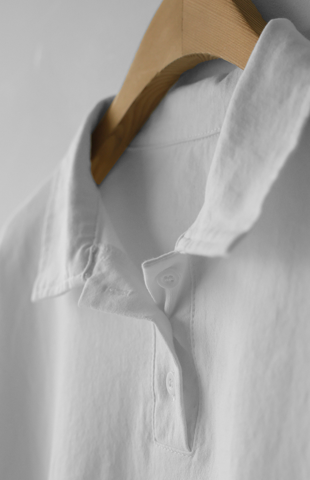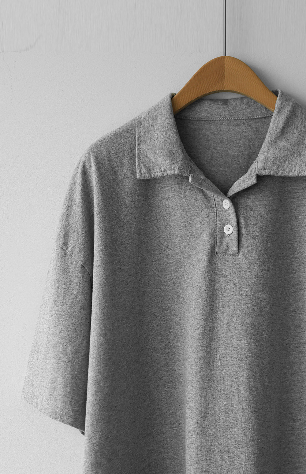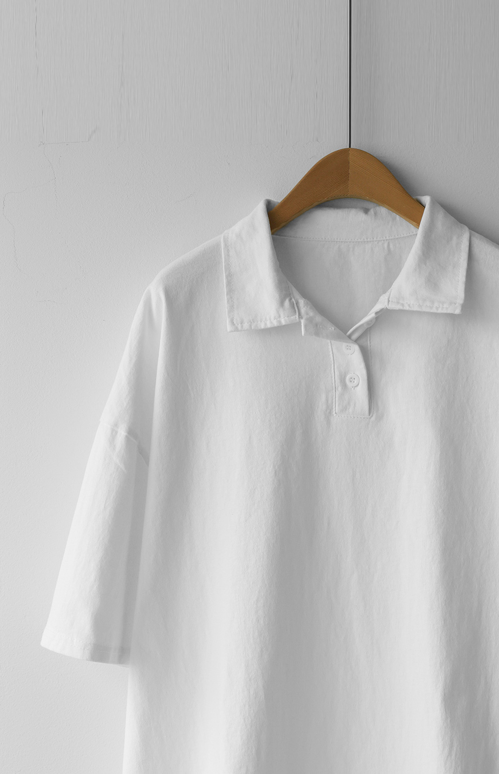 캐주얼하면서도 갖춰 입은 듯한 무드를 연출하기에 제격인 카라 반팔 티셔츠를 소개해 드려요. 이번 상품은 일반적인 라운드넥에서 벗어나 카라넥 디자인을 적용하여 단정한 인상을 주는데요. 가슴 라인까지 내려오는 하프 단추는 오픈이 가능하여 취향에 따라 넥 라인 깊이를 조절할 수 있어 더욱 실용적이구요, 전체적으로 탄탄한 조직감이 살아있어 핏이 무너지지 않고 깔끔하게 유지된답니다.