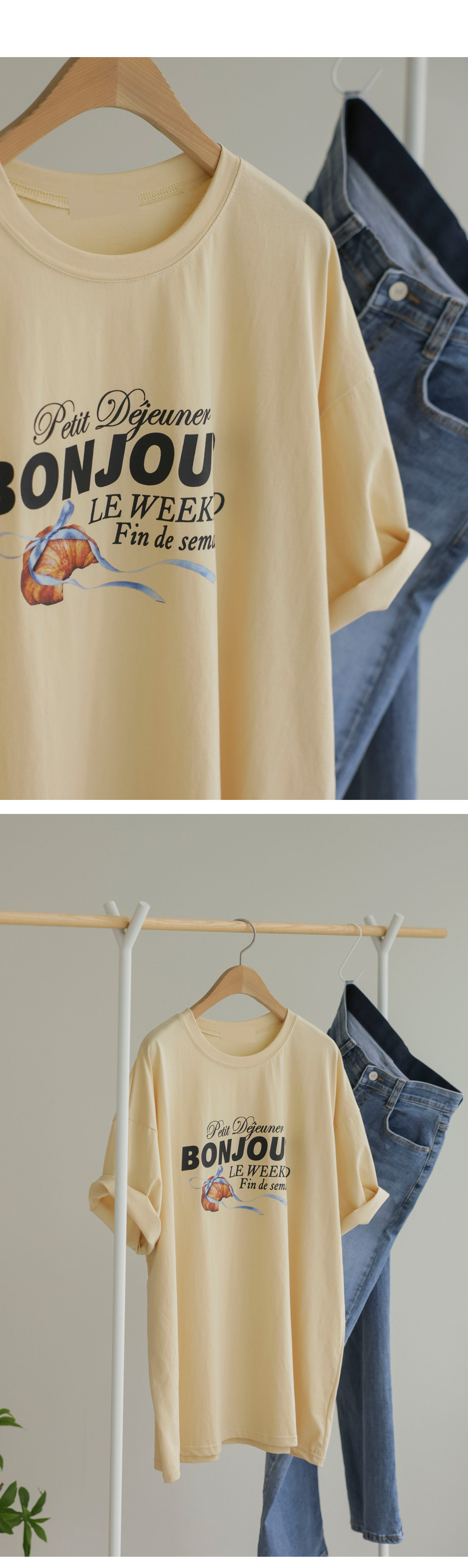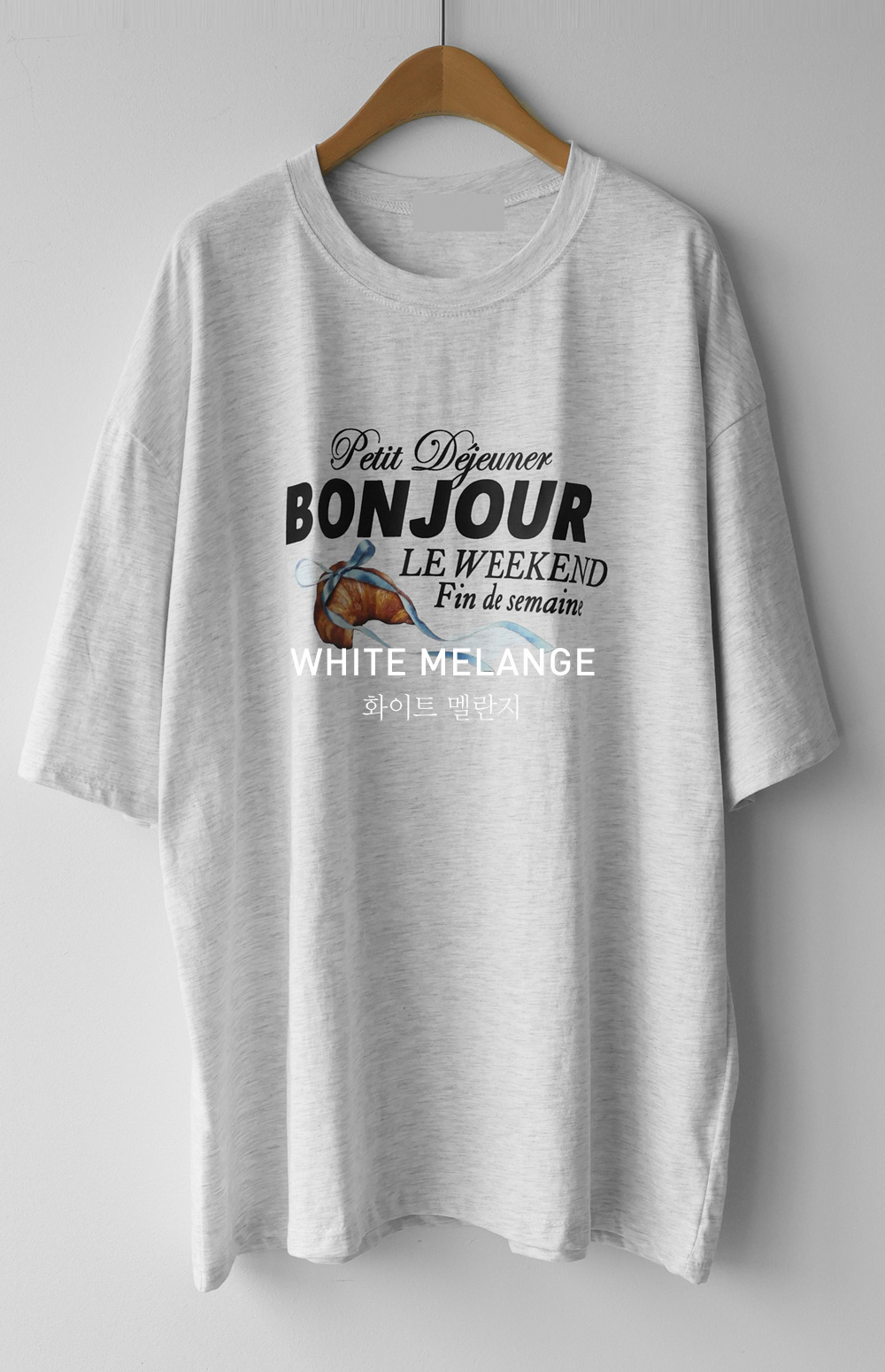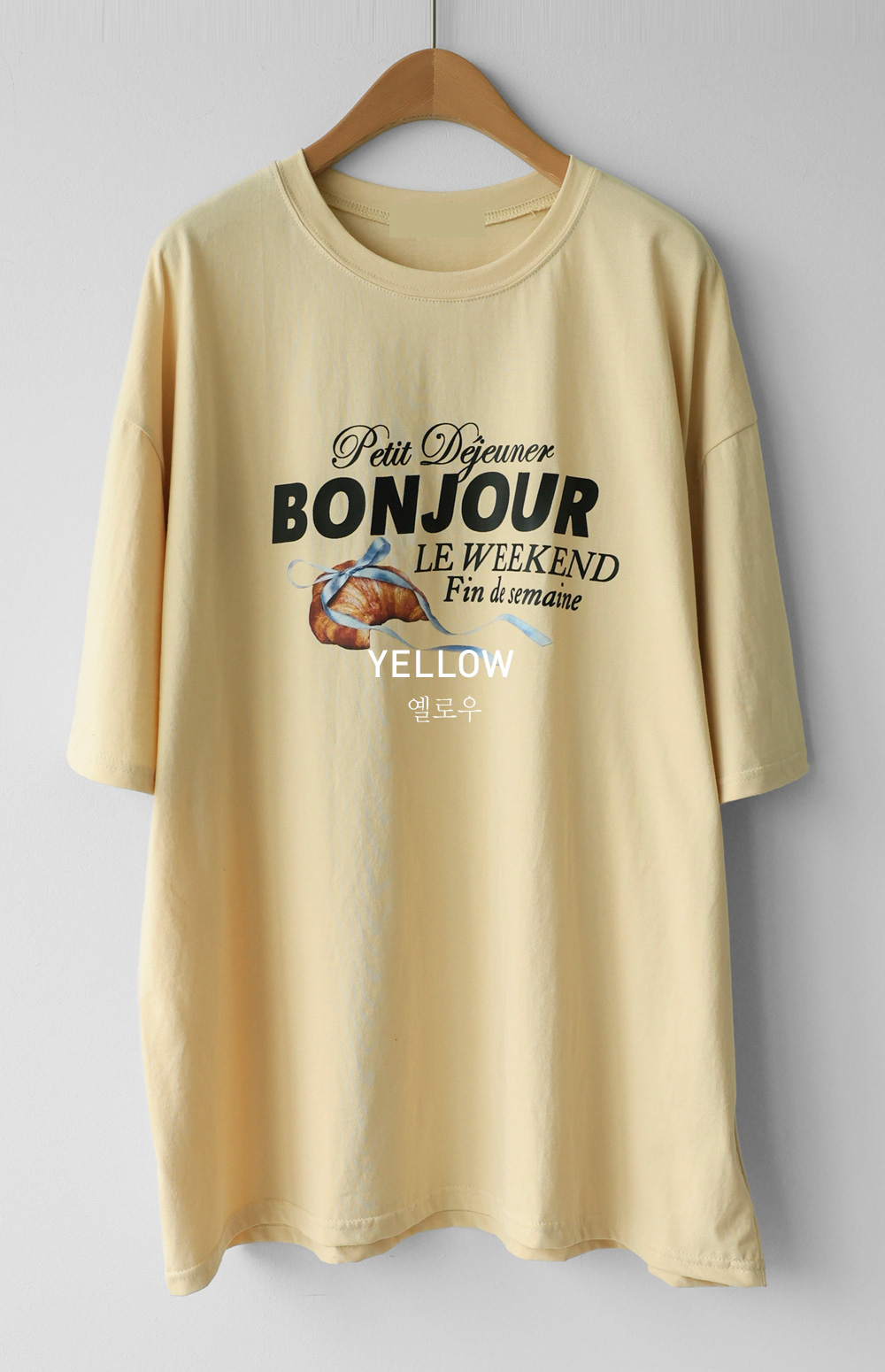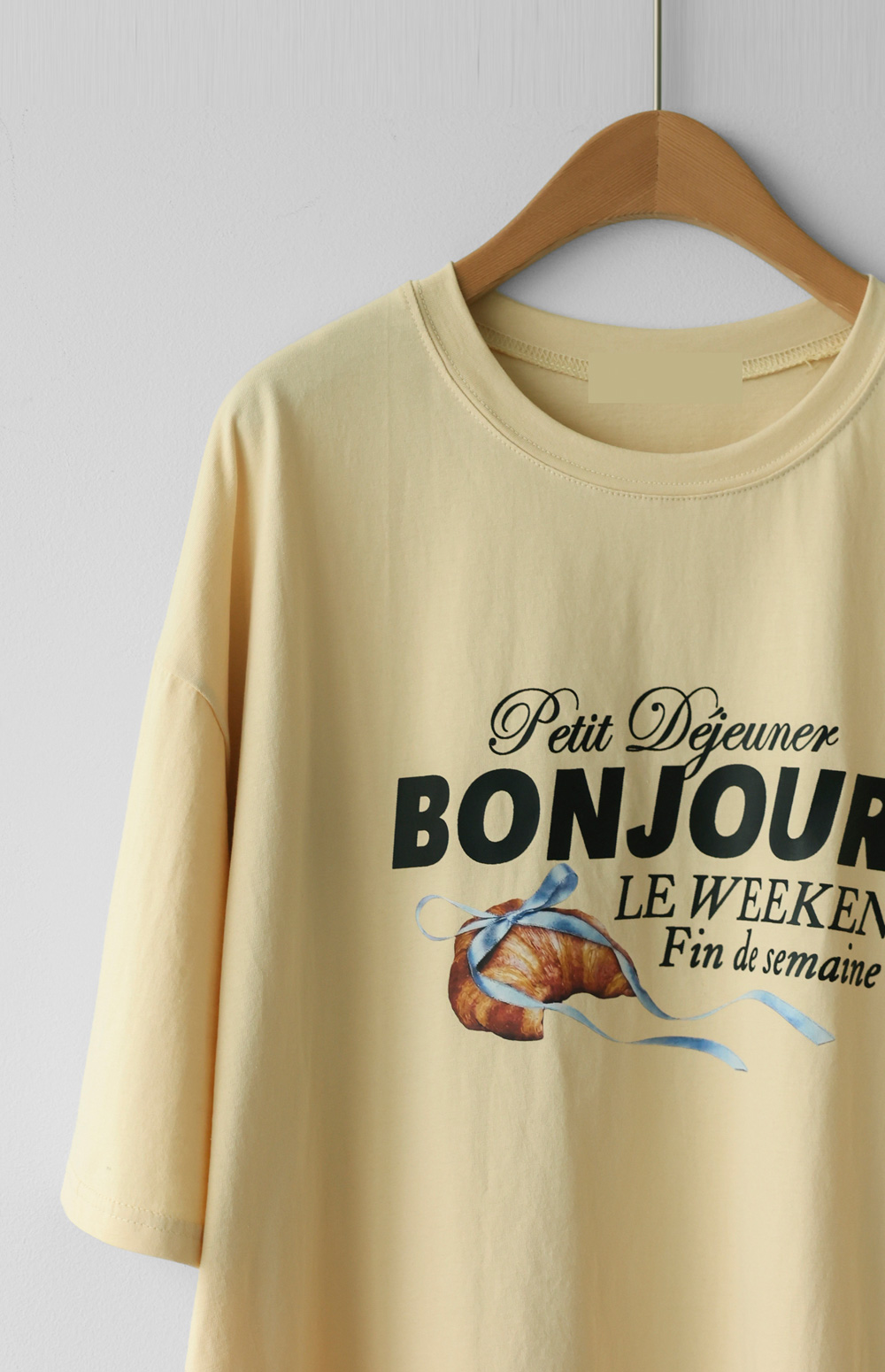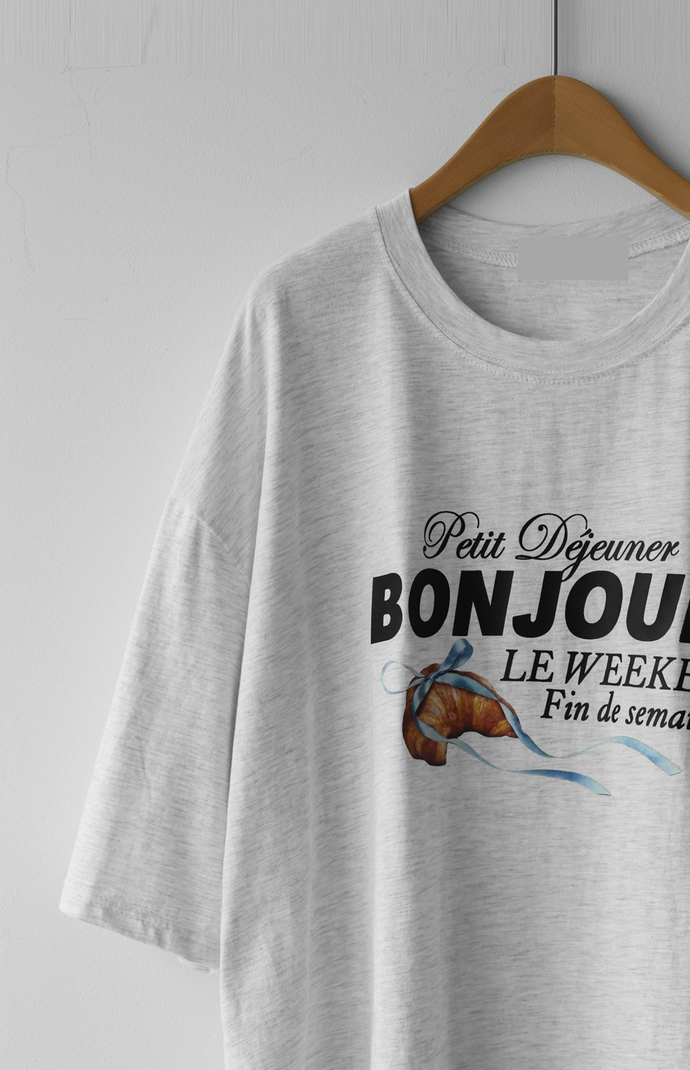 사랑스러운 무드를 연출하기에 제격인 반팔 티셔츠 아이템을 소개해 드려요. 이번 상품은 전면에 들어간 감각적인 크로와상 일러스트와 세련된 레터링 프린팅이 시선을 사로잡아 단독으로만 입어도 룩에 확실한 생기를 불어넣어 주는데요. 얇고 보드라운 텍스처 덕분에 한여름에도 답답함 없이 쾌적하게 착용하실 수 있구요, 매일매일 손이 갈 데일리 아이템이랍니다.