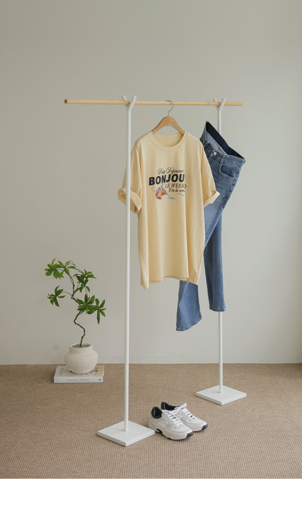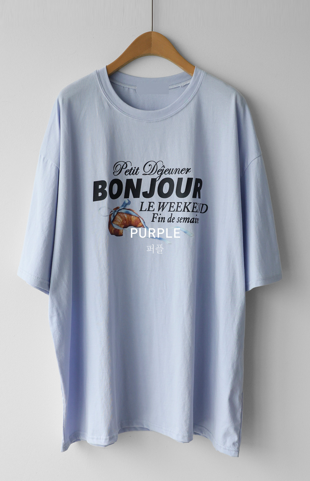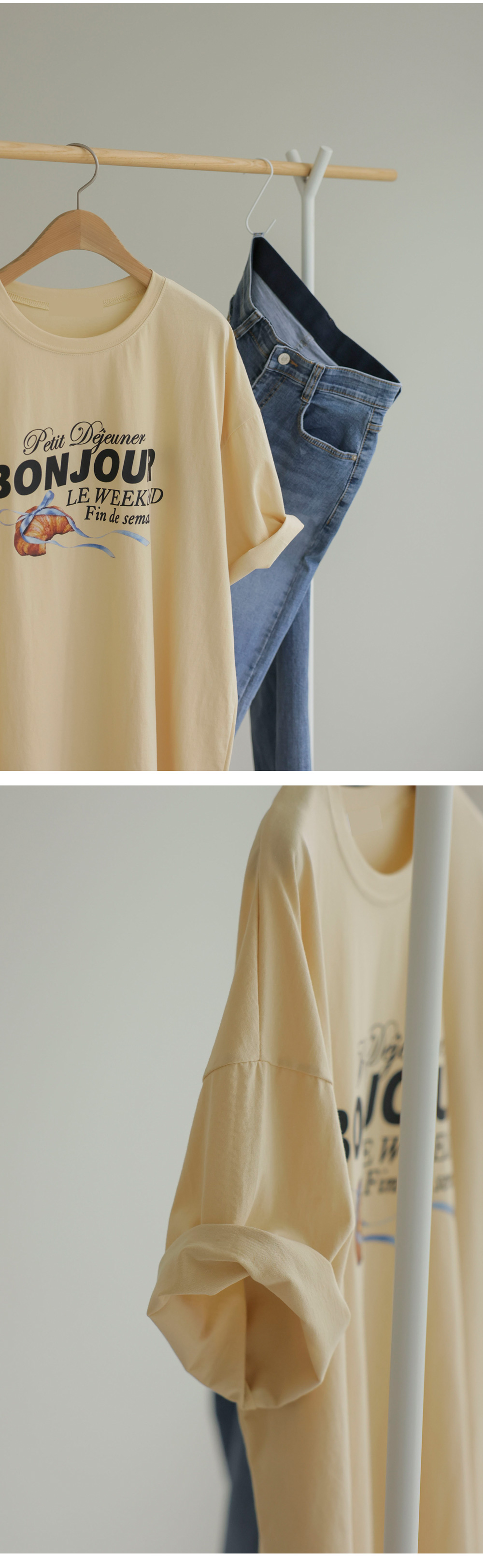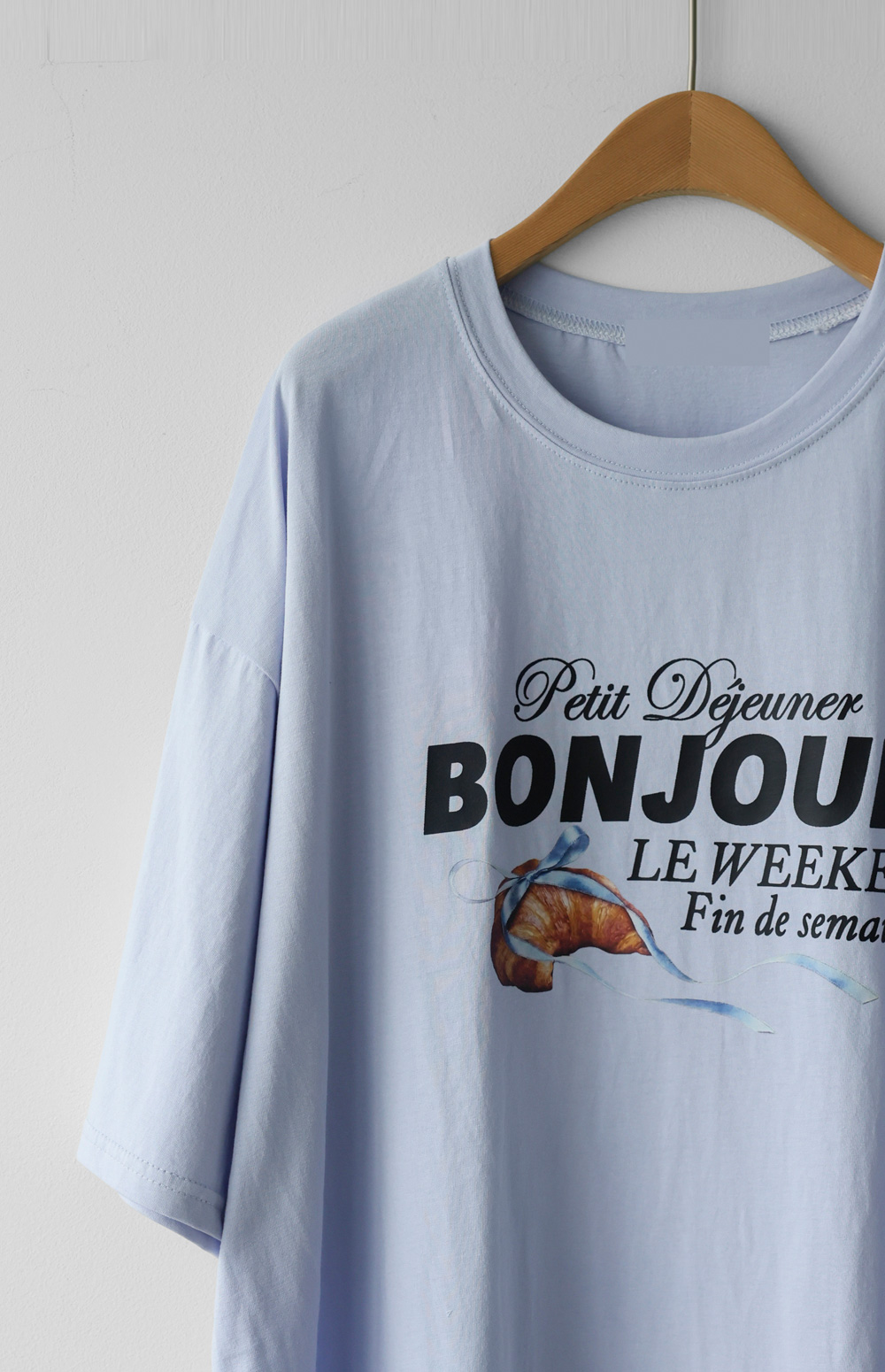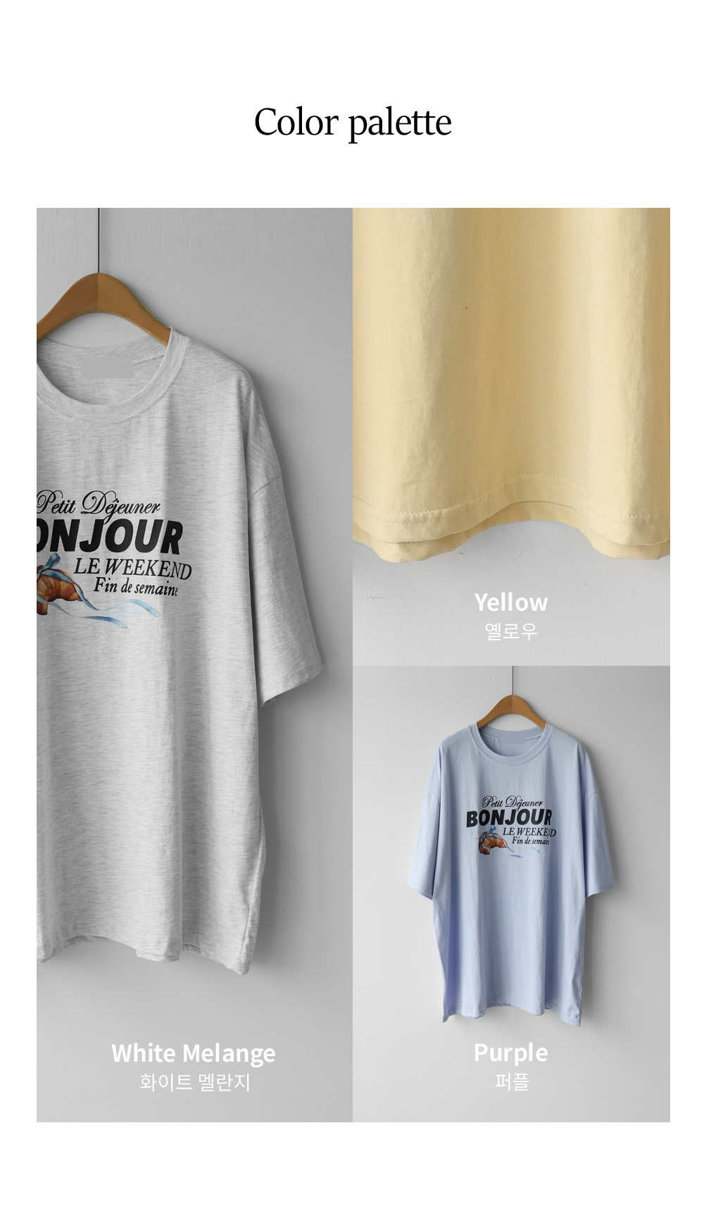 사랑스러운 무드를 연출하기에 제격인 반팔 티셔츠 아이템을 소개해 드려요. 이번 상품은 전면에 들어간 감각적인 크로와상 일러스트와 세련된 레터링 프린팅이 시선을 사로잡아 단독으로만 입어도 룩에 확실한 생기를 불어넣어 주는데요. 얇고 보드라운 텍스처 덕분에 한여름에도 답답함 없이 쾌적하게 착용하실 수 있구요, 매일매일 손이 갈 데일리 아이템이랍니다.