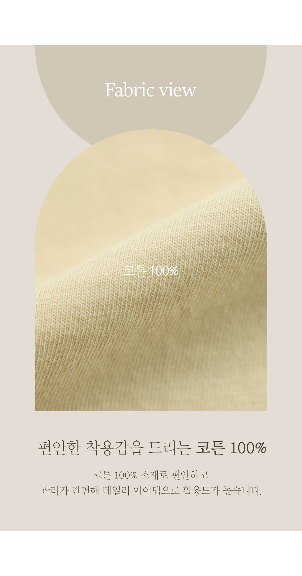 순수 자연 소재인 코튼 100%를 사용하여 제작했어요. 땀 흡수와 배출이 우수한 원단이라 무더운 날씨에도 피부에 쩍 달라붙지 않고 보송보송한 착용감을 유지해 주는데요. 아주 얇고 가벼운 두께감으로 가공되어 입은 듯 안 입은 듯 가벼운 무게감을 자랑하며, 원단 표면을 보드랍게 처리하여 마치 실크를 만지는 듯한 매끄러운 촉감을 느끼실 수 있어요.