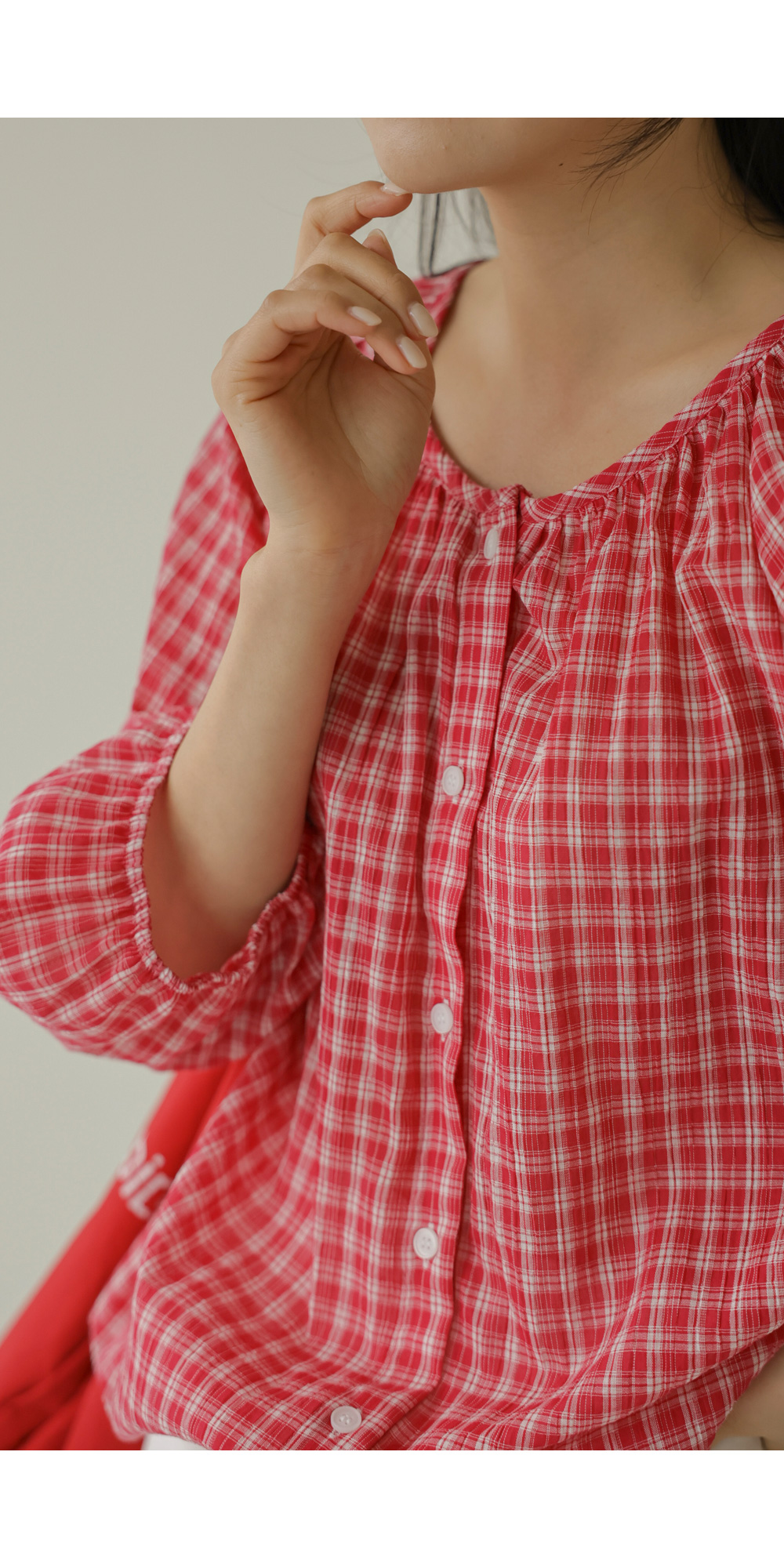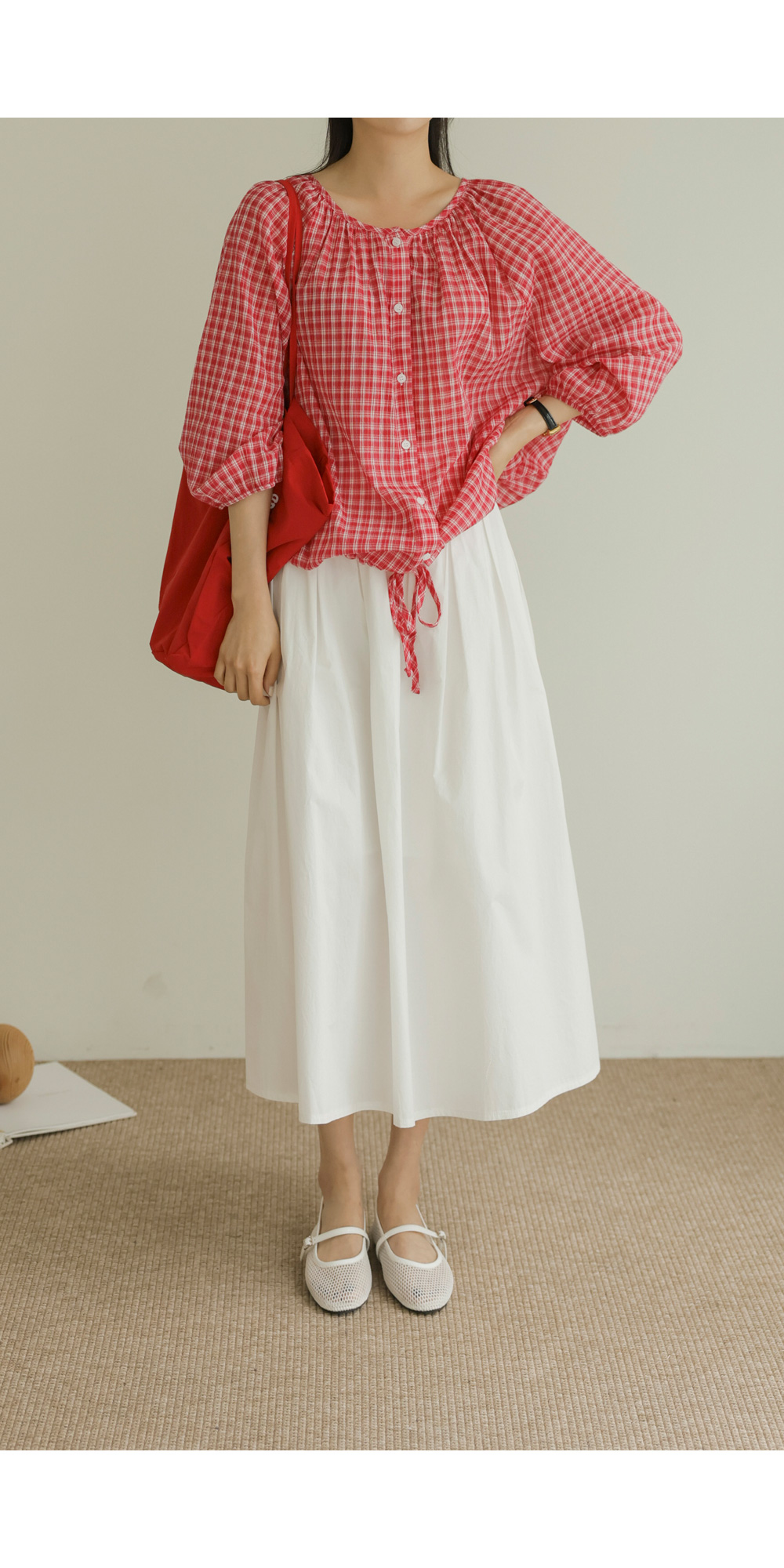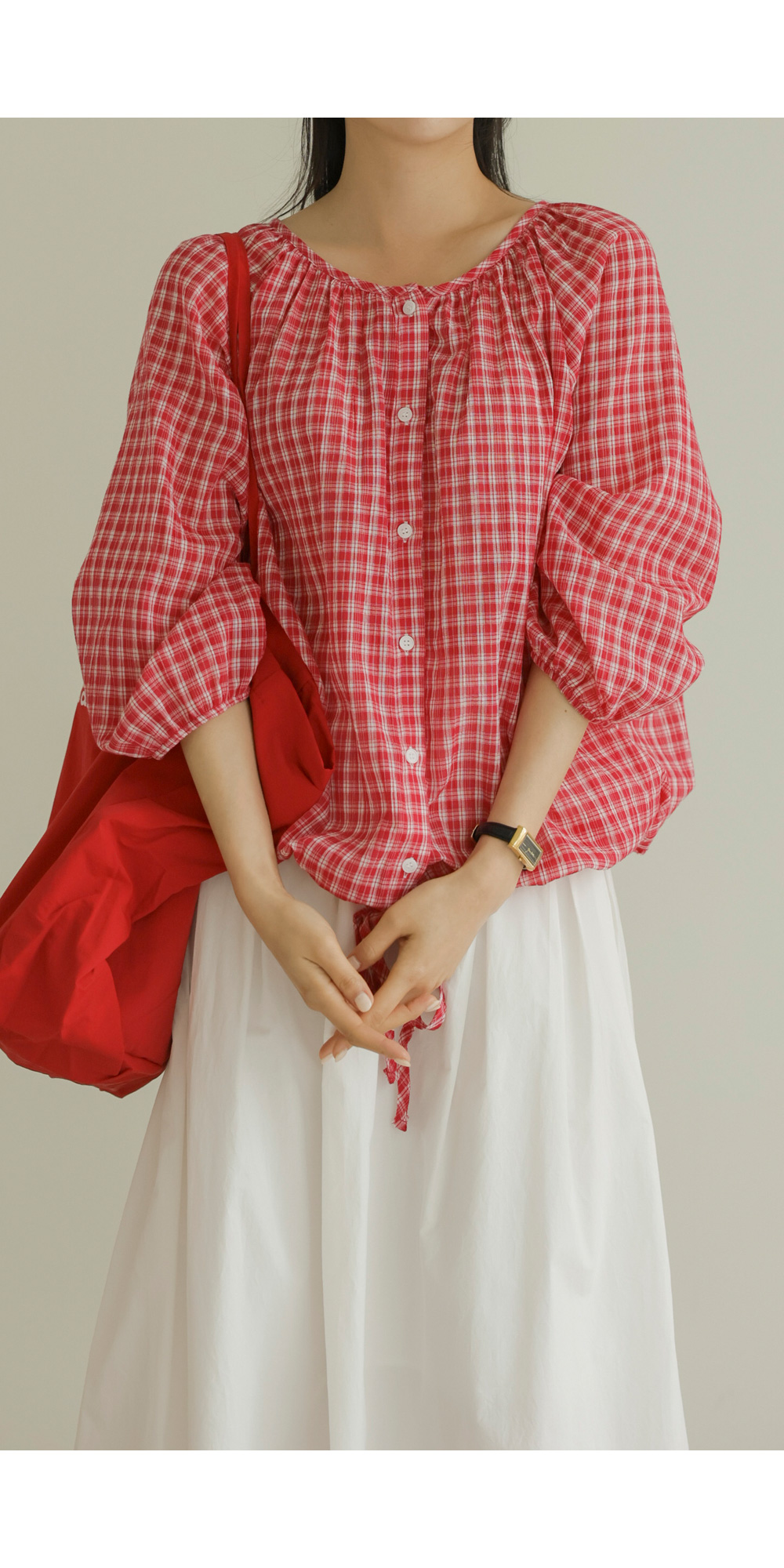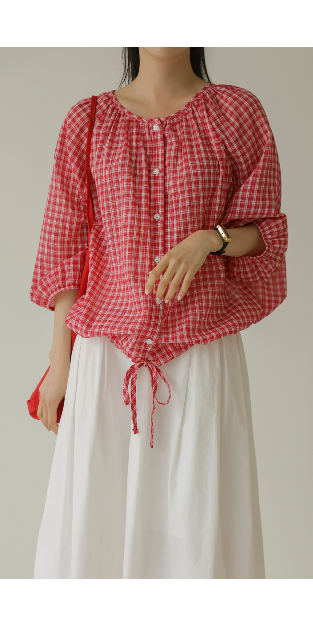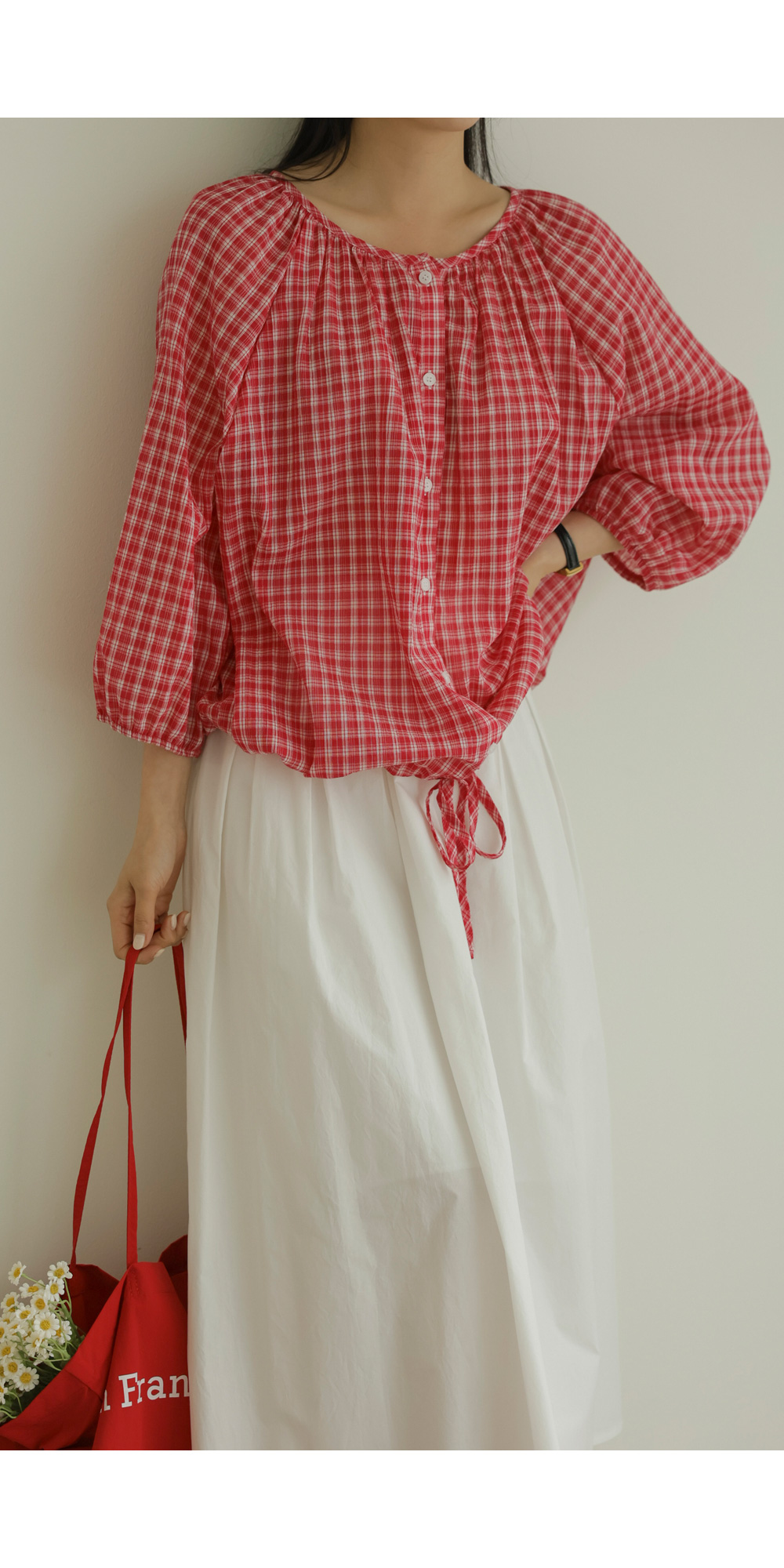 체페론 체크 블라우스 _ 레드
