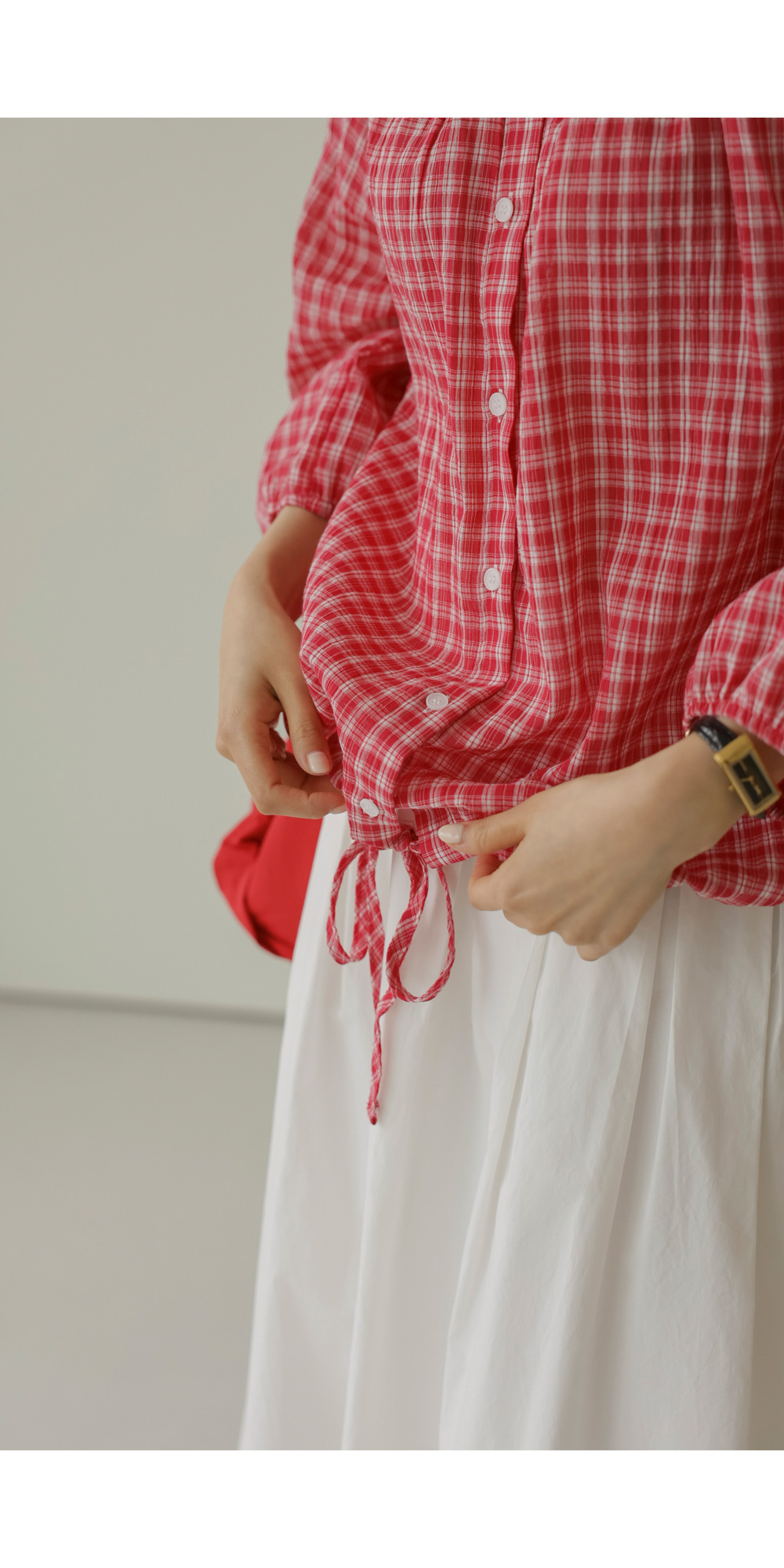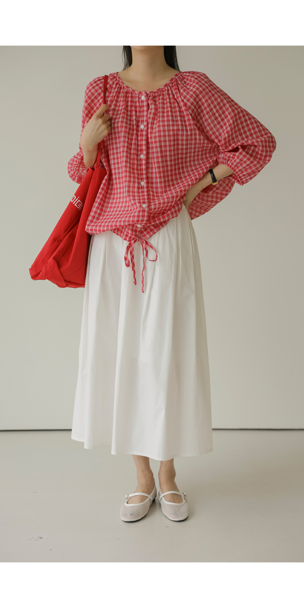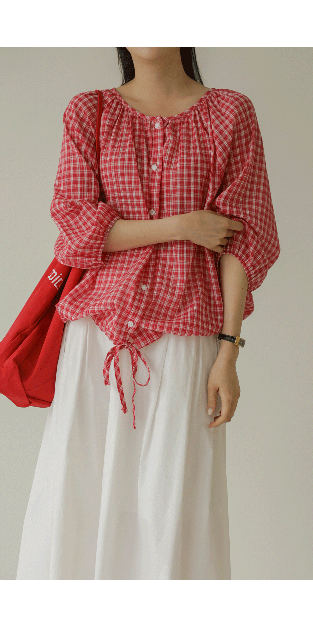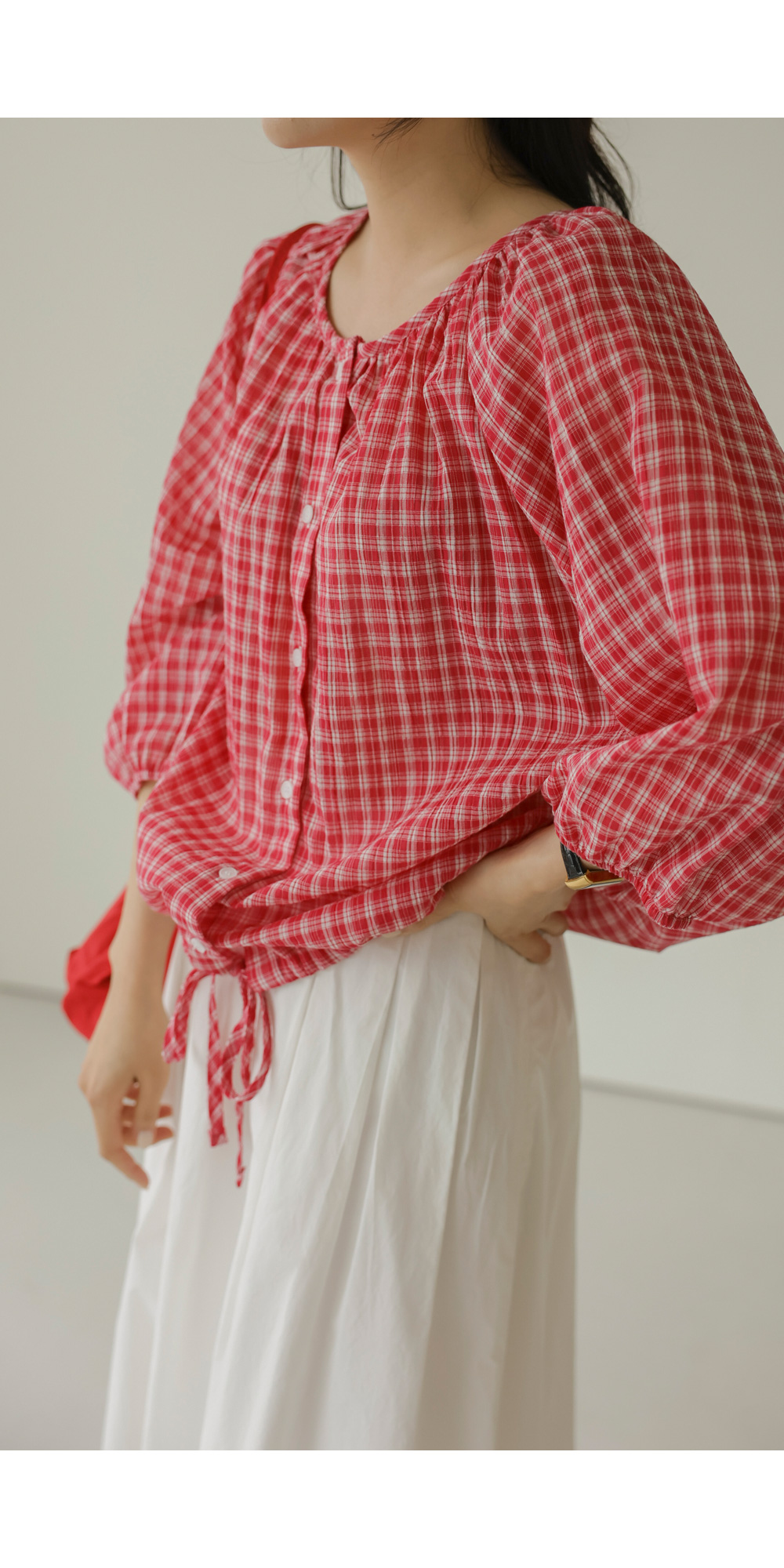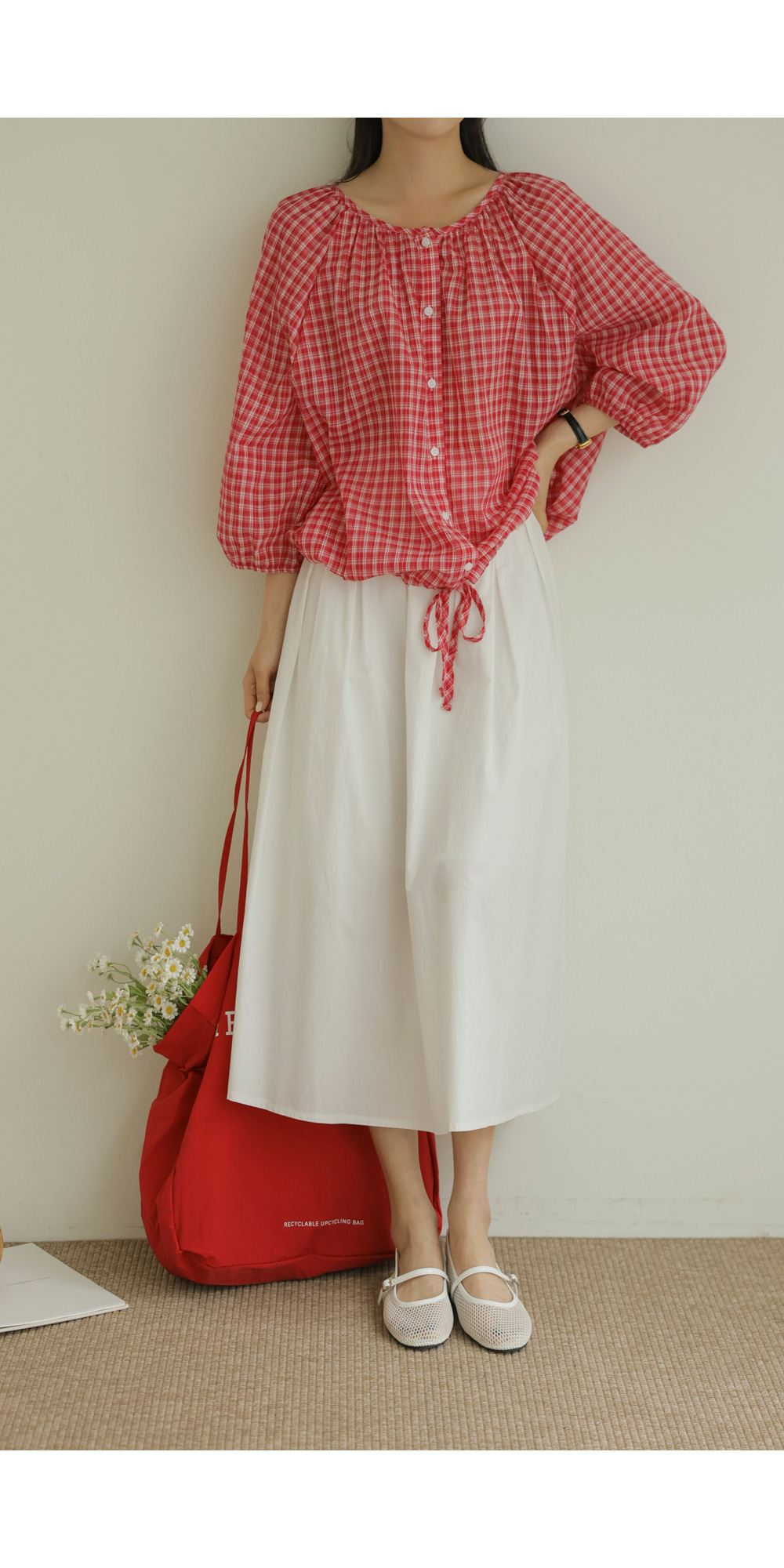 체페론 체크 블라우스 _ 레드