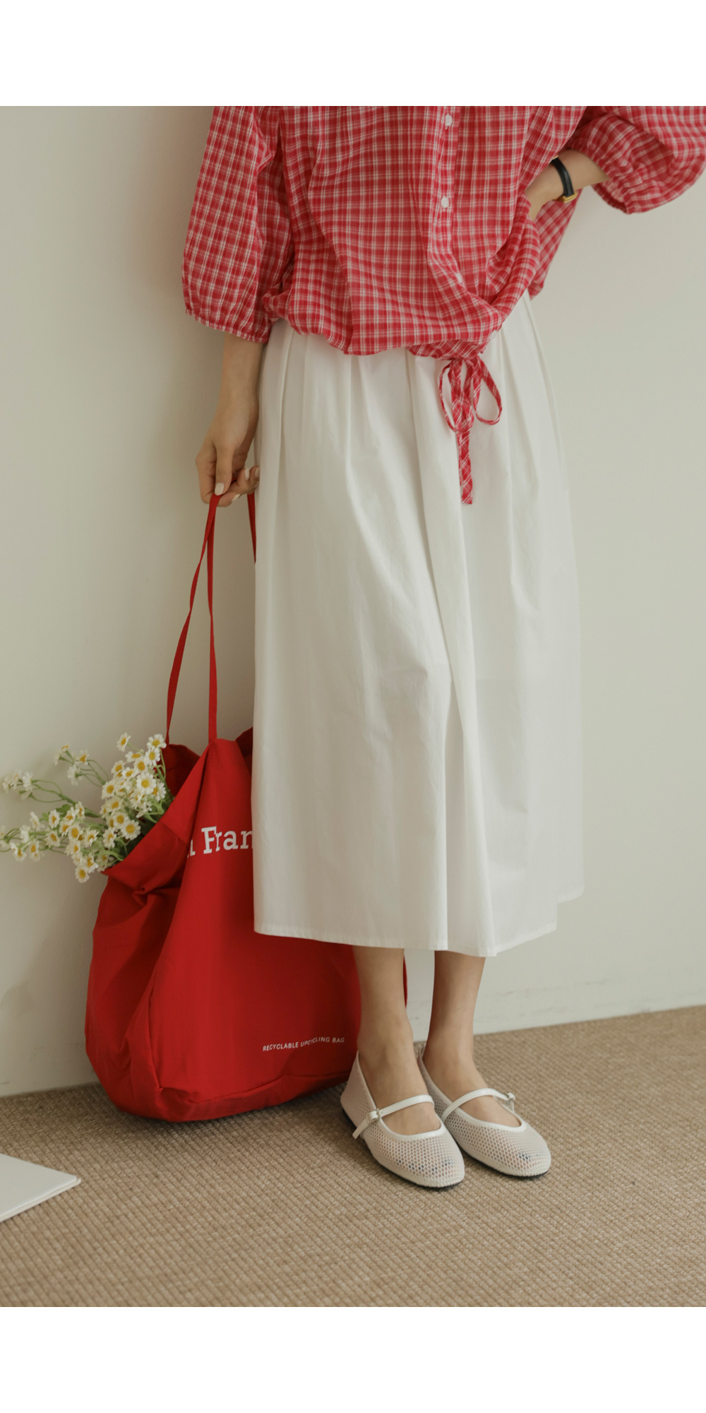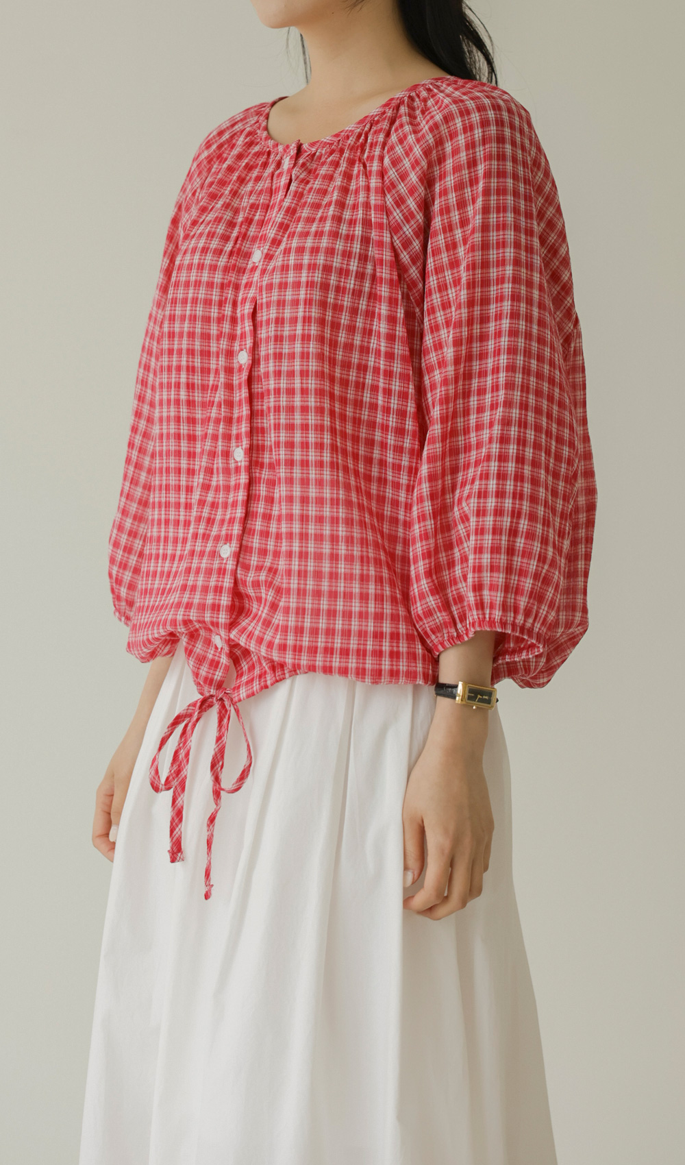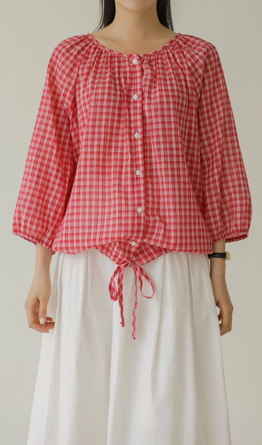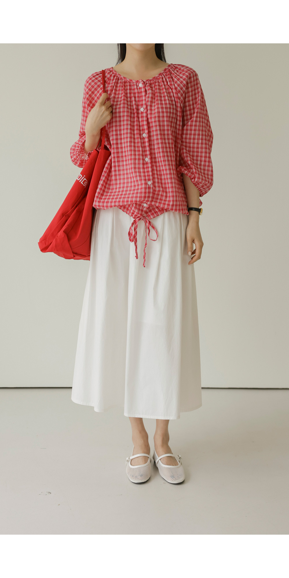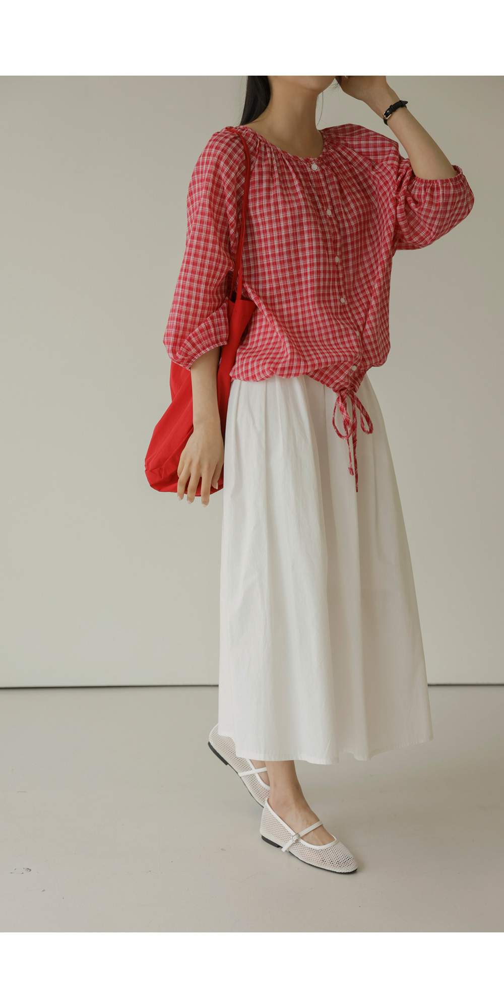체페론 체크 블라우스 _ 레드