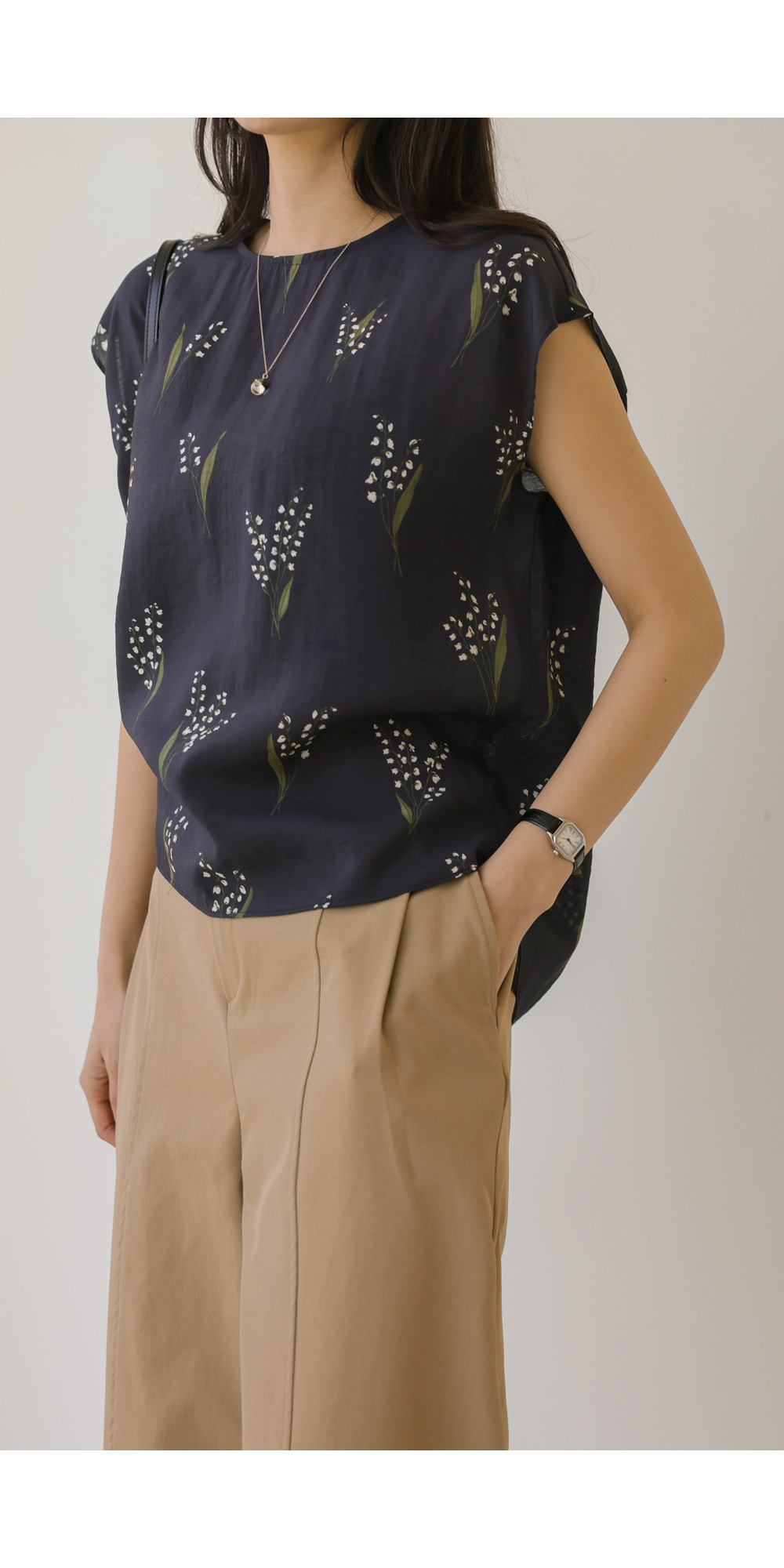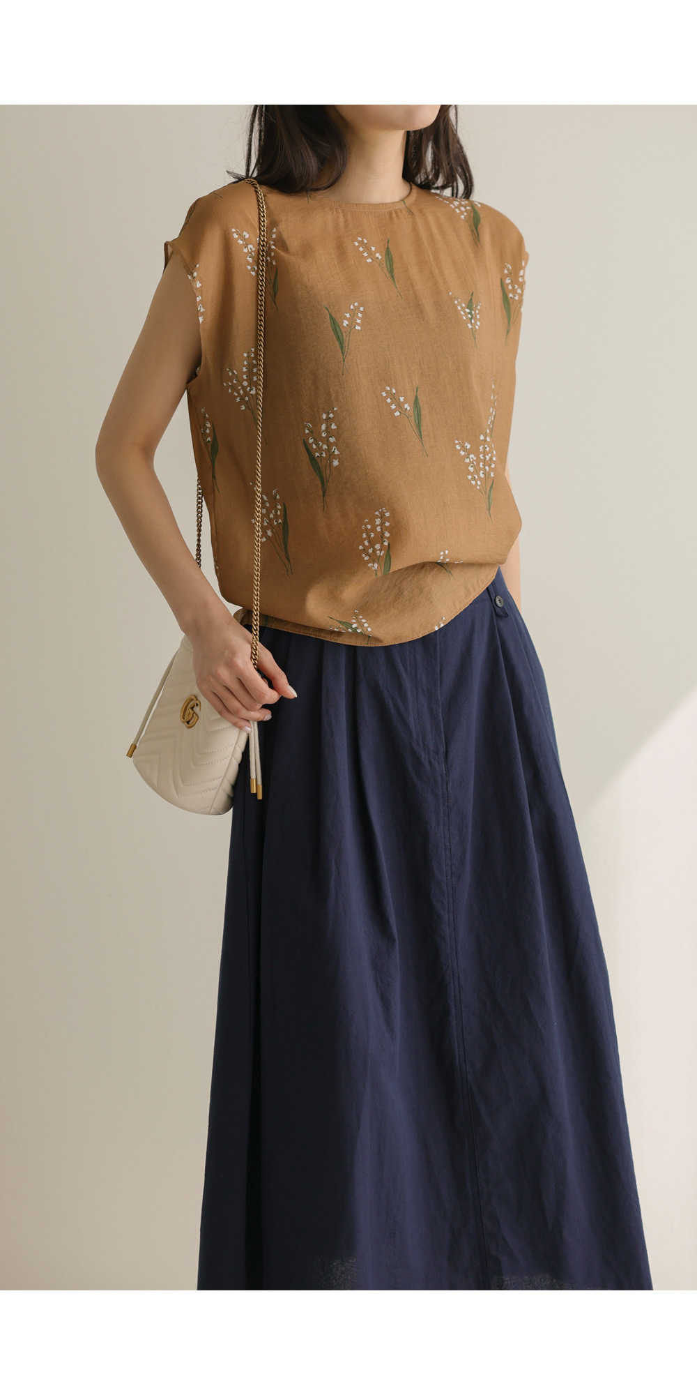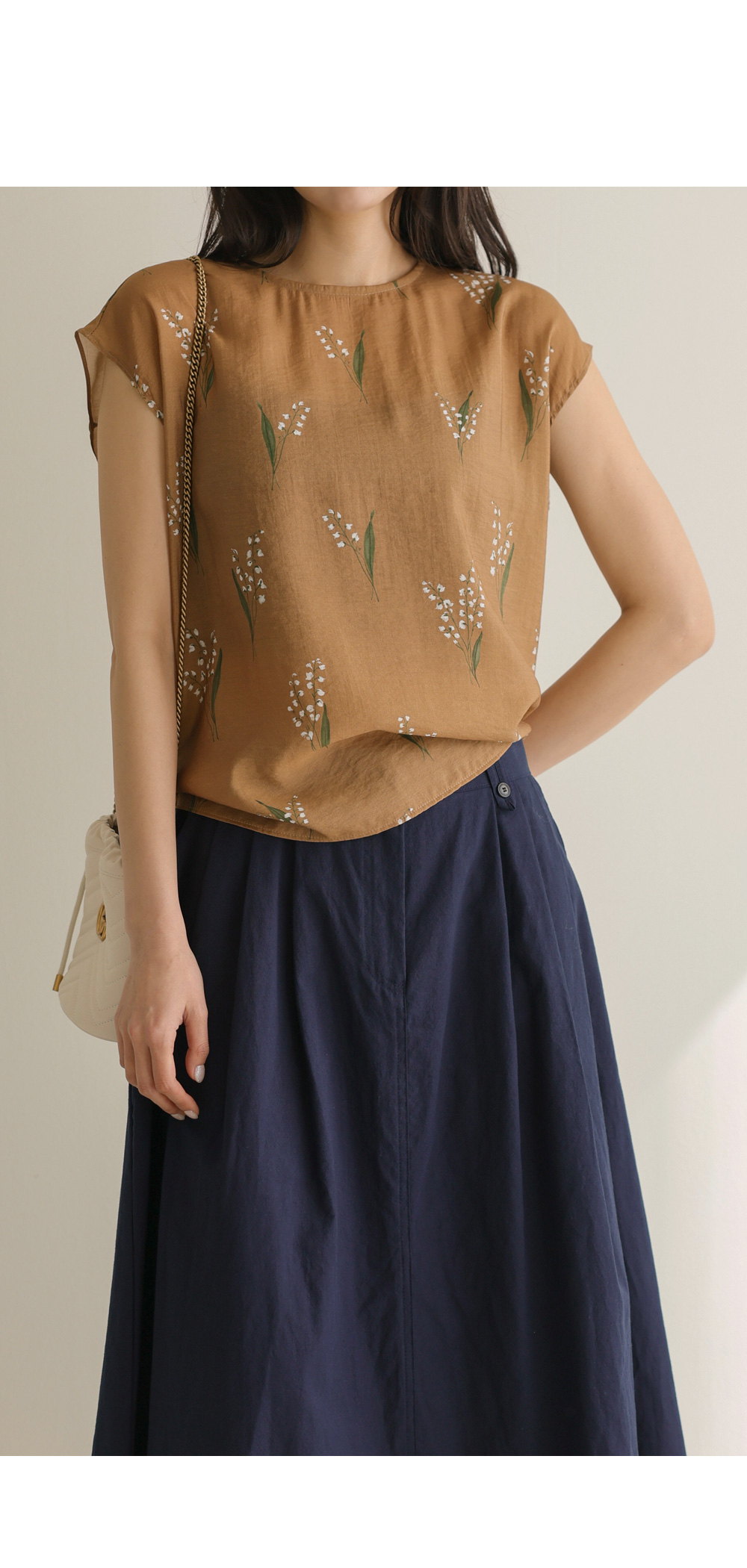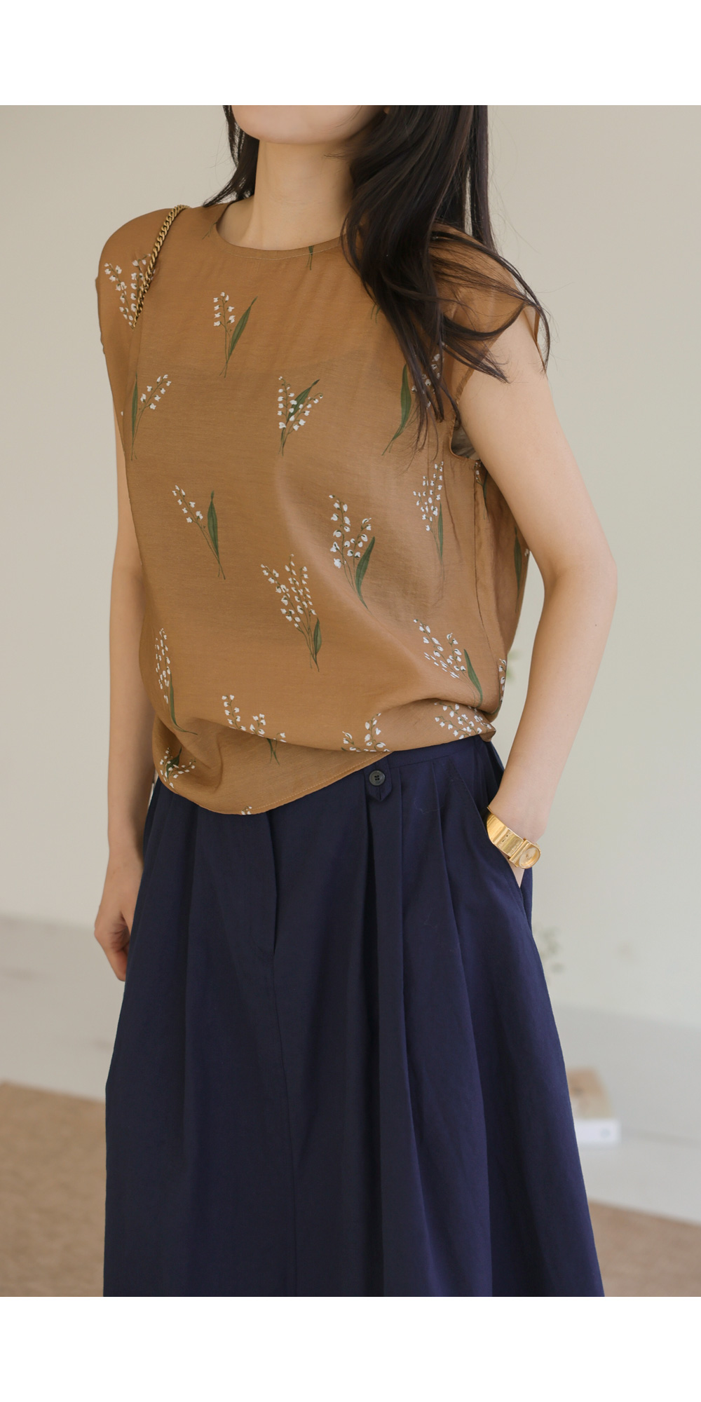 사포나 나시 블라우스 _ 네이비,브라운