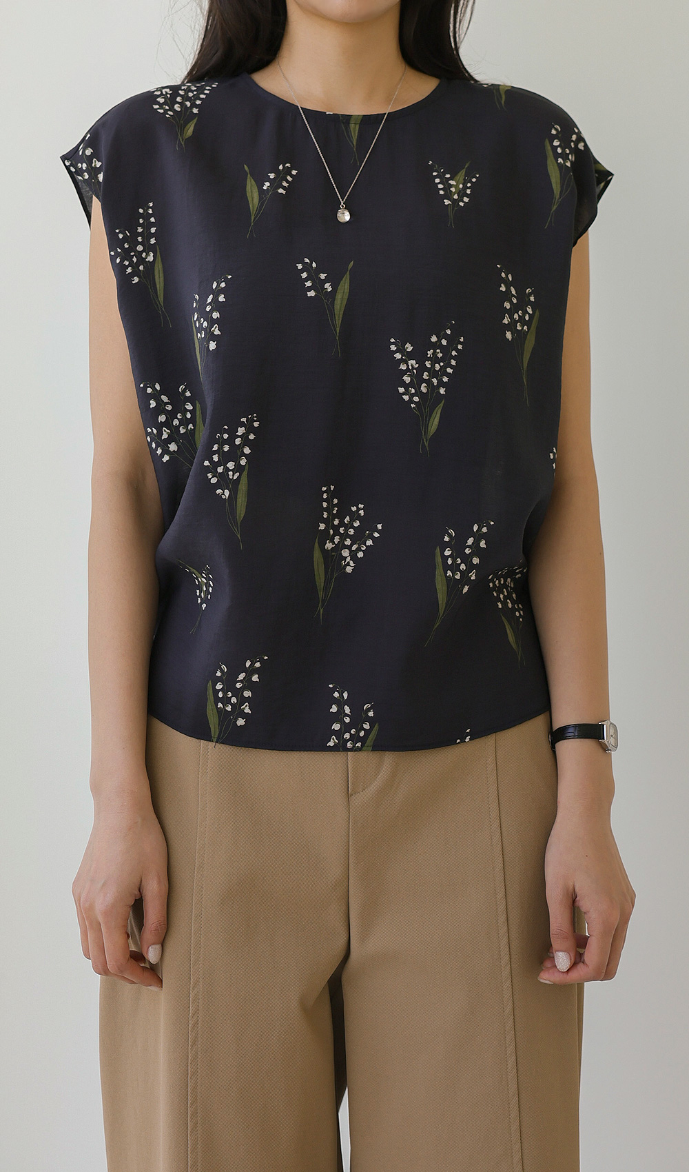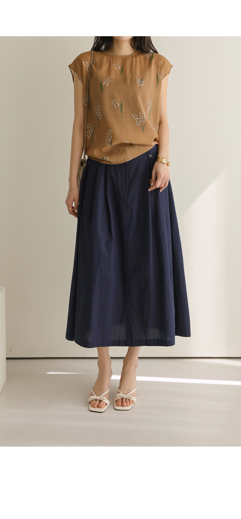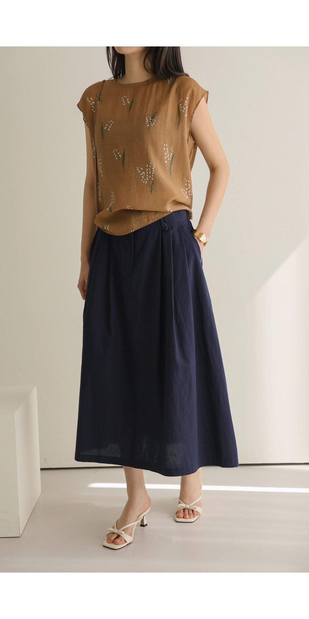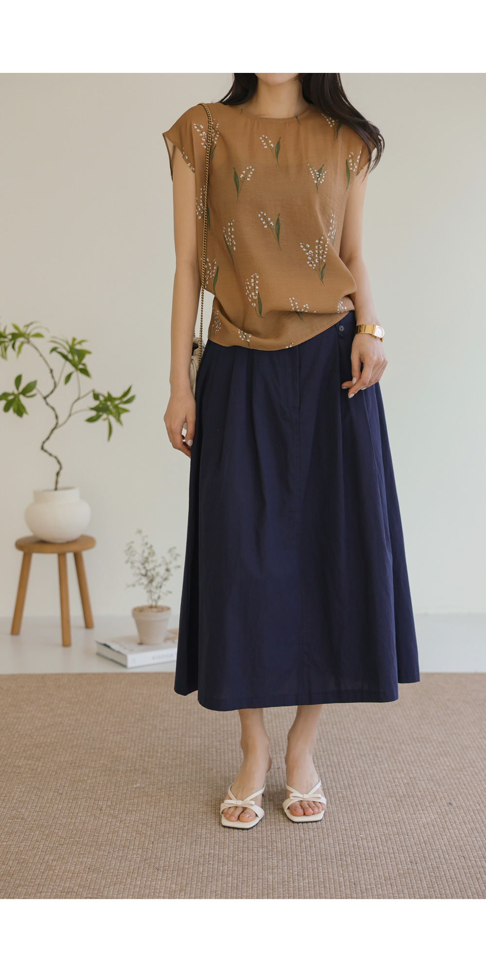 사포나 나시 블라우스 _ 네이비,브라운
