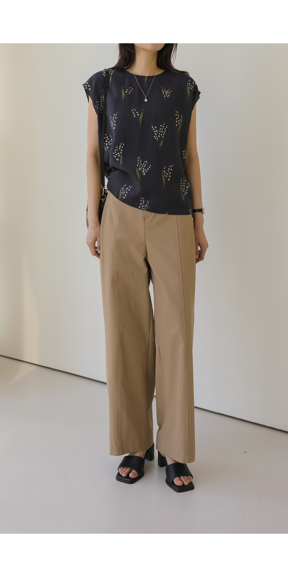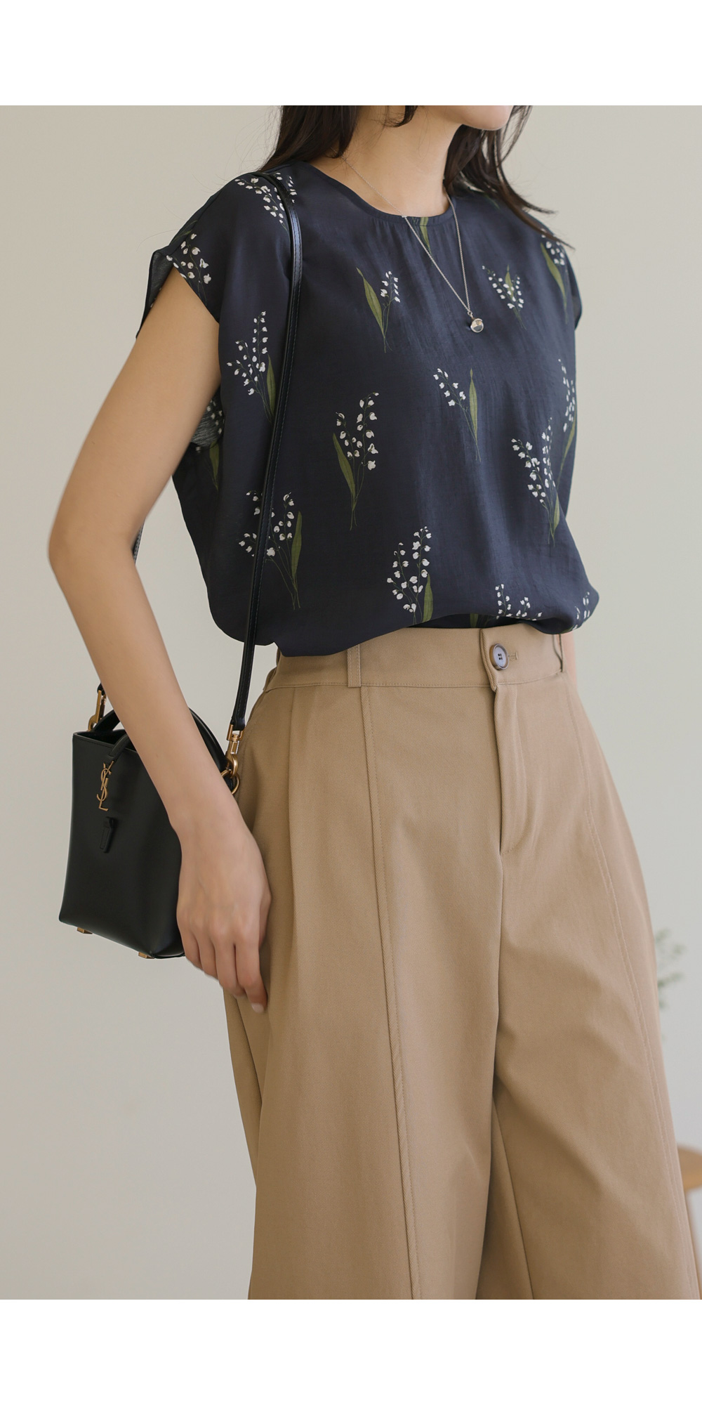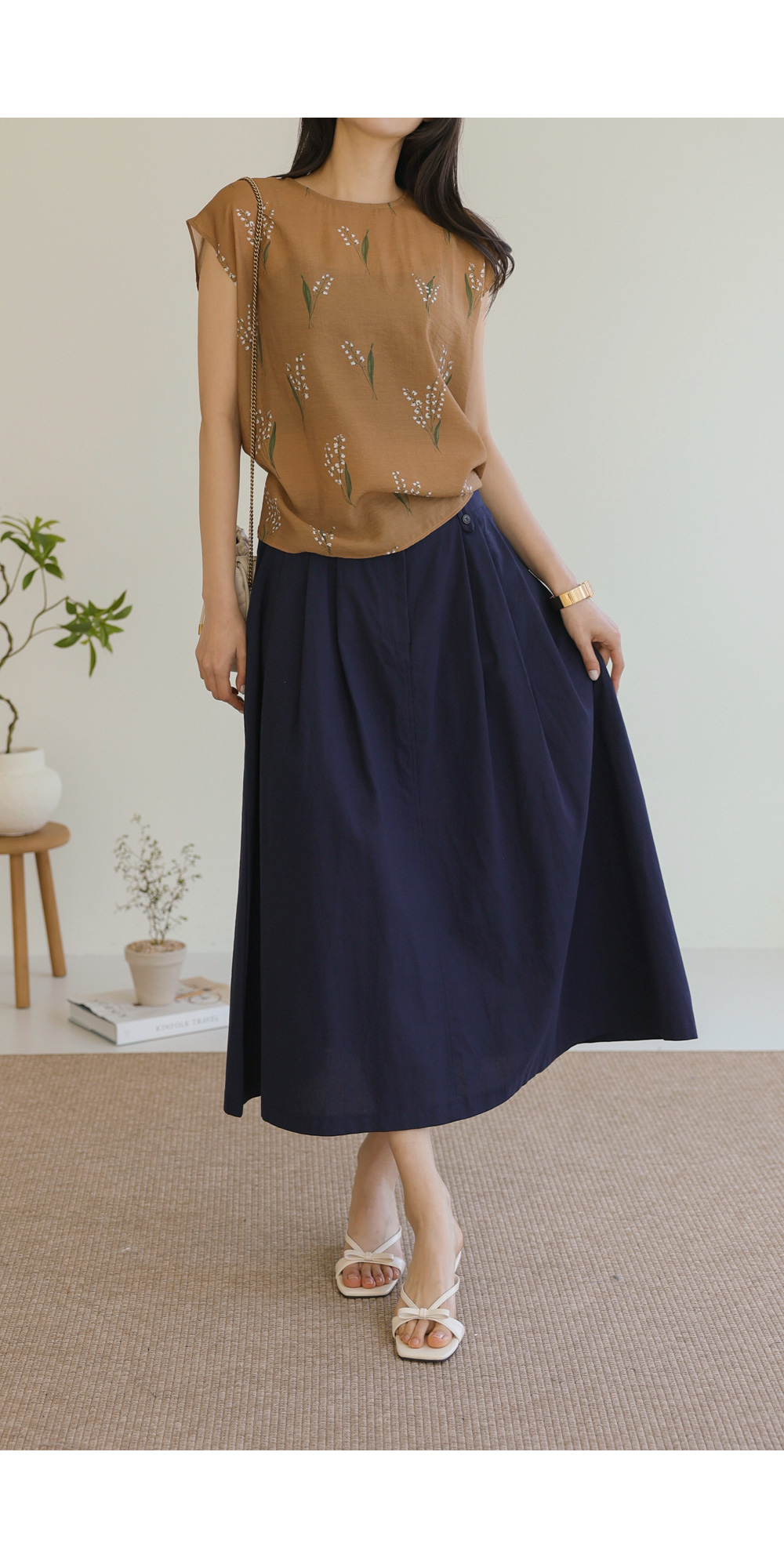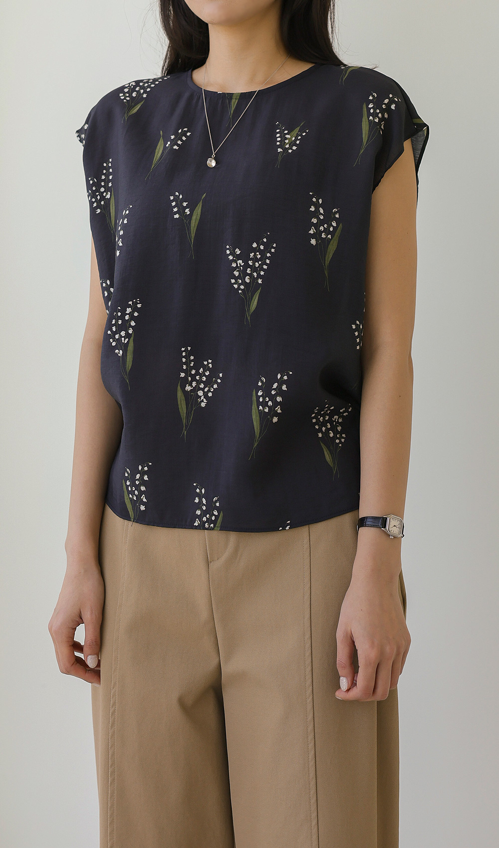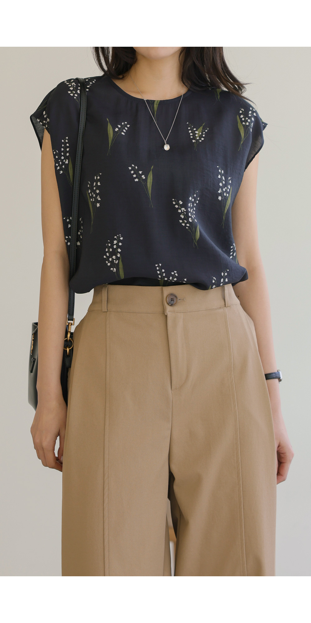 사포나 나시 블라우스 _ 네이비,브라운