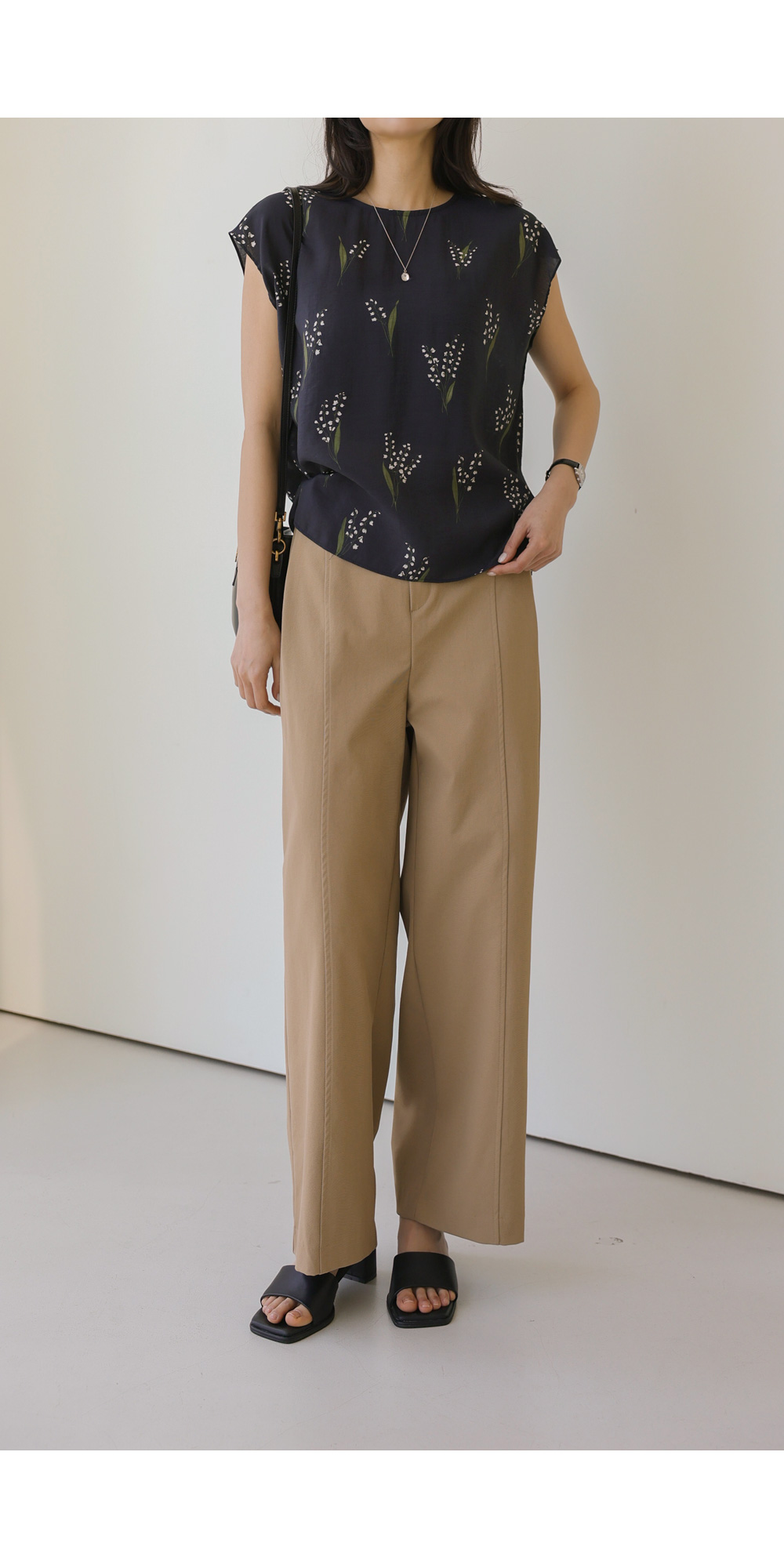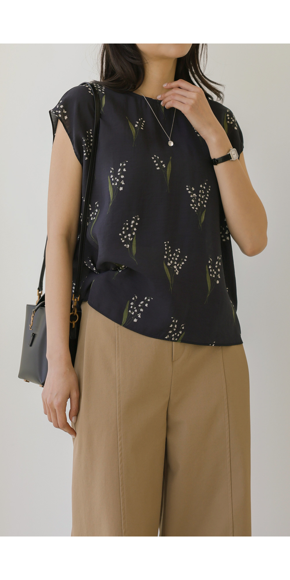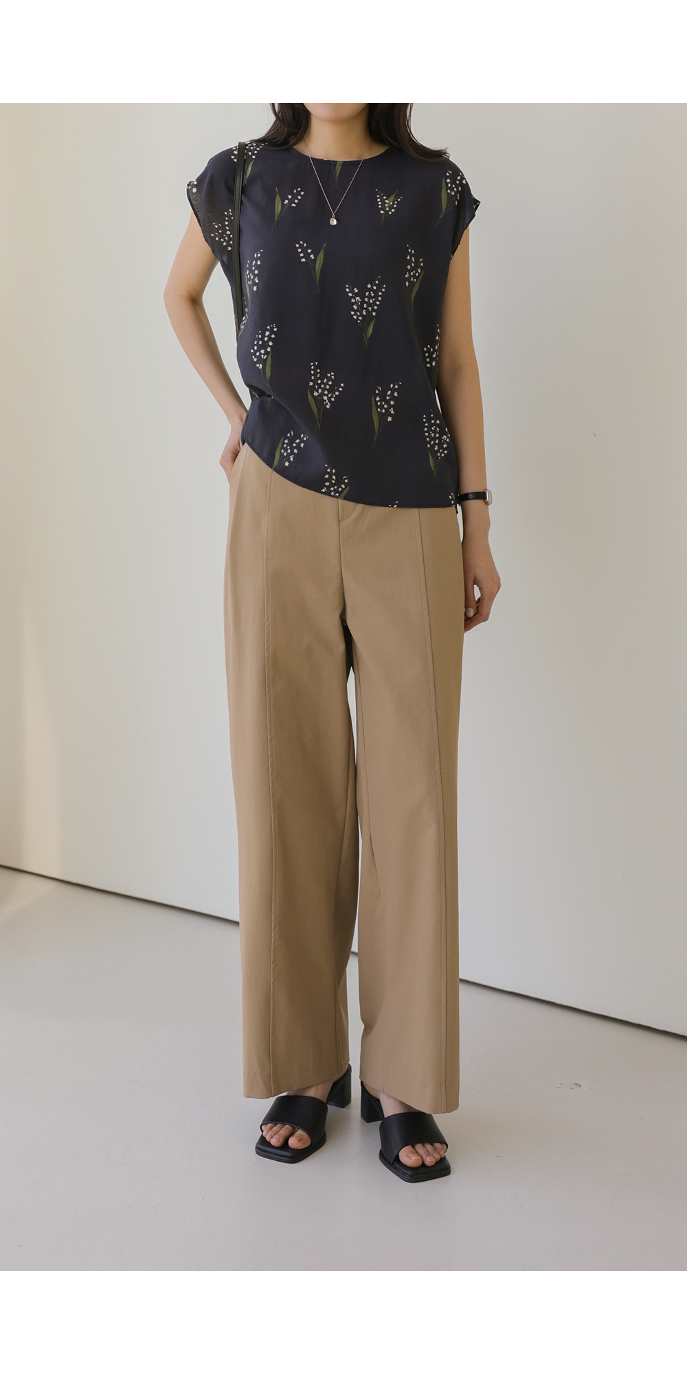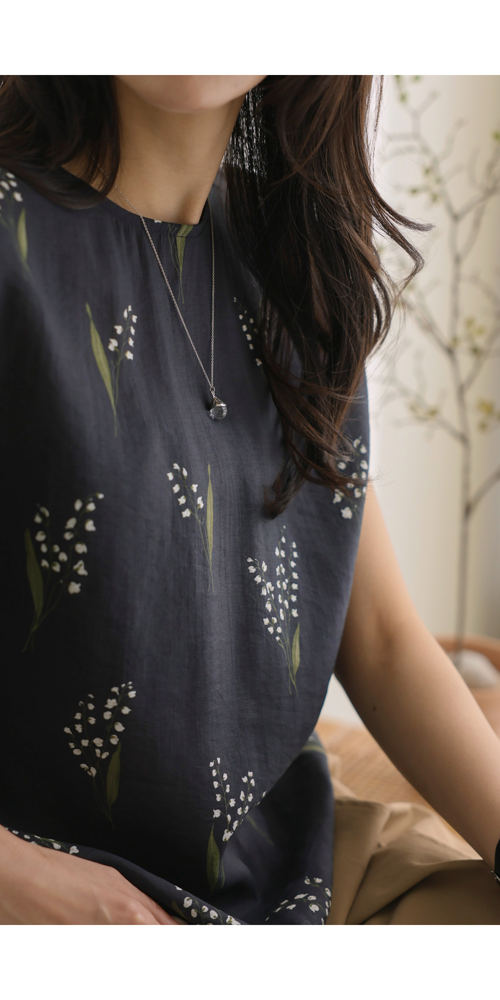 사포나 나시 블라우스 _ 네이비,브라운
