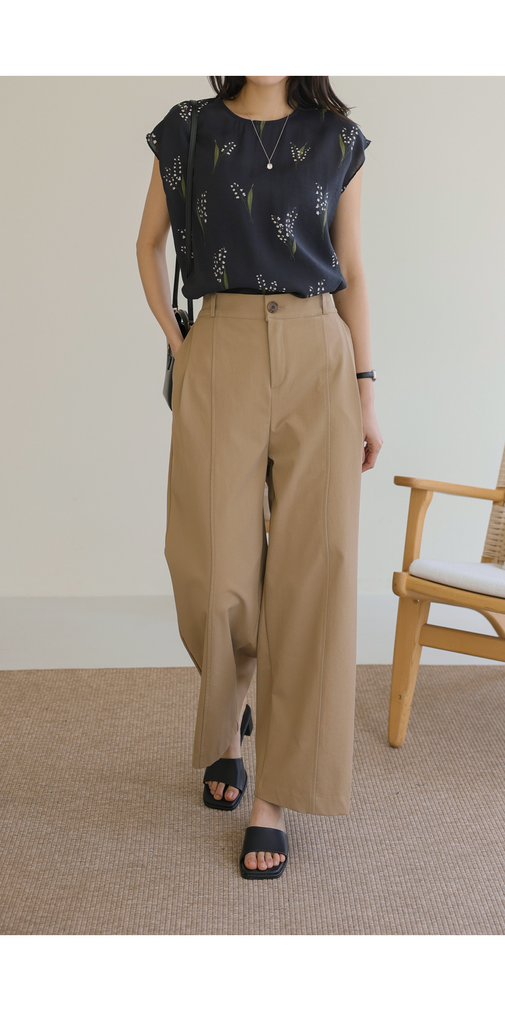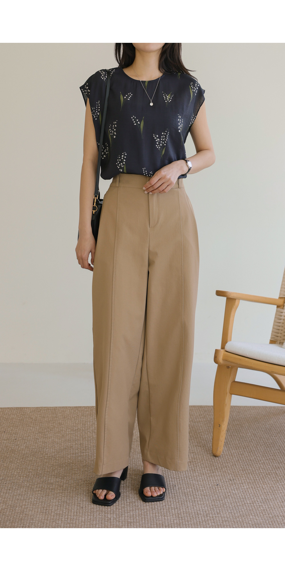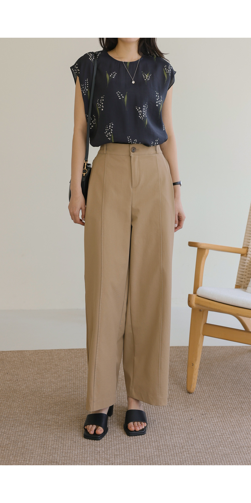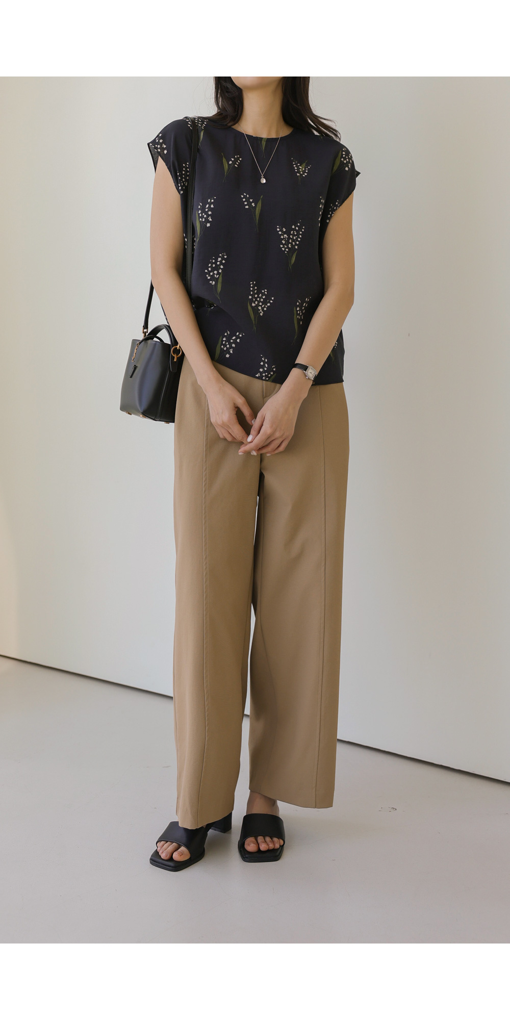 사포나 나시 블라우스 _ 네이비,브라운