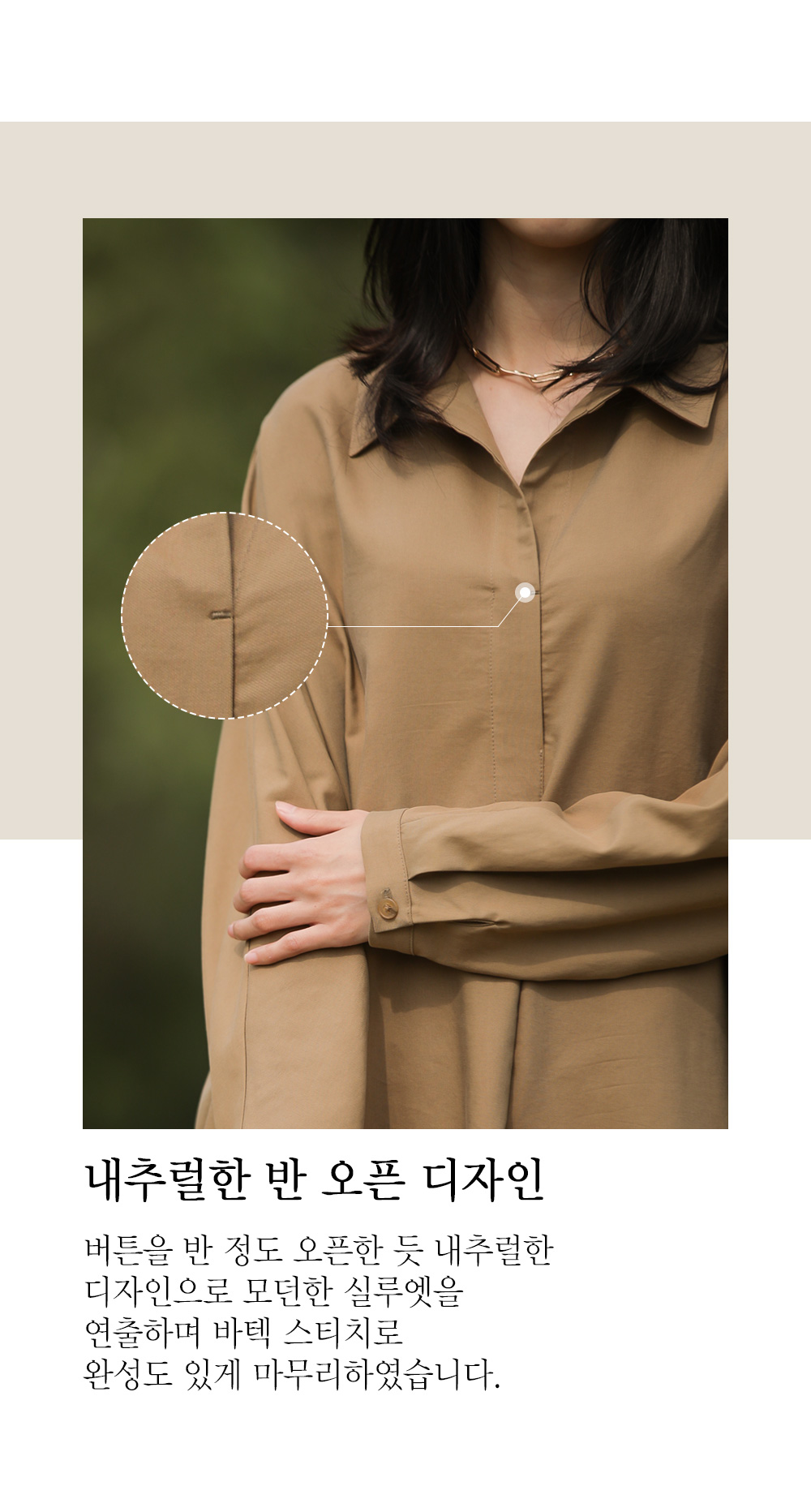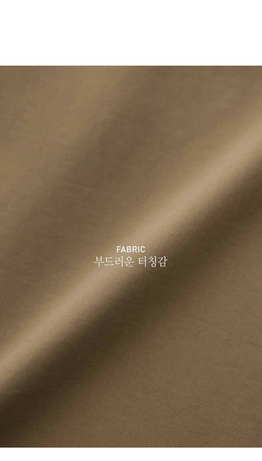 부드러운 터칭감의 텐셀 블랜드 텐셀과 면이 블랜드된 통기성이 좋고 고급스러운 소재로유연하고 부드러운 터칭감을 느낄 수 있습니다.