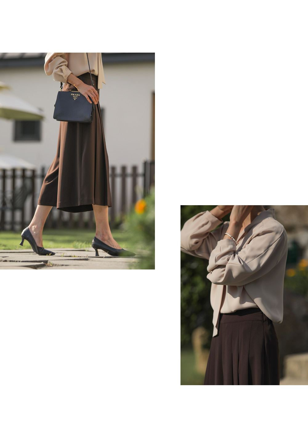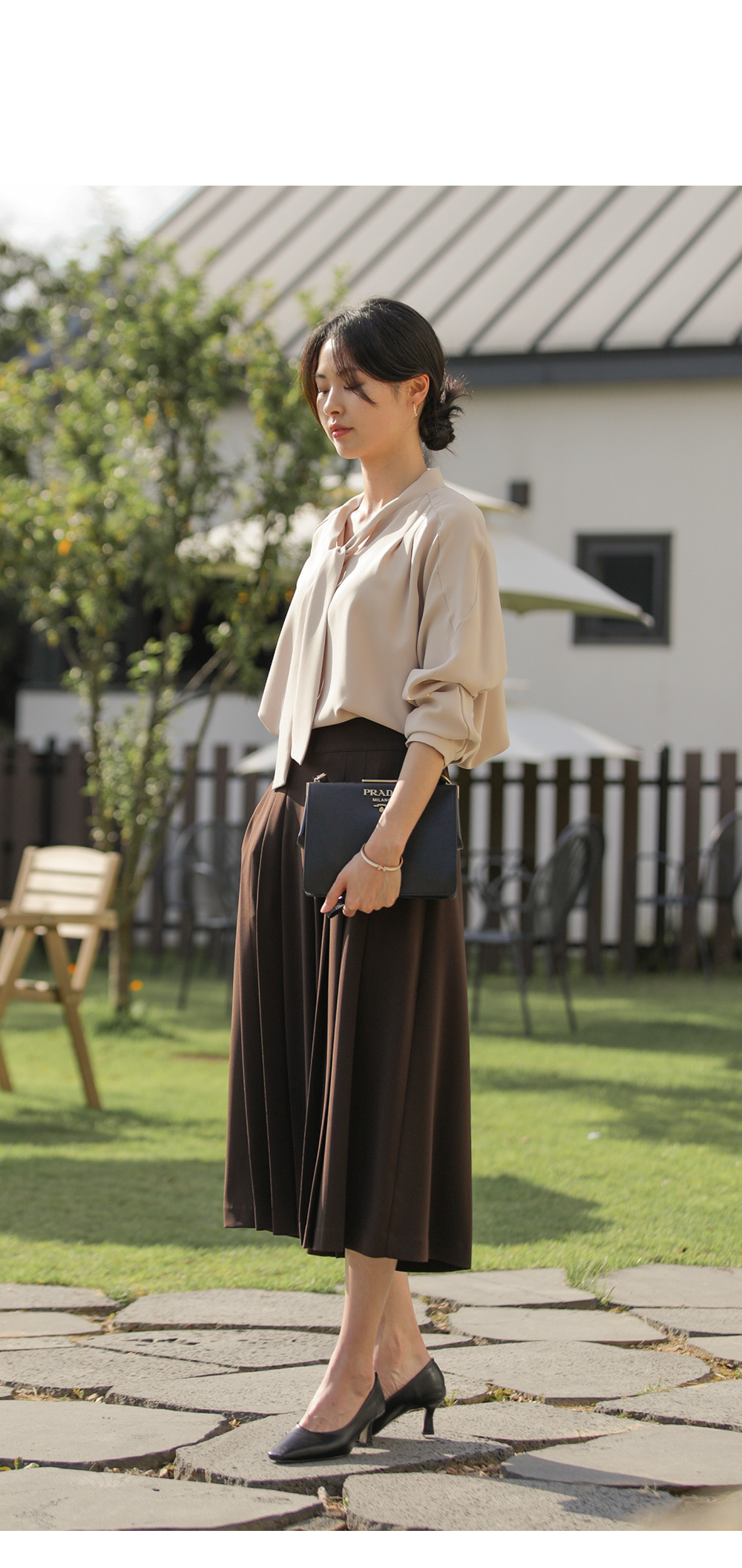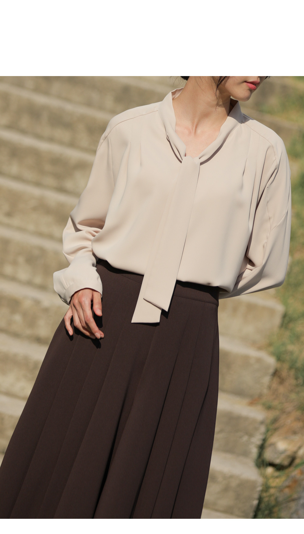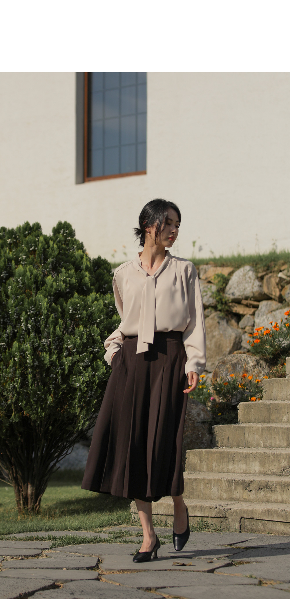 유로크 주름 치마바지 마리앙 플러스에서만 만나볼 수 있는 포멀함과 페미닌한 무드를모두 느낄 수 있는 하이 퀄리티의 치마바지입니다. 스판이 함유된 폴리 소재로 제작되어 답답함이 없이 착용되며 와이드한 핏으로 더욱 편안한 팬츠입니다. 유연한 소재감이 주는 포멀한 무드로 슬랙스인 듯 스커트인 듯 웨어러블한 연출이 가능한 아이템이에요. 플리츠 주름으로 단정하게 정돈된 실루엣으로 체형을 커버하며 로맨틱한 감성까지 더했으며, 부츠와 함께 트랜디한 스타일링이 가능한 길이감으로 섬세하게 디자인되었습니다. 뒷밴딩으로 편안하고 실루엣에 방해가 없도록 제작되었고, 힙 라인의 페이크 립 포켓을 더해 힙업 효과까지 더해드렸습니다. 한 쪽 사이드 지퍼 디테일로 인해 포켓은 한 쪽에 히든으로 더해 균형감을 해치지 않고 실용성을 놓치지 않았습니다. 완성도 높은 스티치 작업으로 마무리하여 옷 태부터 다른 하이 퀄리티 아이템으로 완성했습니다. 정 사이즈로 추천드립니다. 모델정보 키 167cm / 상의 55 / 하의 26(S) / 신발 240mm코디정보 미샬리 타이 블라우스 _ 베이지 유로크 주름 치마바지 _ 브라운