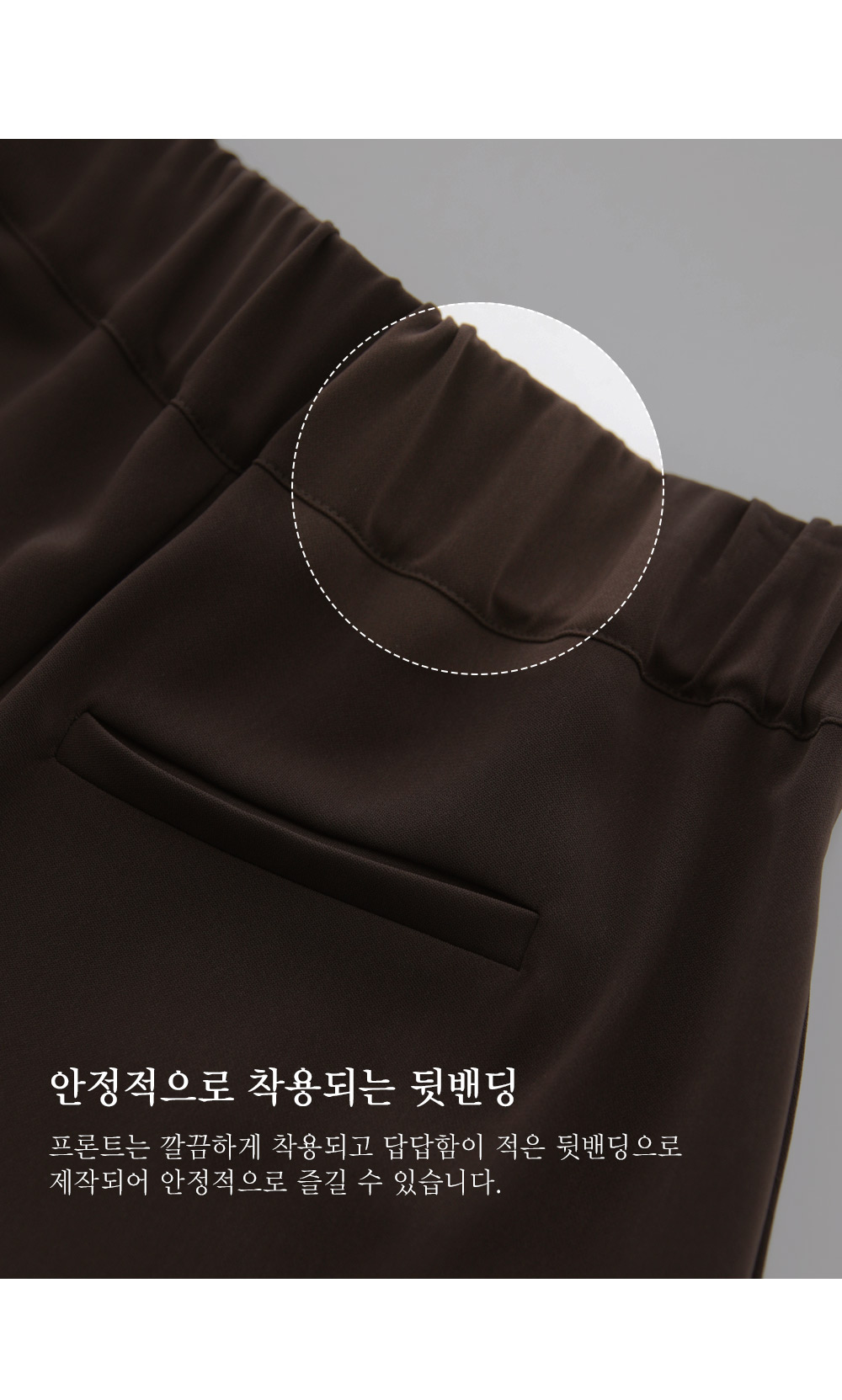 더 없이 편안한 폴리 스판 블랜드 텐션감이 느껴지는 폴리 소재감으로 제작되어 움직임이답답한 느낌이 전혀 없이 편안하게 즐기는 팬츠입니다.