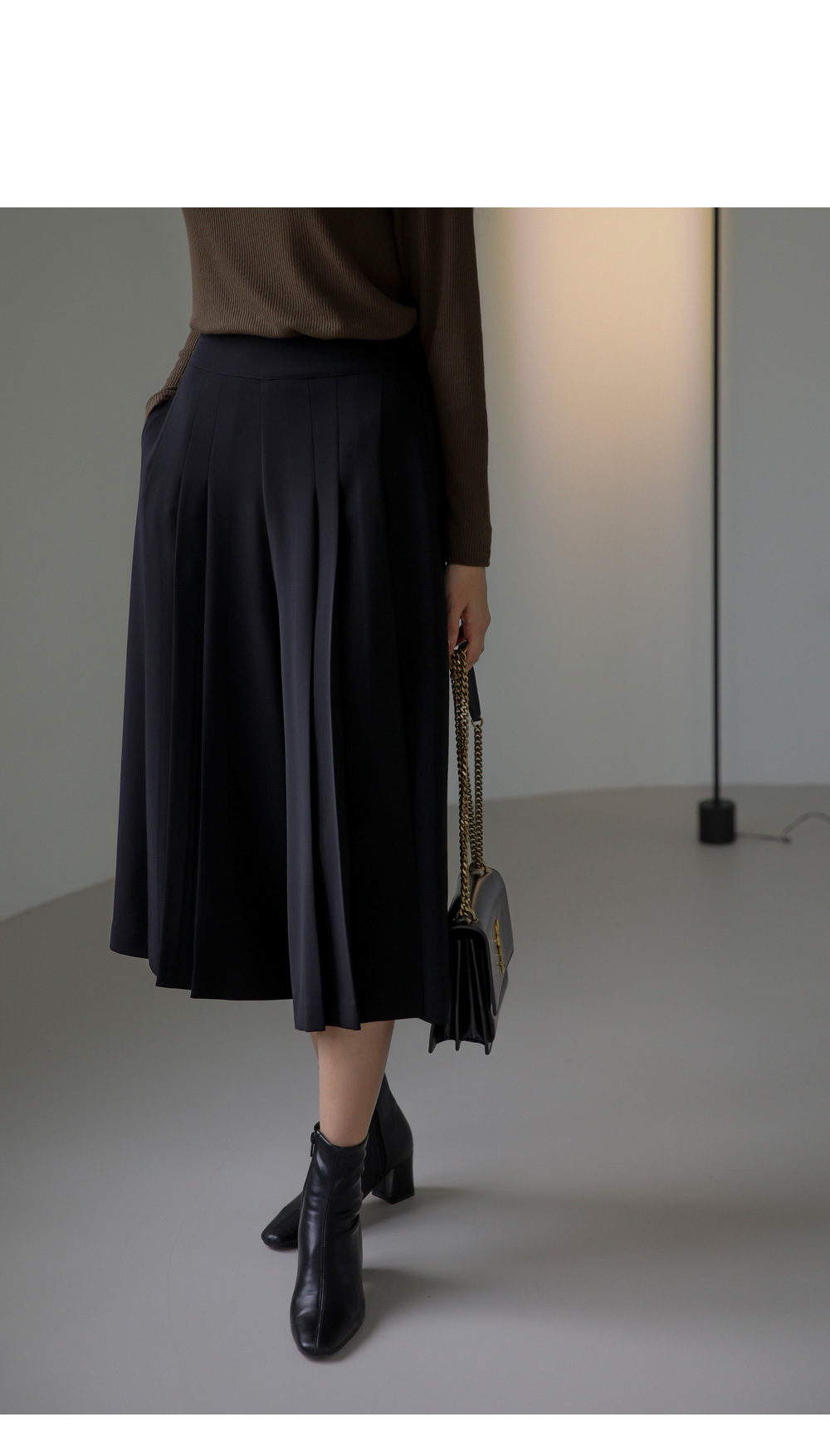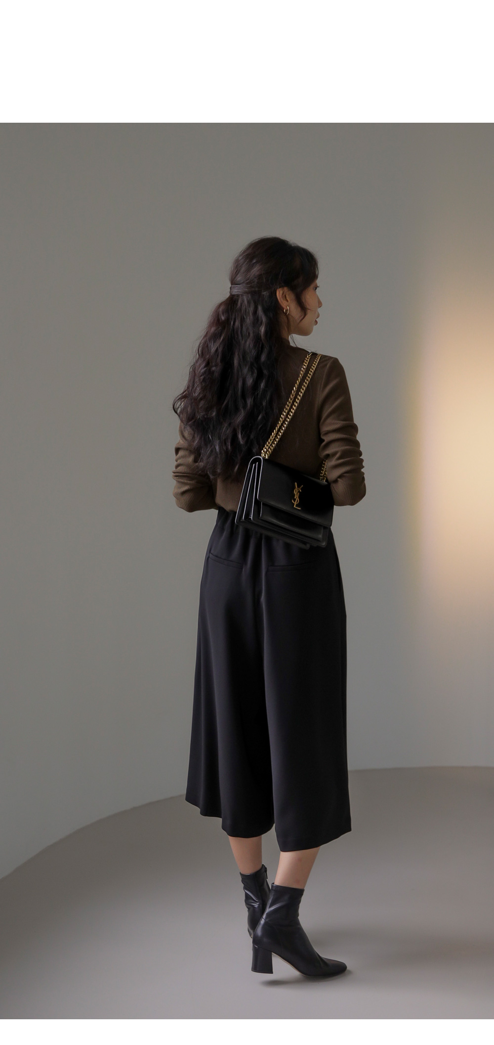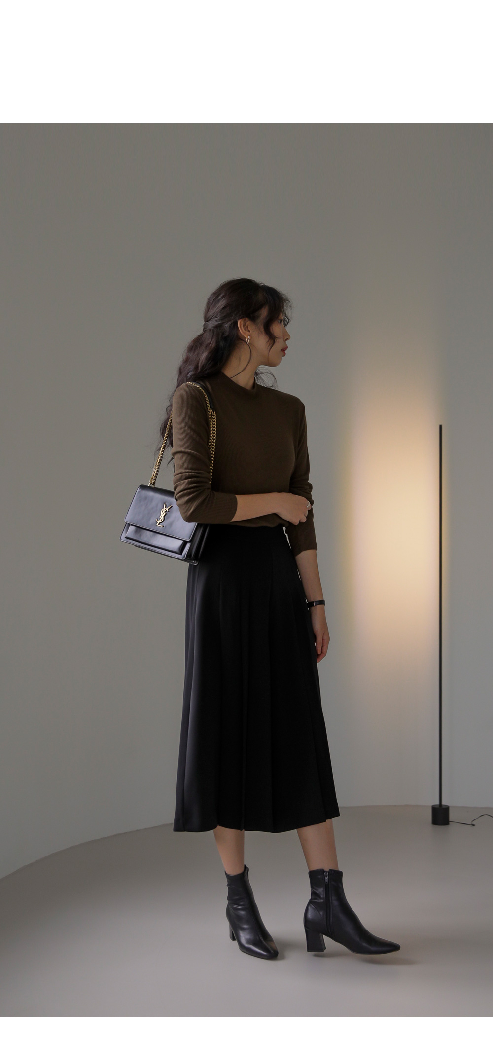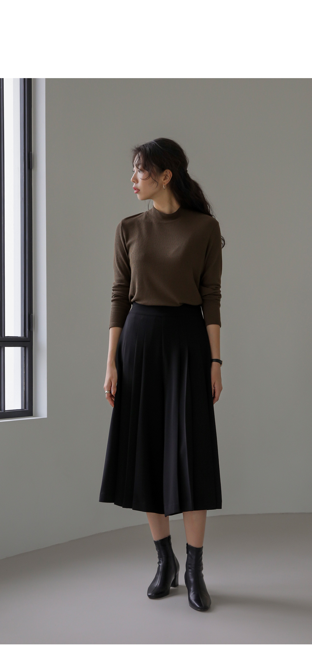 모델정보 키 170cm / 상의 55 / 하의 26(S) / 신발 240mm코디정보 포르크 반목 골지티셔츠 _ 브라운유로크 주름 치마바지 _ 블랙 제리너 트렌치 코트 _ 베이지