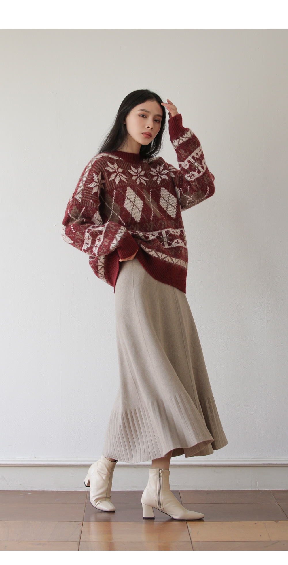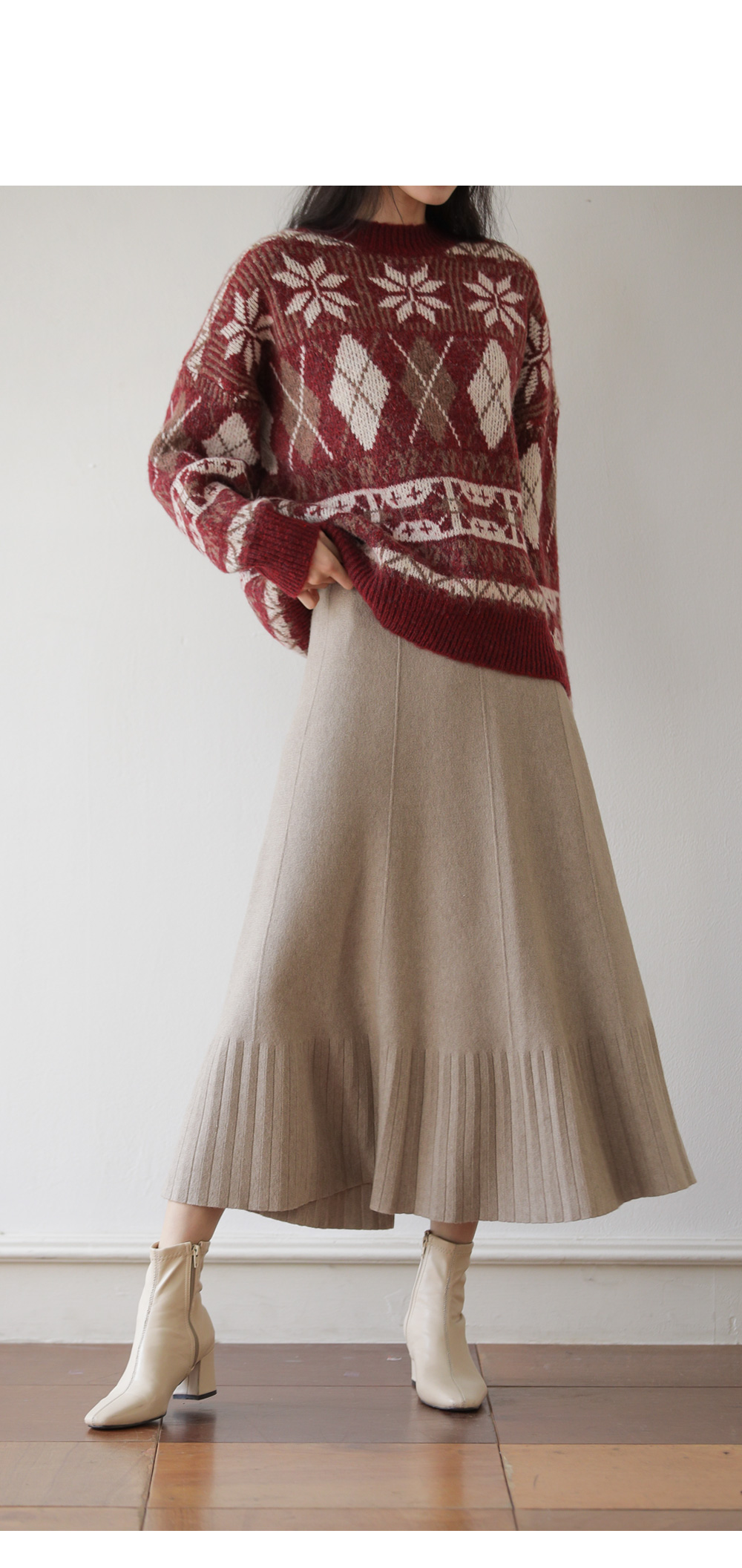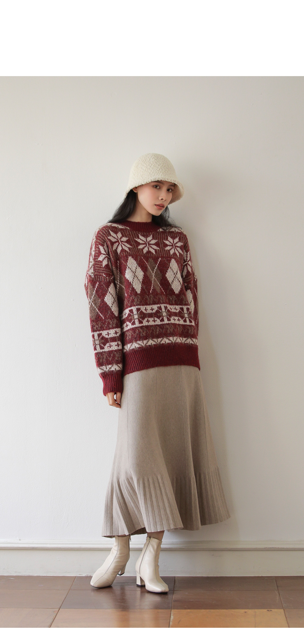 모델정보 키 170cm / 상의 55 / 하의 26(S) / 신발 240mm코디정보 베오드 울니트 _ 와인포리온 니트 스커트 _ 베이지