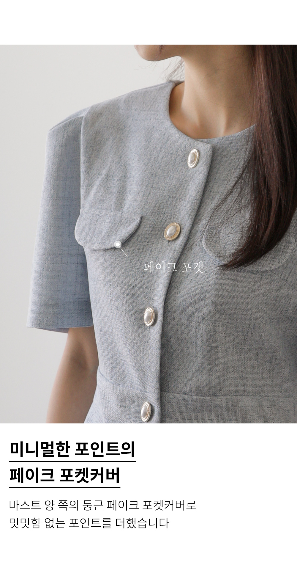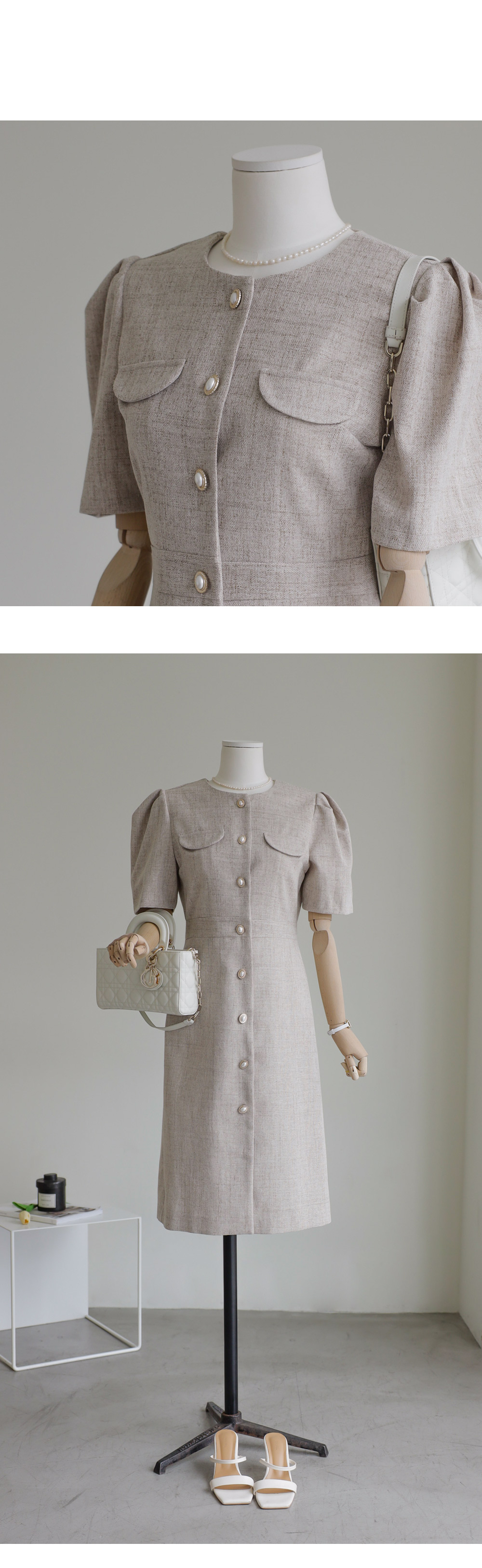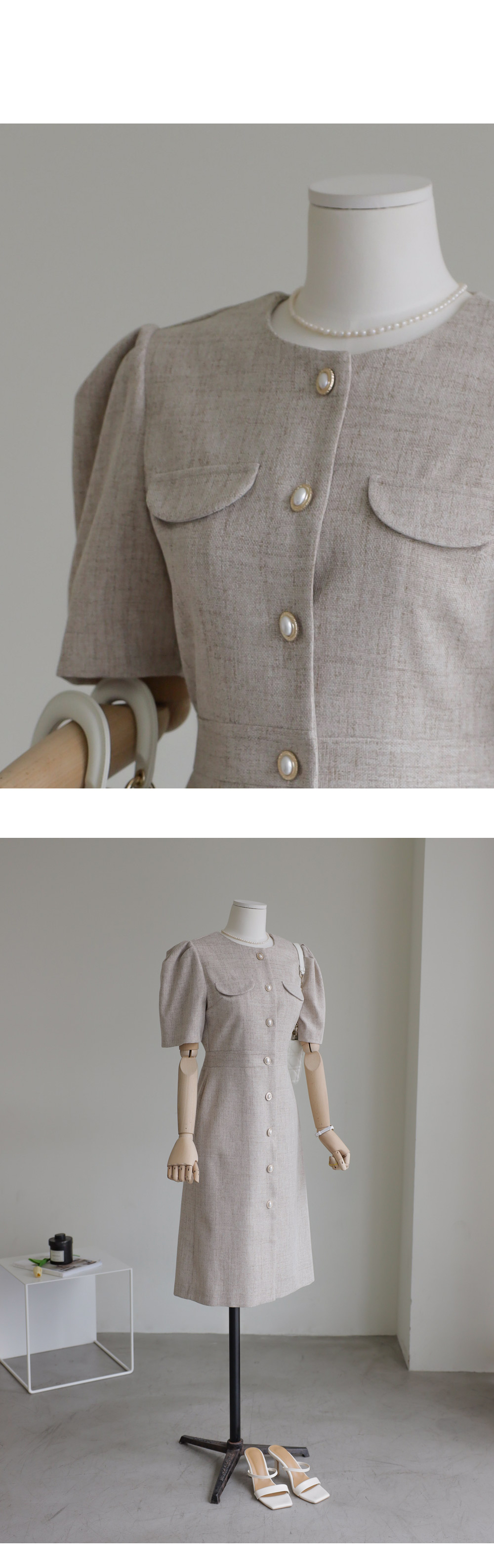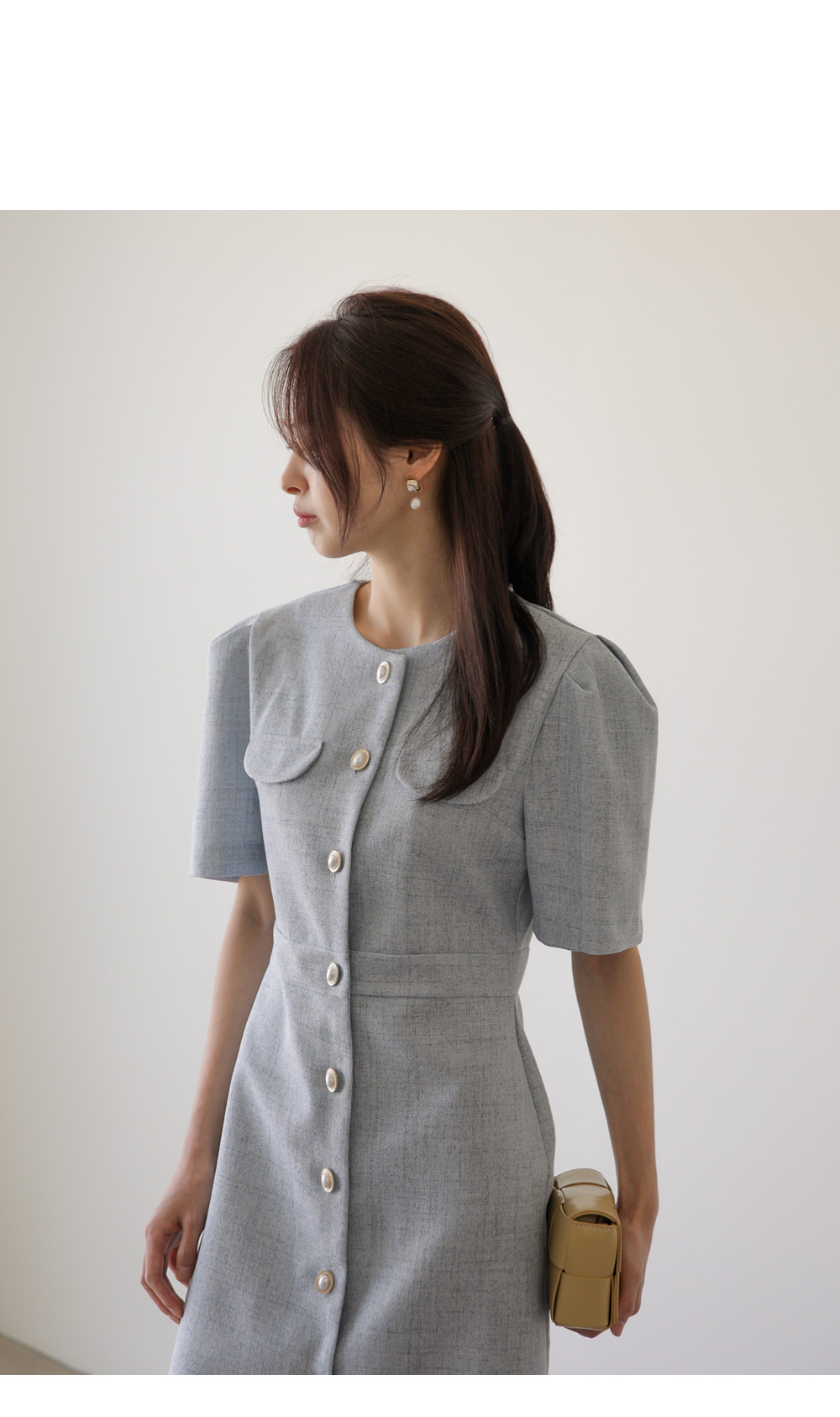 리타인 반팔 원피스 고급스러운 무드의 원피스를 소개할게요내추럴한 컬러감의 실이 여러겹으로 짜여 산뜻하고 경쾌한 무드를 선사해드리구요 단단하게 직조 편직된 소재감에 슬림한 핏감으로 실루엣을 정돈해 세련된 아웃핏을 연출해주었어요 숄더 라인의 핀턱 디테일로 소매를 풍성하게 연출해 팔뚝 군살을 효과적으로 커버해주었구요 뒷면의 히든 지퍼로 간편한 탈,착의가 가능하답니다 허리의 단작 디테일로 고급스럽고 깔끔하게 마무리되며 슬림해보이고 여성스러운 실루엣을 연출하구요 살짝 위로 디자인되어 다리가 길어보이는 효과까지 더했답니다 바스트의 페이크 포켓으로 미니멀한 포인트를 더하고 골드가 더해진 진주 버튼으로 엔틱하고 고급스러운 무드를 연출해주었어요 감각적이고 세련된 디테일이 가득한 아이템으로 하나만으로도 멋스러운 스타일링을 완성할 수 있구요 하객룩, 오피스룩 등 격식있는 자리에서 즐기시길 추천드려요 정 사이즈로 제작되었습니다