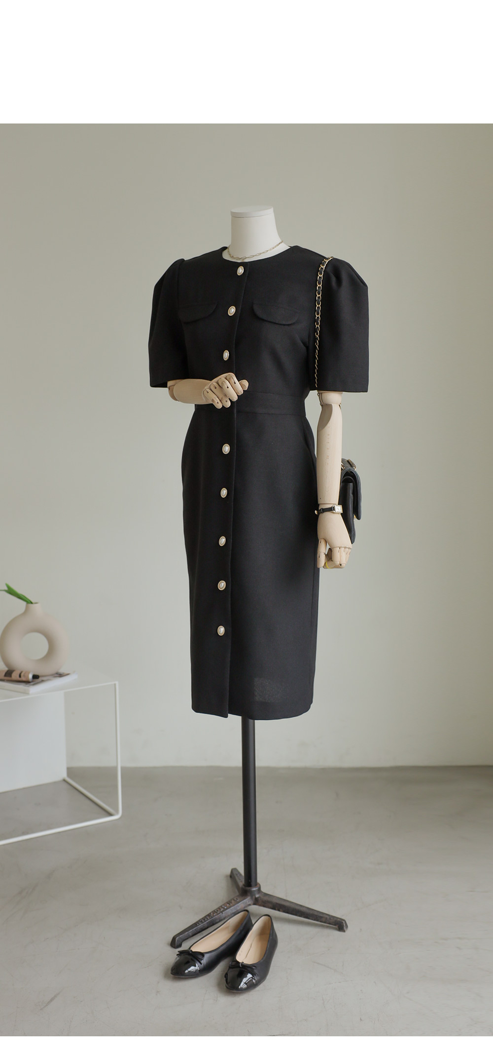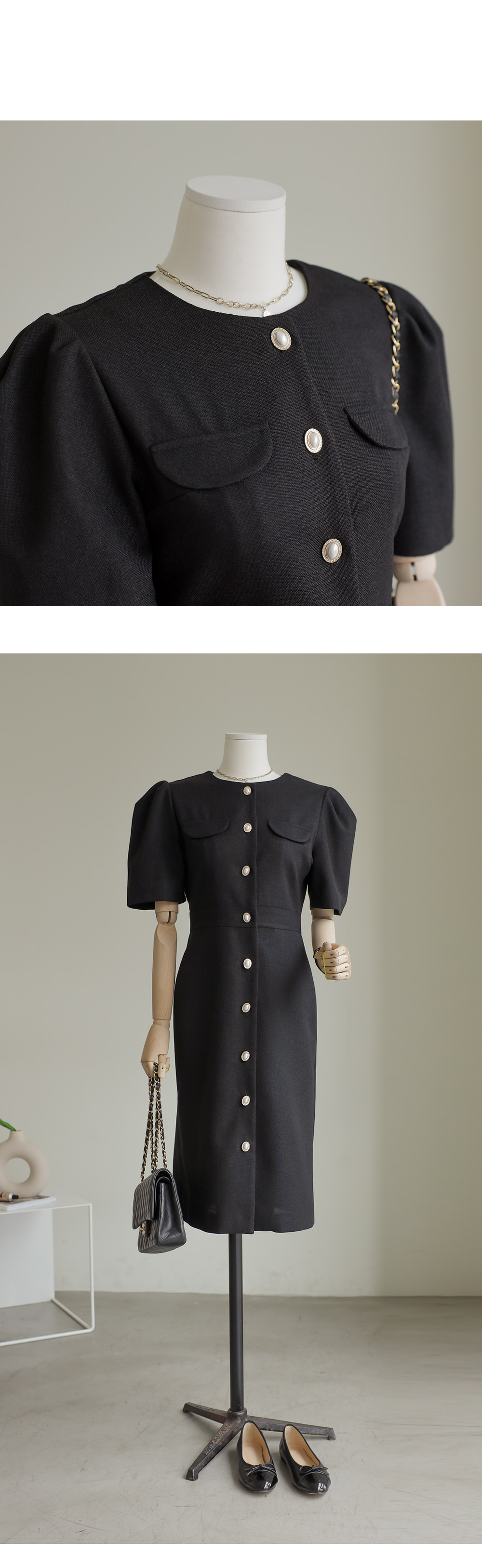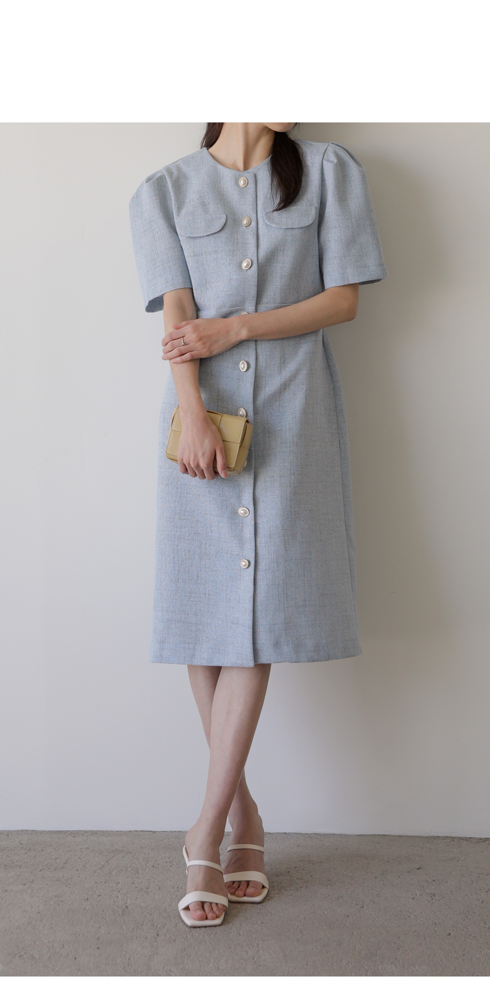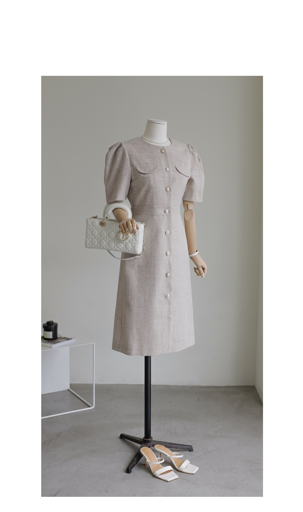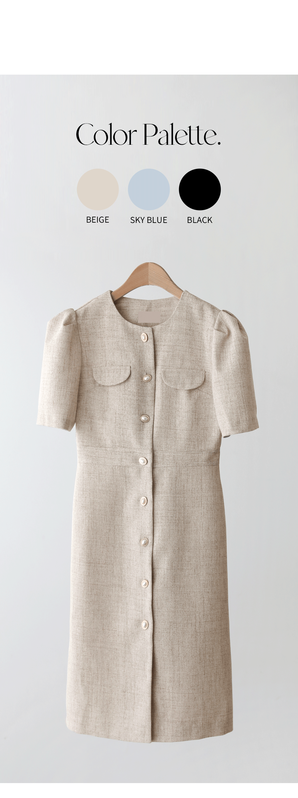 리타인 반팔 원피스 고급스러운 무드의 원피스를 소개할게요내추럴한 컬러감의 실이 여러겹으로 짜여 산뜻하고 경쾌한 무드를 선사해드리구요 단단하게 직조 편직된 소재감에 슬림한 핏감으로 실루엣을 정돈해 세련된 아웃핏을 연출해주었어요 숄더 라인의 핀턱 디테일로 소매를 풍성하게 연출해 팔뚝 군살을 효과적으로 커버해주었구요 뒷면의 히든 지퍼로 간편한 탈,착의가 가능하답니다 허리의 단작 디테일로 고급스럽고 깔끔하게 마무리되며 슬림해보이고 여성스러운 실루엣을 연출하구요 살짝 위로 디자인되어 다리가 길어보이는 효과까지 더했답니다 바스트의 페이크 포켓으로 미니멀한 포인트를 더하고 골드가 더해진 진주 버튼으로 엔틱하고 고급스러운 무드를 연출해주었어요 감각적이고 세련된 디테일이 가득한 아이템으로 하나만으로도 멋스러운 스타일링을 완성할 수 있구요 하객룩, 오피스룩 등 격식있는 자리에서 즐기시길 추천드려요 정 사이즈로 제작되었습니다