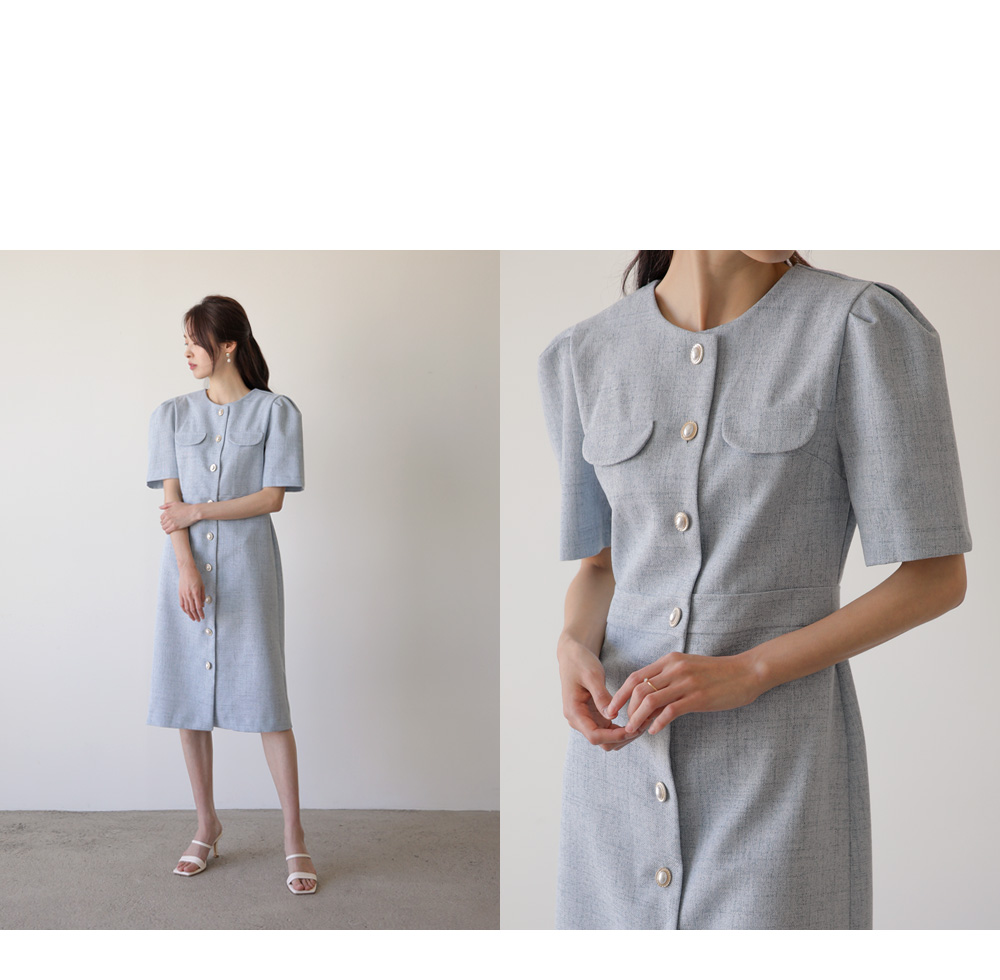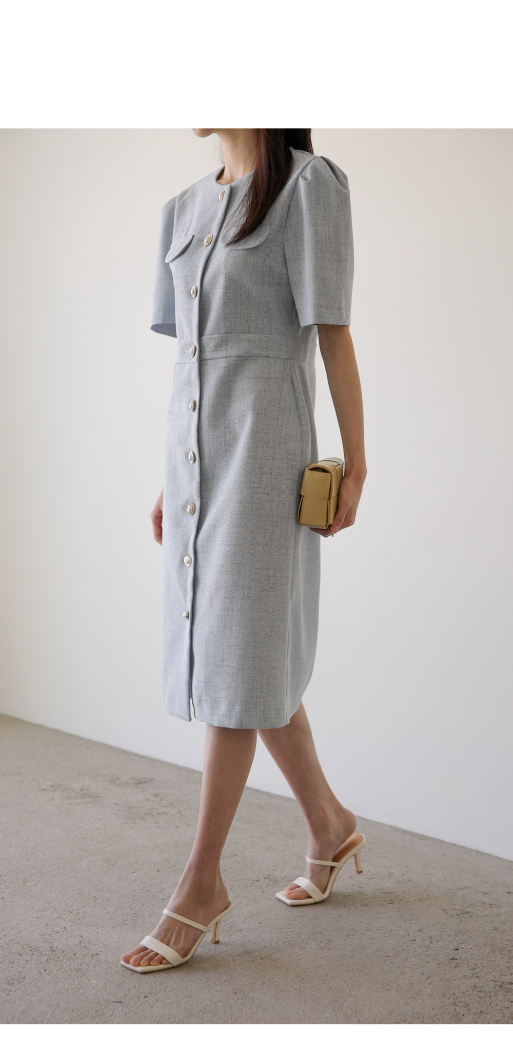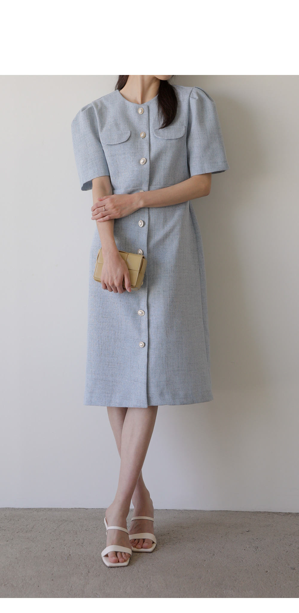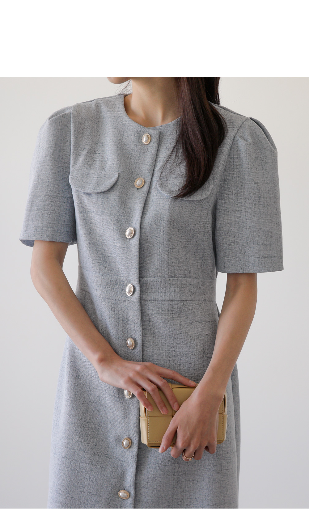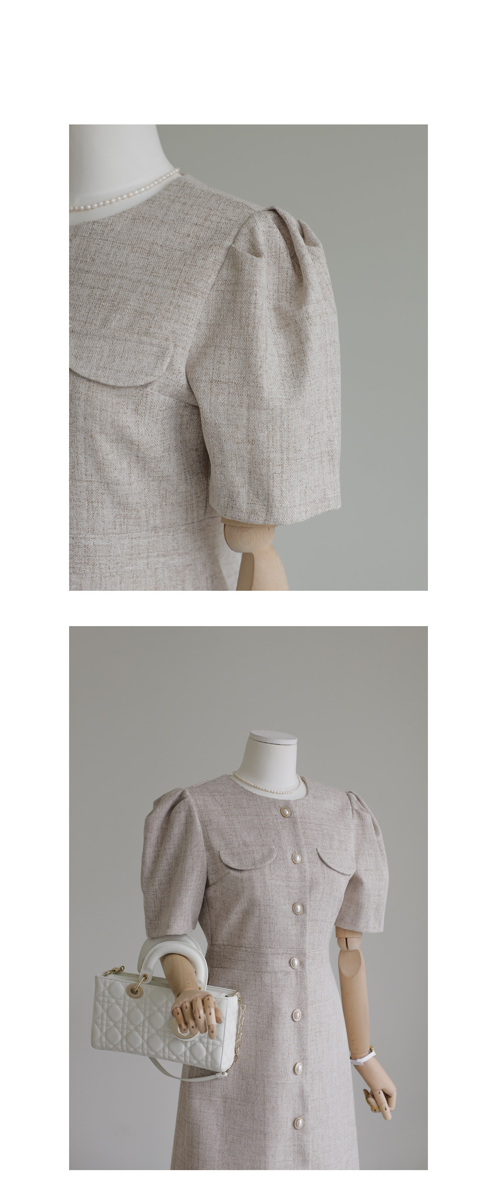 리타인 반팔 원피스 고급스러운 무드의 원피스를 소개할게요내추럴한 컬러감의 실이 여러겹으로 짜여 산뜻하고 경쾌한 무드를 선사해드리구요 단단하게 직조 편직된 소재감에 슬림한 핏감으로 실루엣을 정돈해 세련된 아웃핏을 연출해주었어요 숄더 라인의 핀턱 디테일로 소매를 풍성하게 연출해 팔뚝 군살을 효과적으로 커버해주었구요 뒷면의 히든 지퍼로 간편한 탈,착의가 가능하답니다 허리의 단작 디테일로 고급스럽고 깔끔하게 마무리되며 슬림해보이고 여성스러운 실루엣을 연출하구요 살짝 위로 디자인되어 다리가 길어보이는 효과까지 더했답니다 바스트의 페이크 포켓으로 미니멀한 포인트를 더하고 골드가 더해진 진주 버튼으로 엔틱하고 고급스러운 무드를 연출해주었어요 감각적이고 세련된 디테일이 가득한 아이템으로 하나만으로도 멋스러운 스타일링을 완성할 수 있구요 하객룩, 오피스룩 등 격식있는 자리에서 즐기시길 추천드려요 정 사이즈로 제작되었습니다
