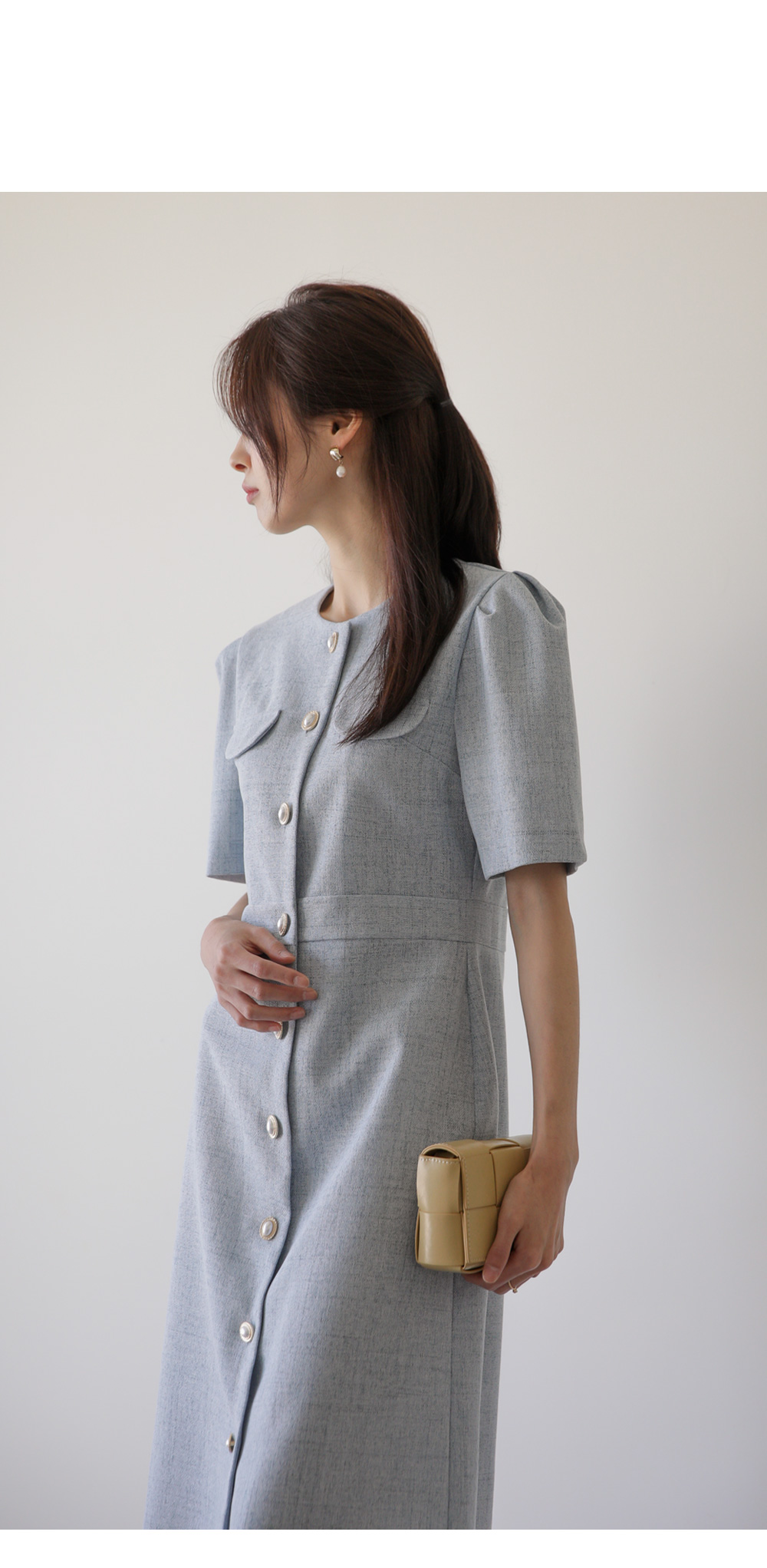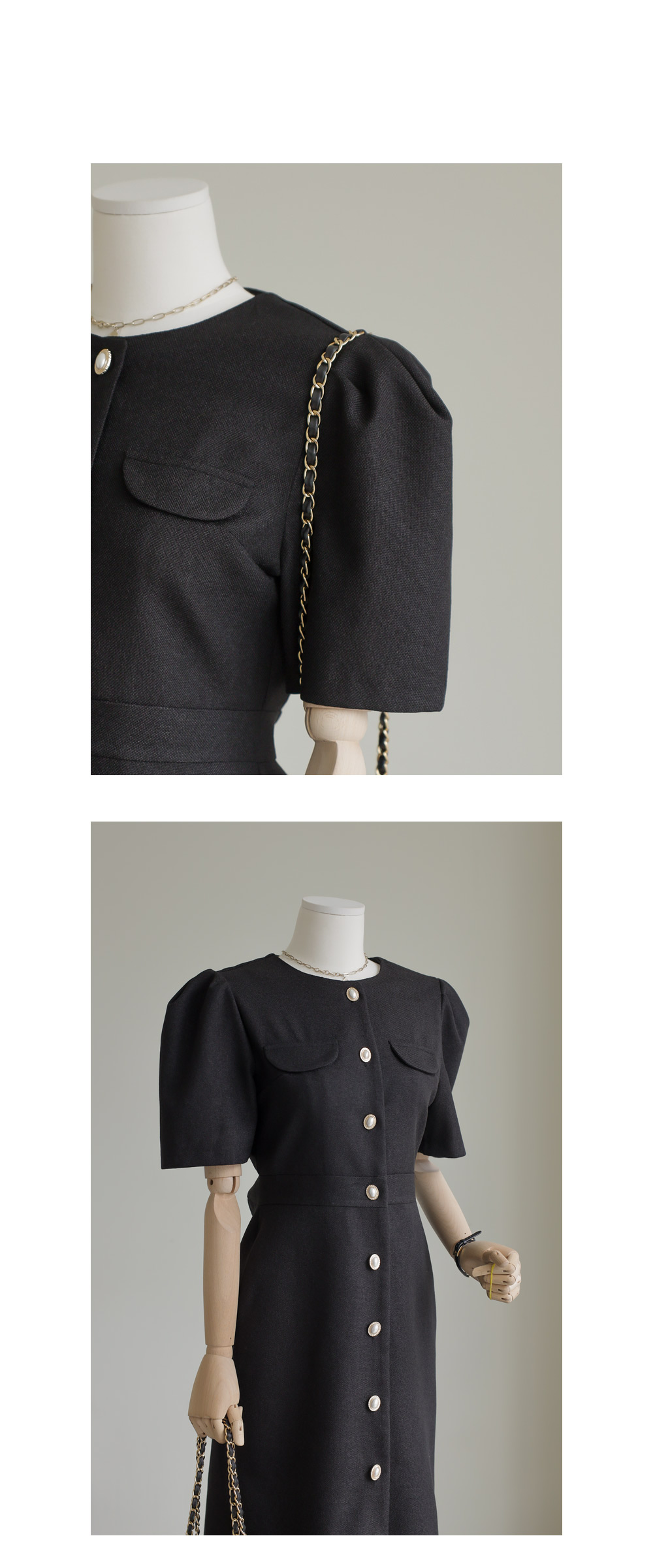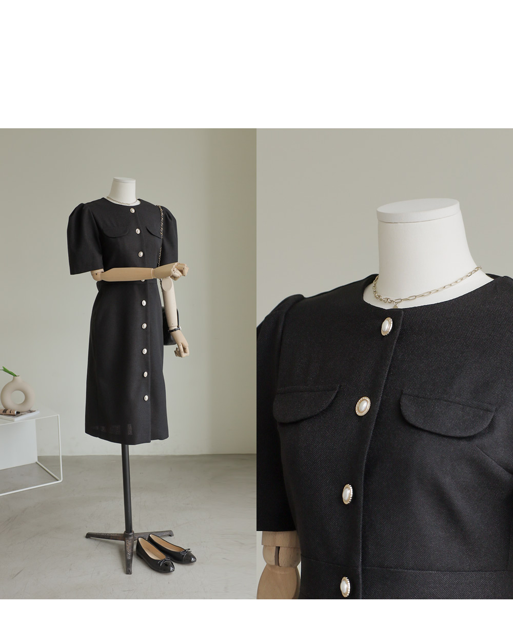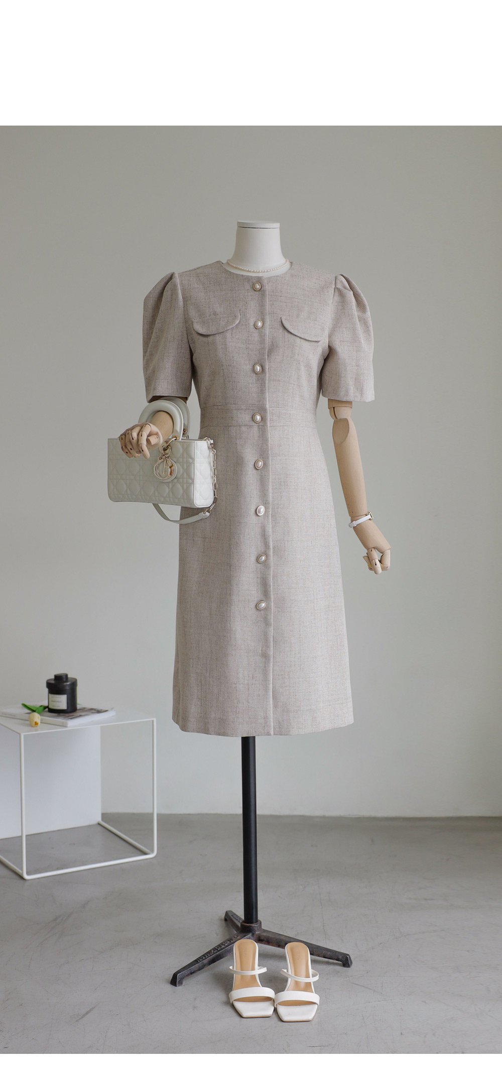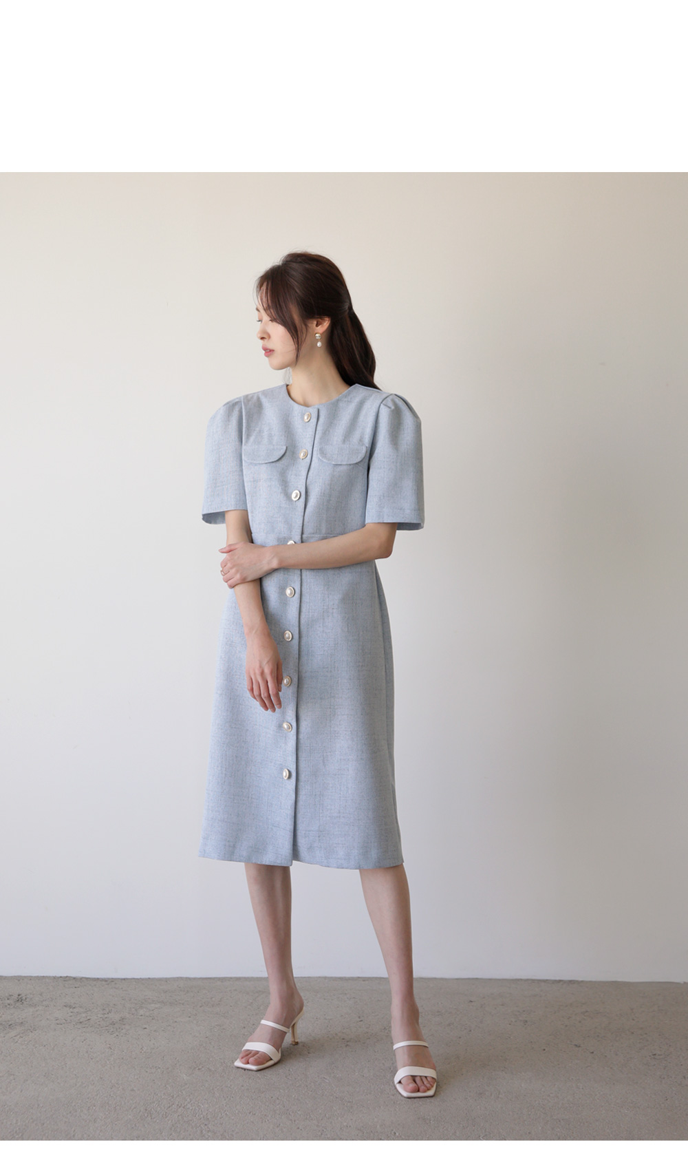 리타인 반팔 원피스 고급스러운 무드의 원피스를 소개할게요내추럴한 컬러감의 실이 여러겹으로 짜여 산뜻하고 경쾌한 무드를 선사해드리구요 단단하게 직조 편직된 소재감에 슬림한 핏감으로 실루엣을 정돈해 세련된 아웃핏을 연출해주었어요 숄더 라인의 핀턱 디테일로 소매를 풍성하게 연출해 팔뚝 군살을 효과적으로 커버해주었구요 뒷면의 히든 지퍼로 간편한 탈,착의가 가능하답니다 허리의 단작 디테일로 고급스럽고 깔끔하게 마무리되며 슬림해보이고 여성스러운 실루엣을 연출하구요 살짝 위로 디자인되어 다리가 길어보이는 효과까지 더했답니다 바스트의 페이크 포켓으로 미니멀한 포인트를 더하고 골드가 더해진 진주 버튼으로 엔틱하고 고급스러운 무드를 연출해주었어요 감각적이고 세련된 디테일이 가득한 아이템으로 하나만으로도 멋스러운 스타일링을 완성할 수 있구요 하객룩, 오피스룩 등 격식있는 자리에서 즐기시길 추천드려요 정 사이즈로 제작되었습니다