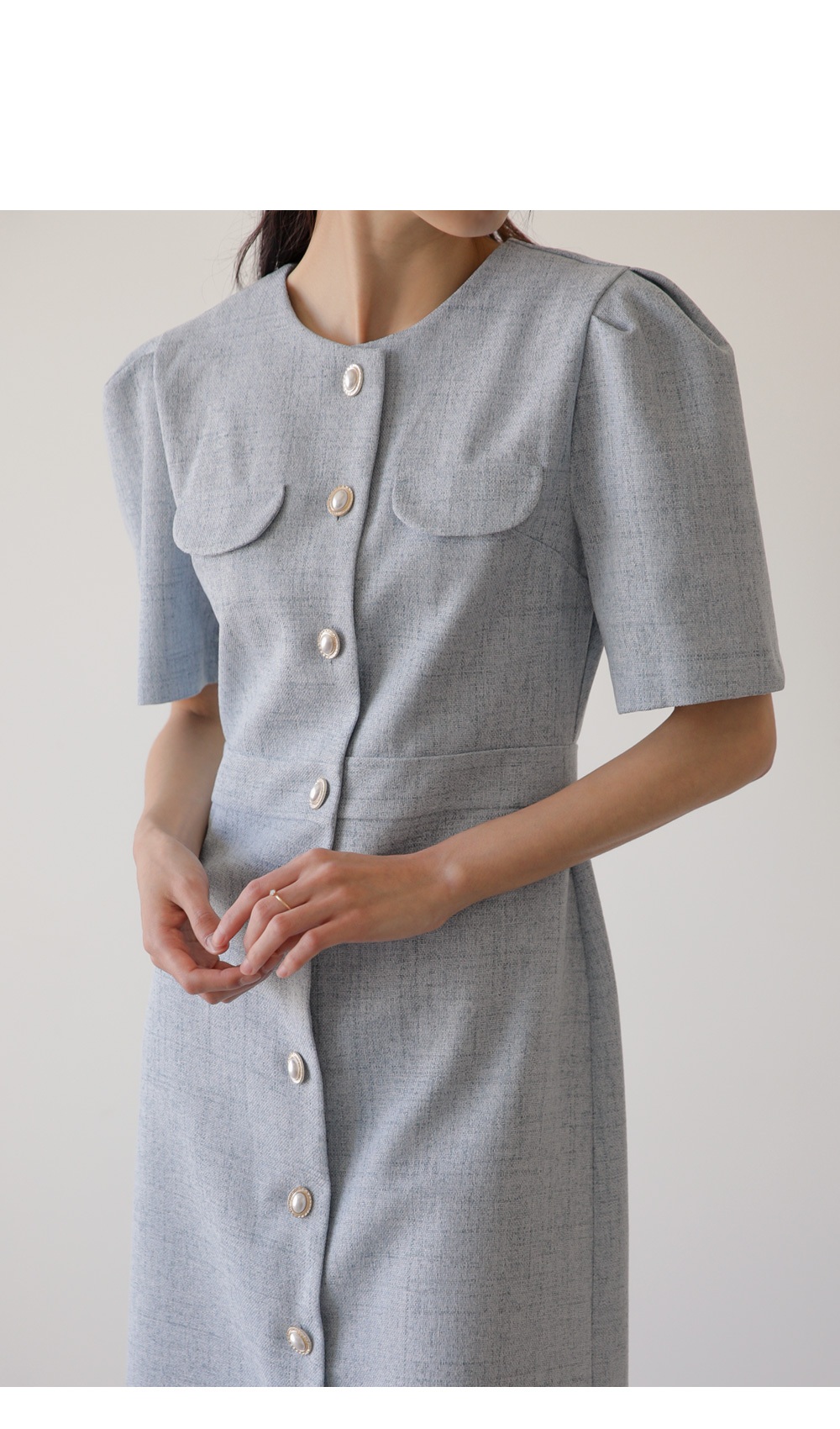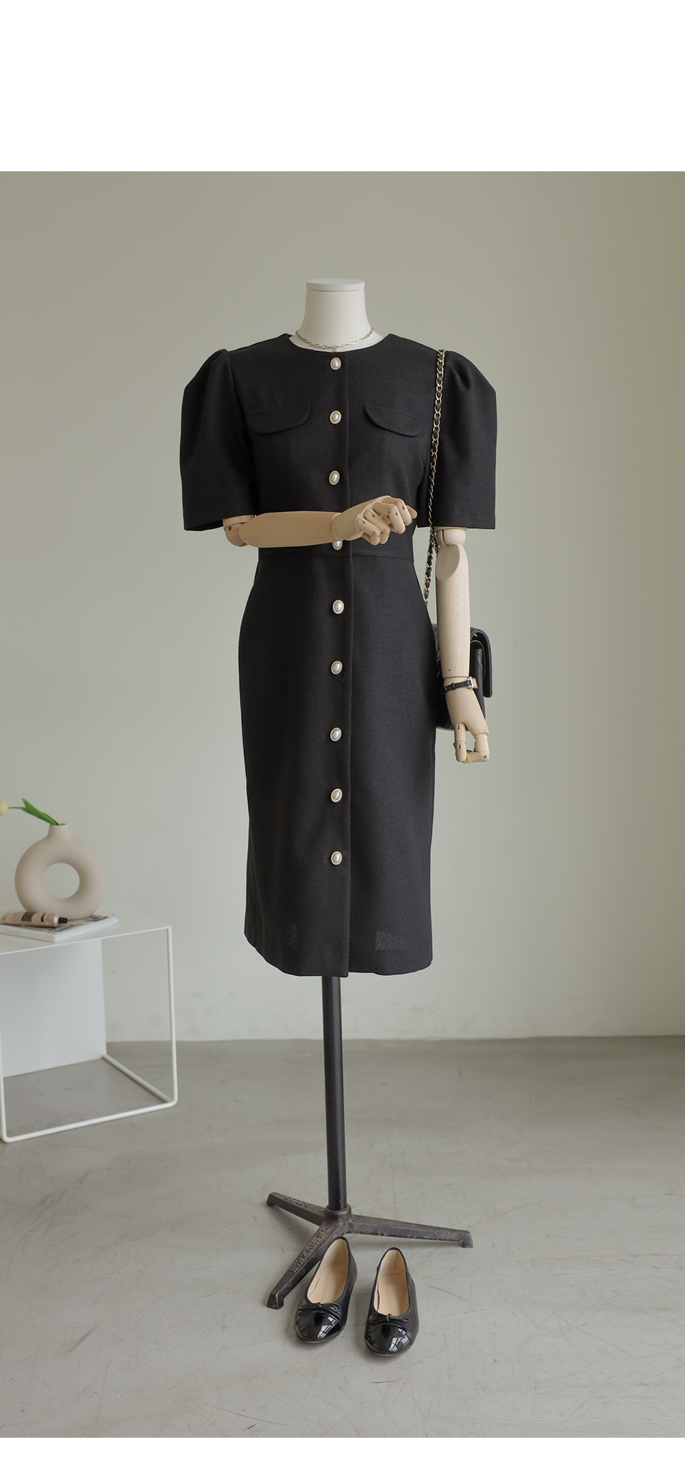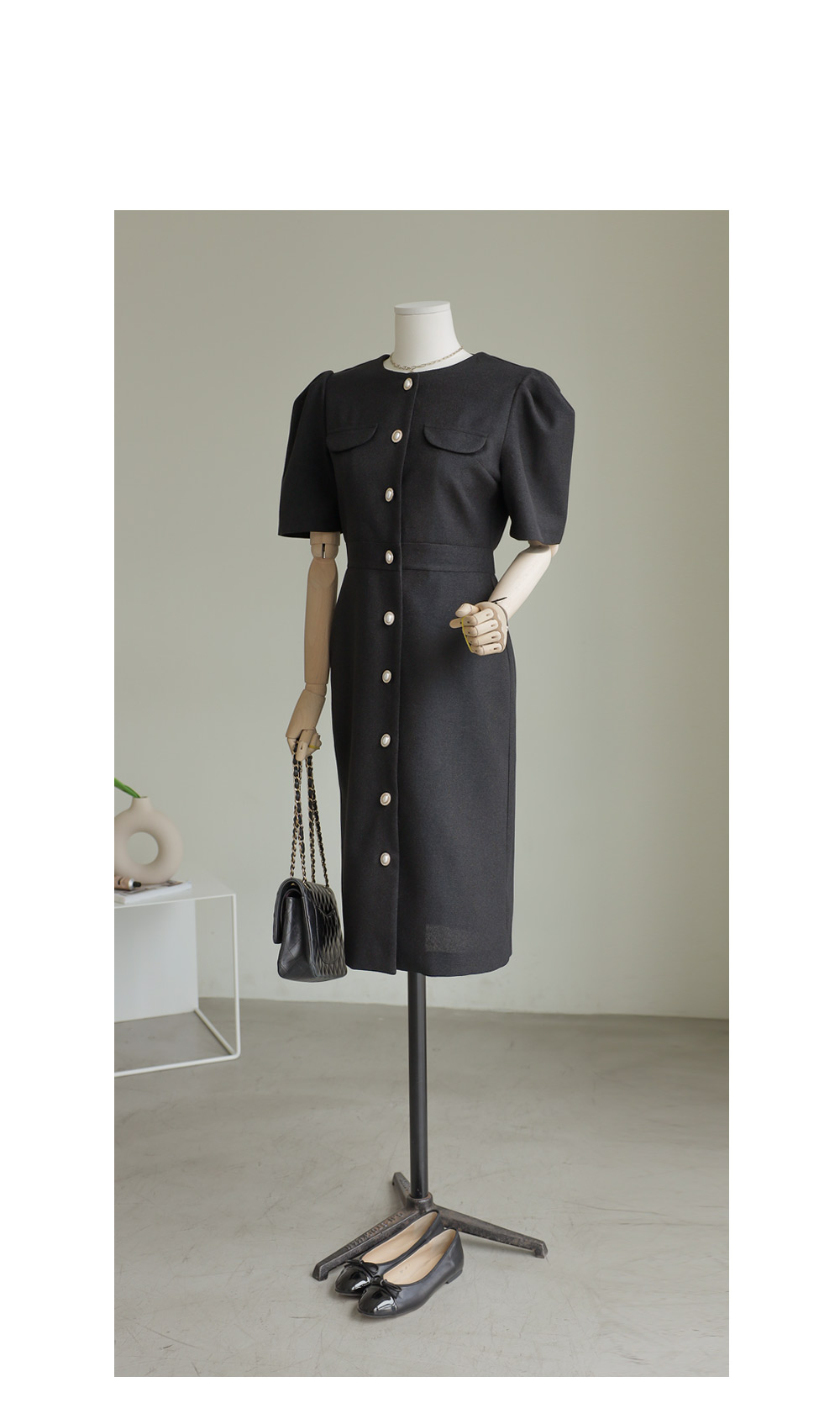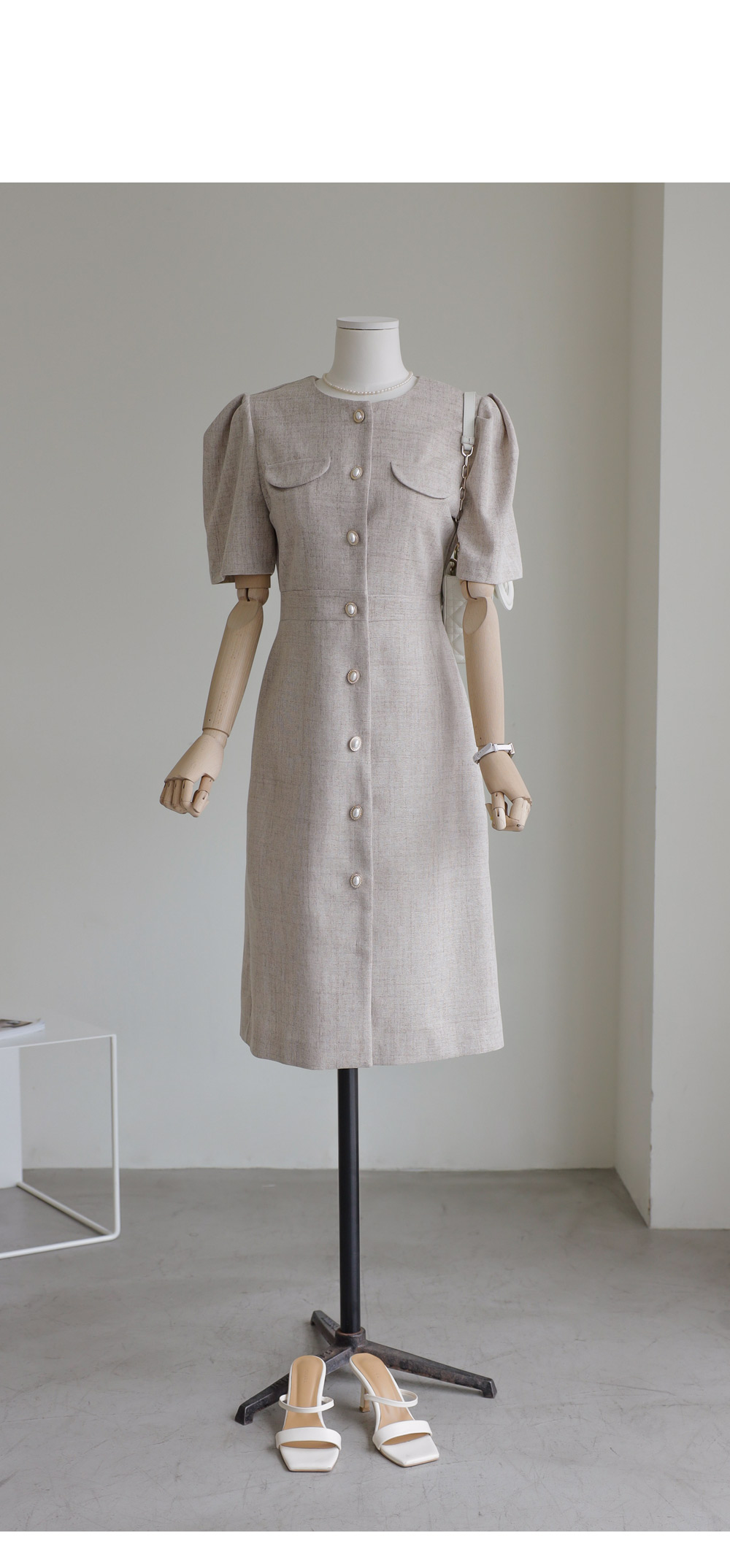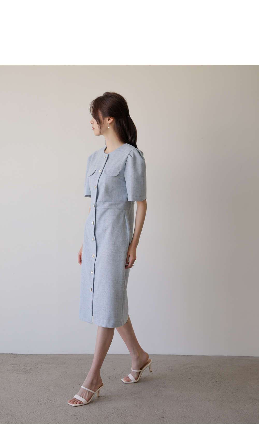 리타인 반팔 원피스 고급스러운 무드의 원피스를 소개할게요내추럴한 컬러감의 실이 여러겹으로 짜여 산뜻하고 경쾌한 무드를 선사해드리구요 단단하게 직조 편직된 소재감에 슬림한 핏감으로 실루엣을 정돈해 세련된 아웃핏을 연출해주었어요 숄더 라인의 핀턱 디테일로 소매를 풍성하게 연출해 팔뚝 군살을 효과적으로 커버해주었구요 뒷면의 히든 지퍼로 간편한 탈,착의가 가능하답니다 허리의 단작 디테일로 고급스럽고 깔끔하게 마무리되며 슬림해보이고 여성스러운 실루엣을 연출하구요 살짝 위로 디자인되어 다리가 길어보이는 효과까지 더했답니다 바스트의 페이크 포켓으로 미니멀한 포인트를 더하고 골드가 더해진 진주 버튼으로 엔틱하고 고급스러운 무드를 연출해주었어요 감각적이고 세련된 디테일이 가득한 아이템으로 하나만으로도 멋스러운 스타일링을 완성할 수 있구요 하객룩, 오피스룩 등 격식있는 자리에서 즐기시길 추천드려요 정 사이즈로 제작되었습니다