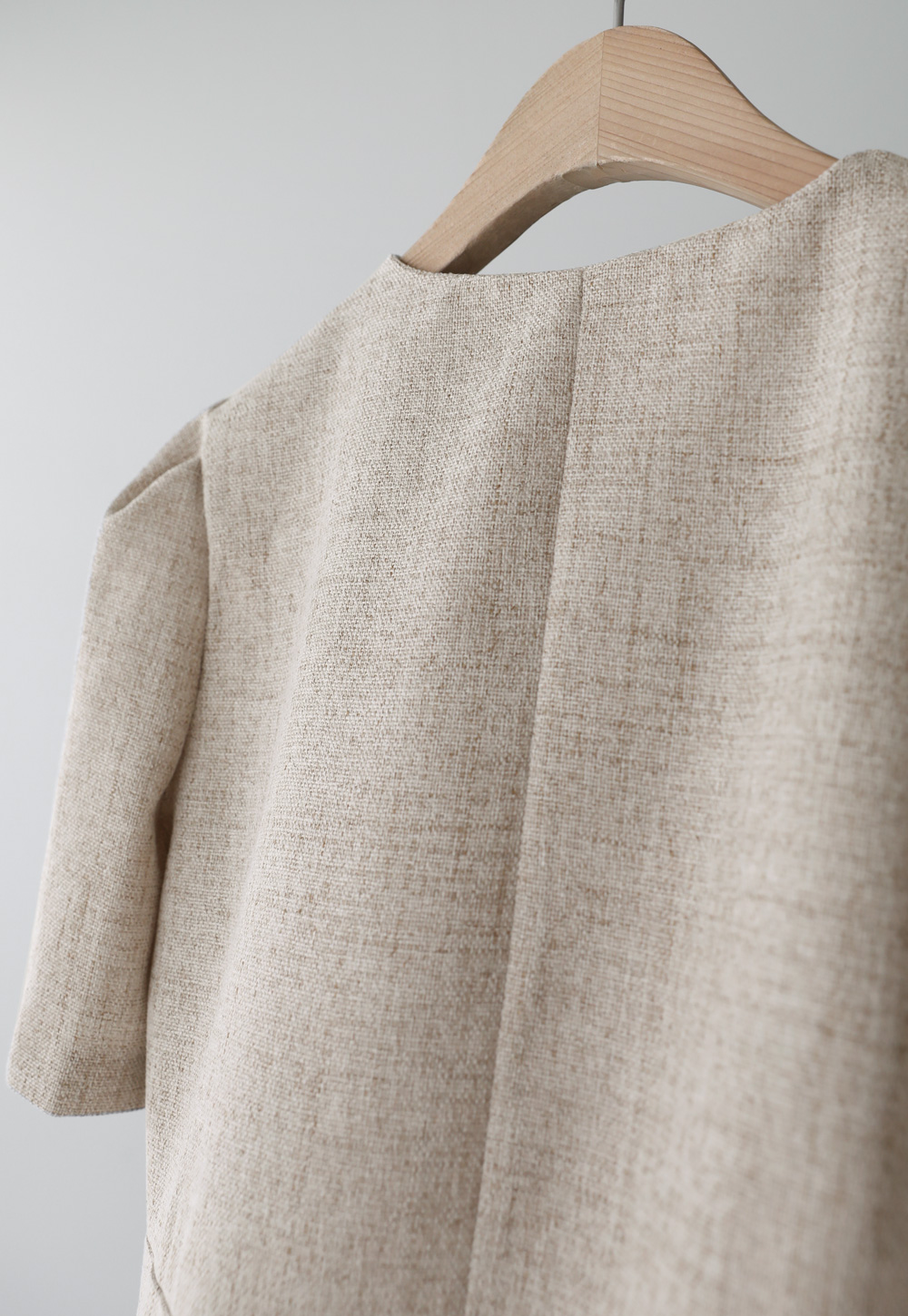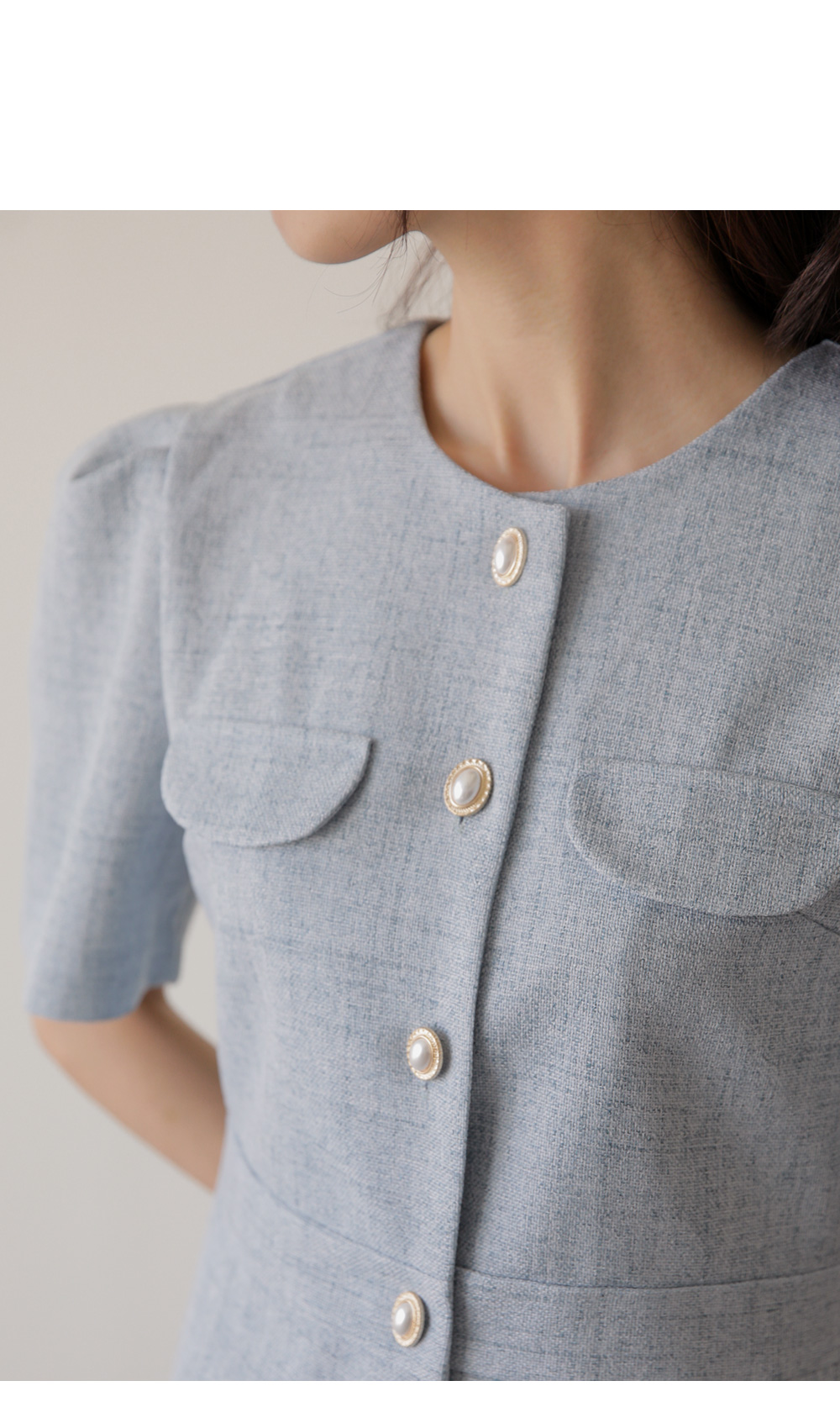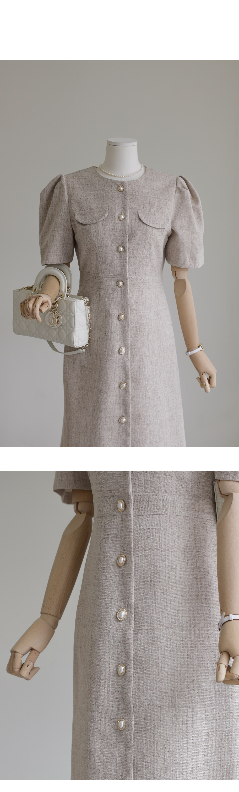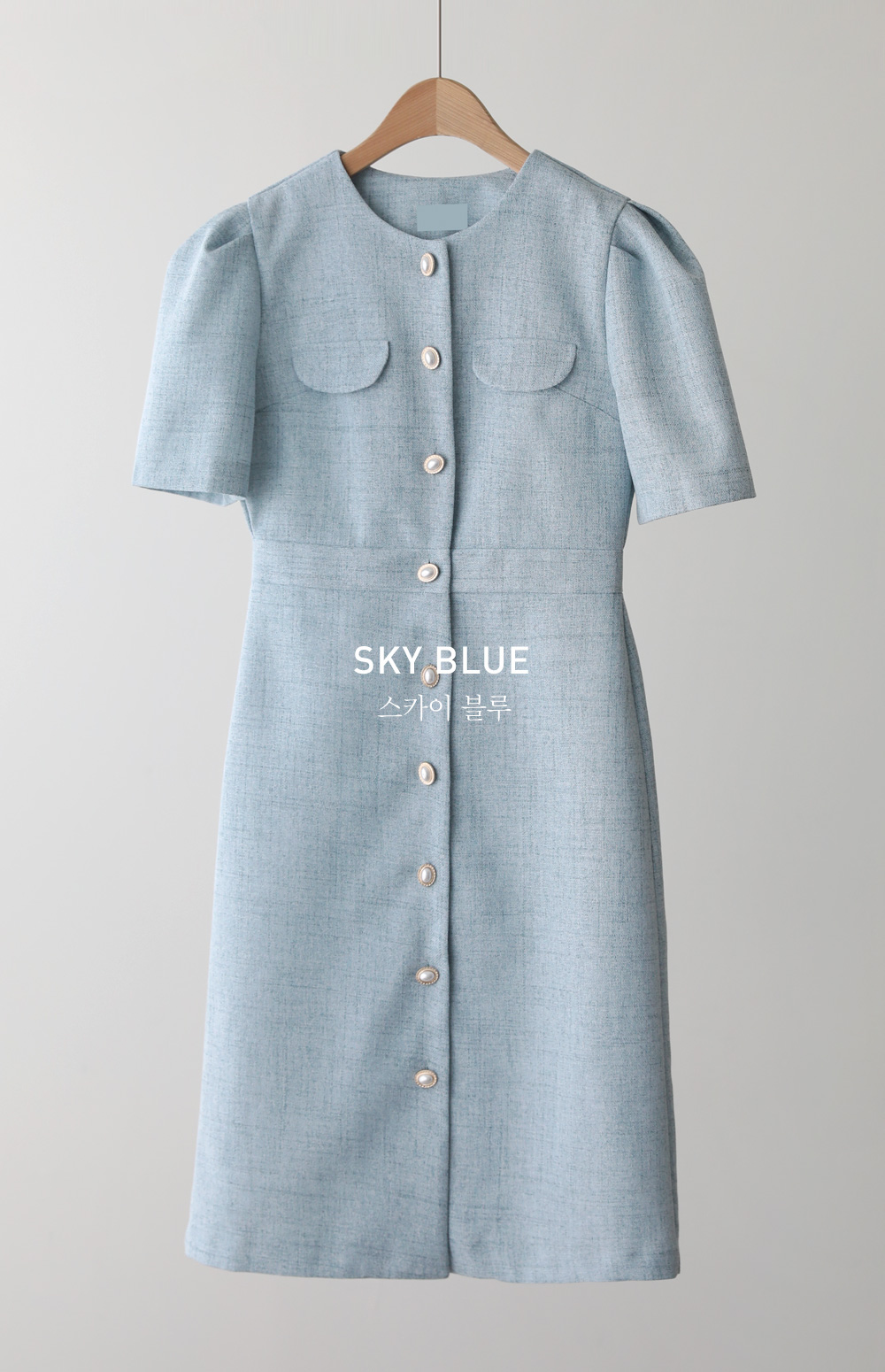 리타인 반팔 원피스 고급스러운 무드의 원피스를 소개할게요내추럴한 컬러감의 실이 여러겹으로 짜여 산뜻하고 경쾌한 무드를 선사해드리구요 단단하게 직조 편직된 소재감에 슬림한 핏감으로 실루엣을 정돈해 세련된 아웃핏을 연출해주었어요 숄더 라인의 핀턱 디테일로 소매를 풍성하게 연출해 팔뚝 군살을 효과적으로 커버해주었구요 뒷면의 히든 지퍼로 간편한 탈,착의가 가능하답니다 허리의 단작 디테일로 고급스럽고 깔끔하게 마무리되며 슬림해보이고 여성스러운 실루엣을 연출하구요 살짝 위로 디자인되어 다리가 길어보이는 효과까지 더했답니다 바스트의 페이크 포켓으로 미니멀한 포인트를 더하고 골드가 더해진 진주 버튼으로 엔틱하고 고급스러운 무드를 연출해주었어요 감각적이고 세련된 디테일이 가득한 아이템으로 하나만으로도 멋스러운 스타일링을 완성할 수 있구요 하객룩, 오피스룩 등 격식있는 자리에서 즐기시길 추천드려요 정 사이즈로 제작되었습니다