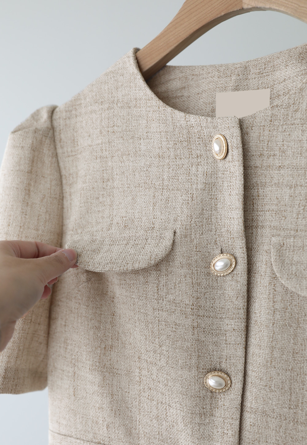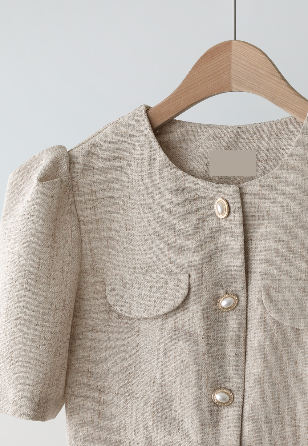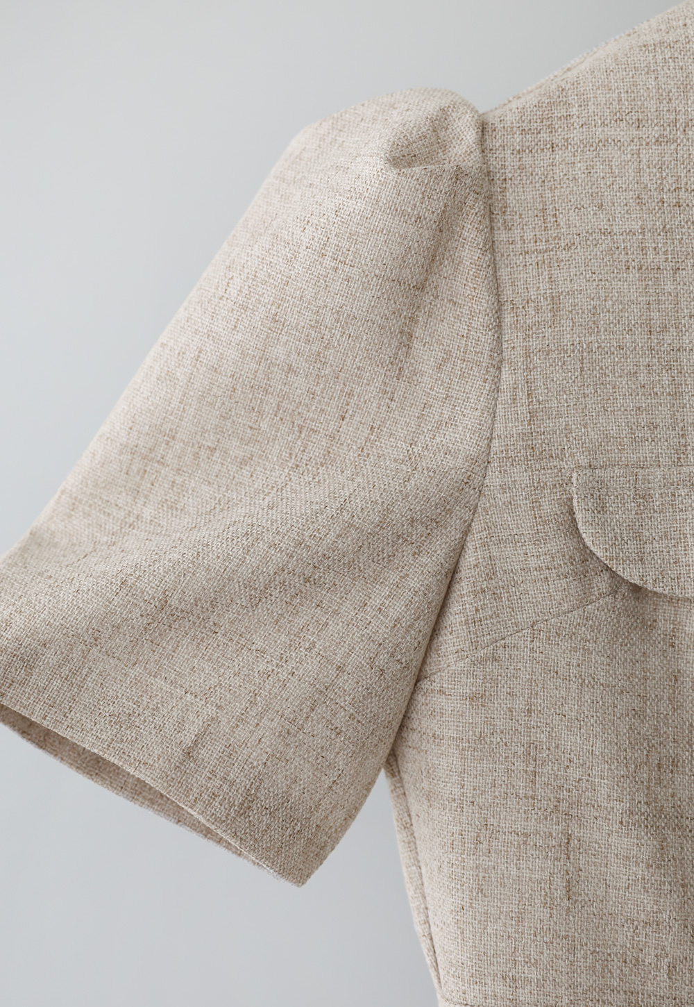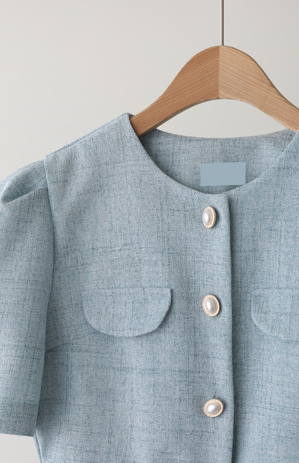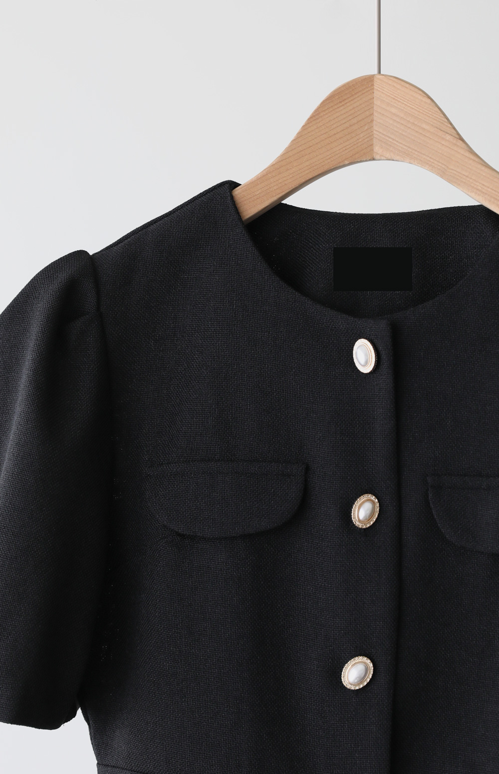 리타인 반팔 원피스 고급스러운 무드의 원피스를 소개할게요내추럴한 컬러감의 실이 여러겹으로 짜여 산뜻하고 경쾌한 무드를 선사해드리구요 단단하게 직조 편직된 소재감에 슬림한 핏감으로 실루엣을 정돈해 세련된 아웃핏을 연출해주었어요 숄더 라인의 핀턱 디테일로 소매를 풍성하게 연출해 팔뚝 군살을 효과적으로 커버해주었구요 뒷면의 히든 지퍼로 간편한 탈,착의가 가능하답니다 허리의 단작 디테일로 고급스럽고 깔끔하게 마무리되며 슬림해보이고 여성스러운 실루엣을 연출하구요 살짝 위로 디자인되어 다리가 길어보이는 효과까지 더했답니다 바스트의 페이크 포켓으로 미니멀한 포인트를 더하고 골드가 더해진 진주 버튼으로 엔틱하고 고급스러운 무드를 연출해주었어요 감각적이고 세련된 디테일이 가득한 아이템으로 하나만으로도 멋스러운 스타일링을 완성할 수 있구요 하객룩, 오피스룩 등 격식있는 자리에서 즐기시길 추천드려요 정 사이즈로 제작되었습니다