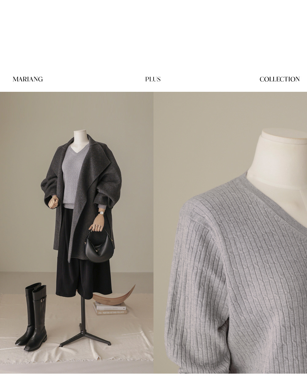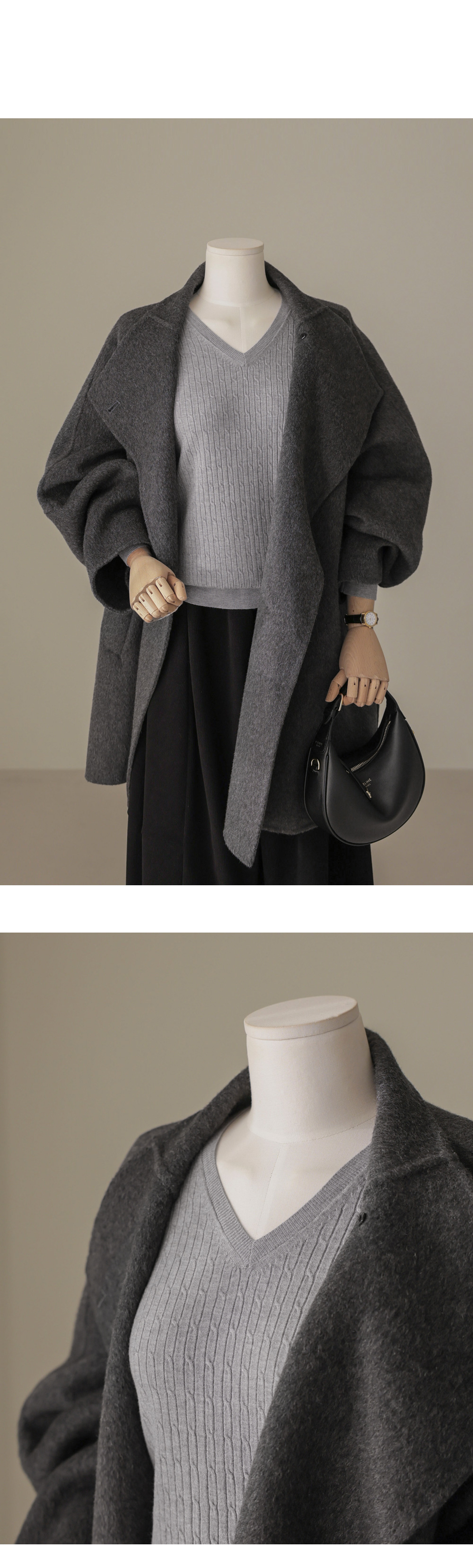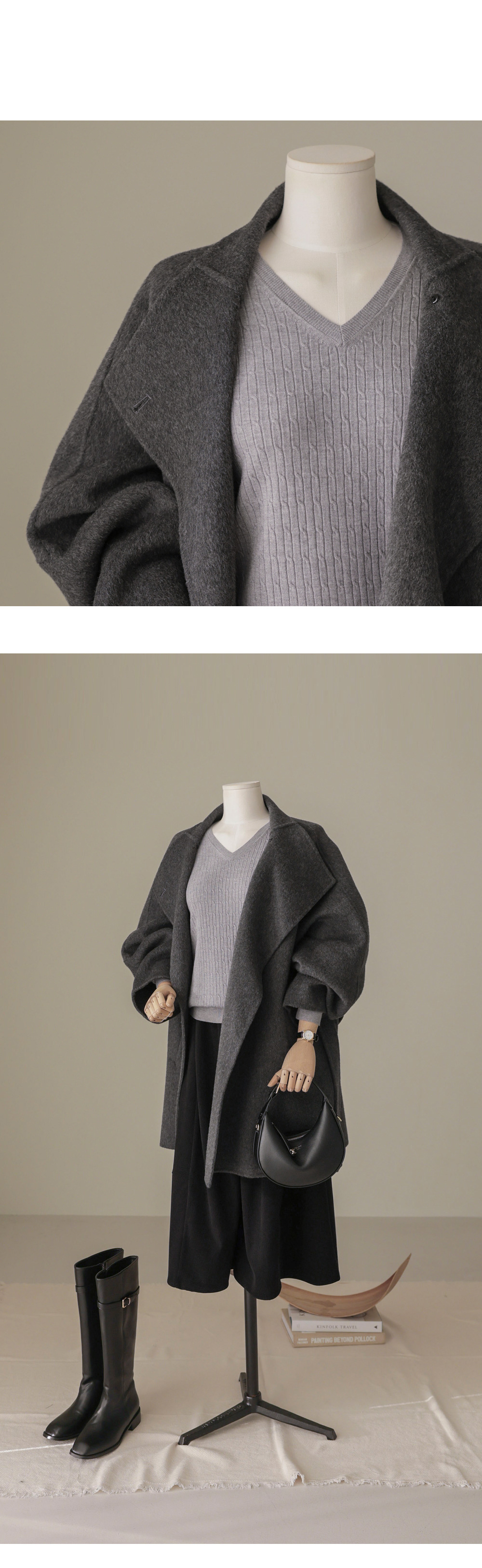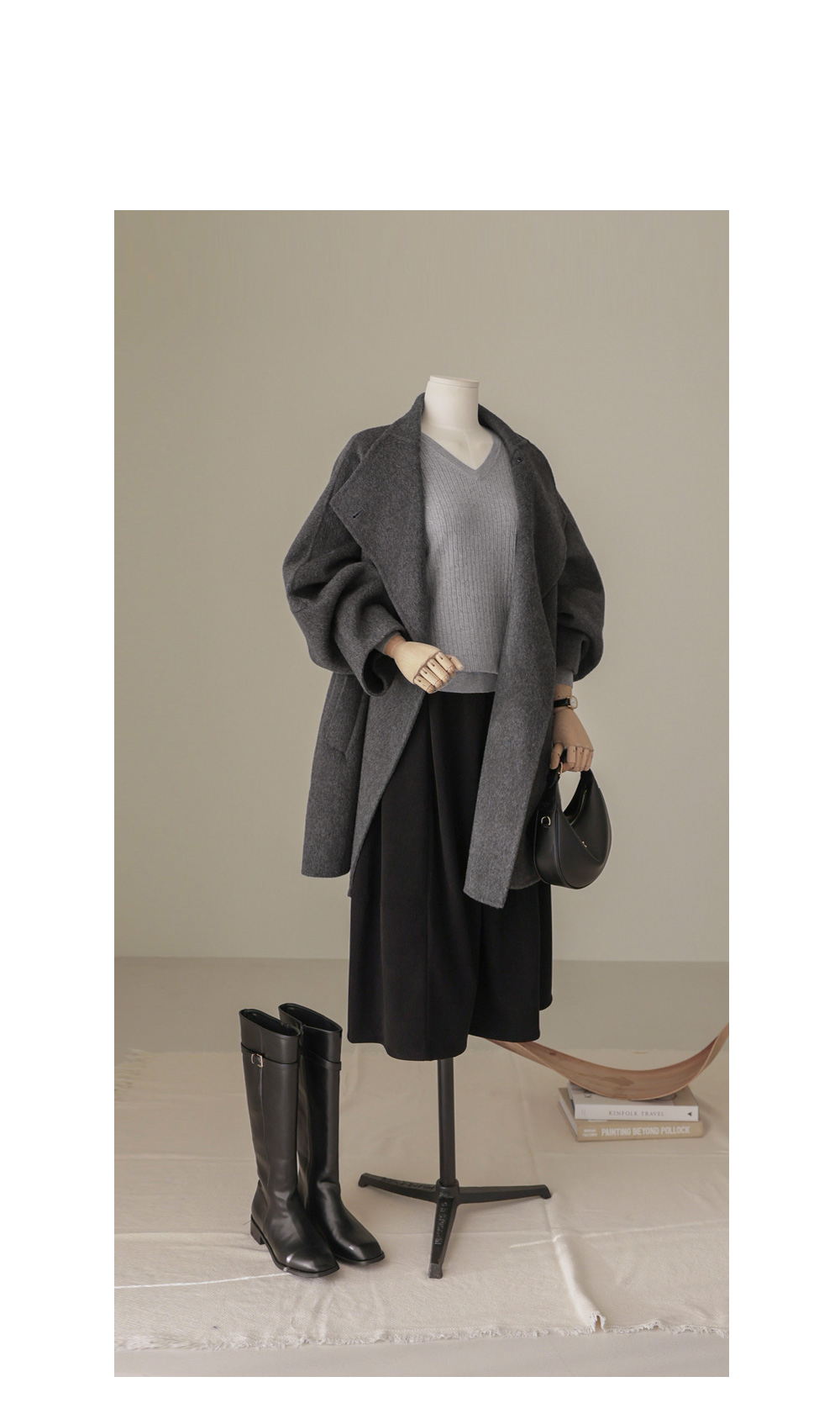 코디정보 몰리카 핸드메이드 울코트 _ 차콜느구퍼 캐시미어 니트 _ (브이넥)그레이 노베르 와이드 팬츠 _ 블랙